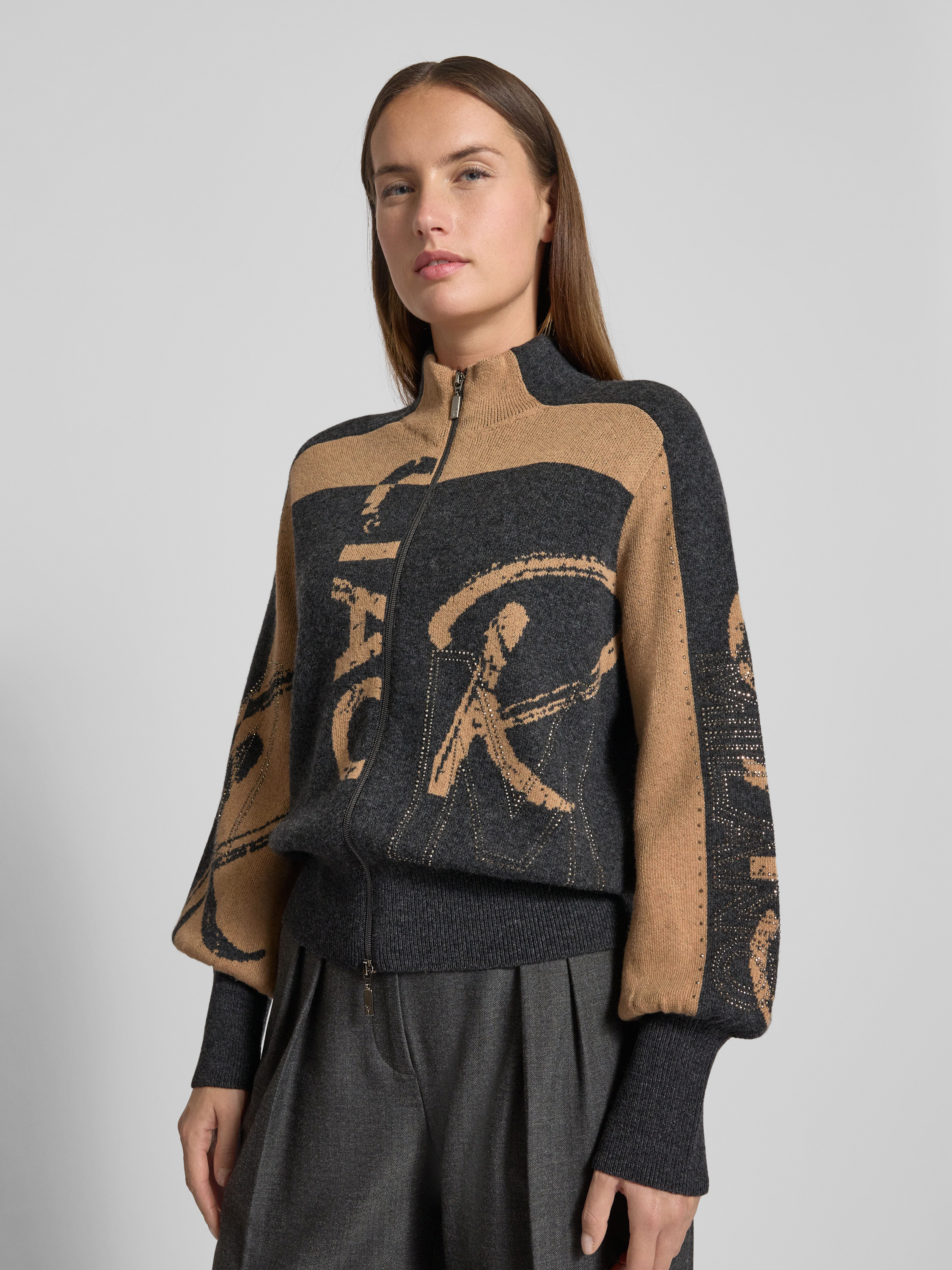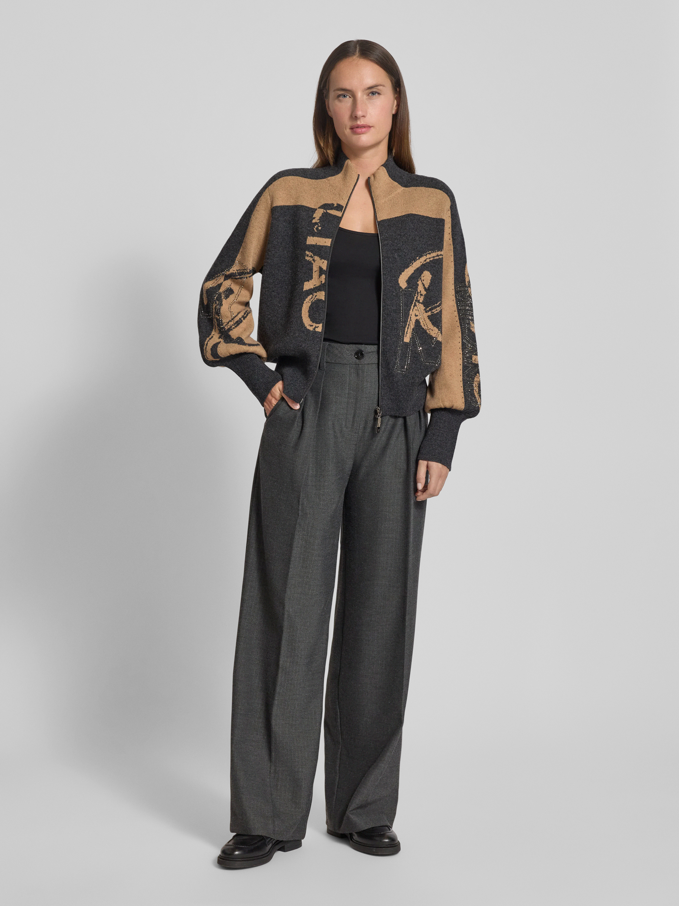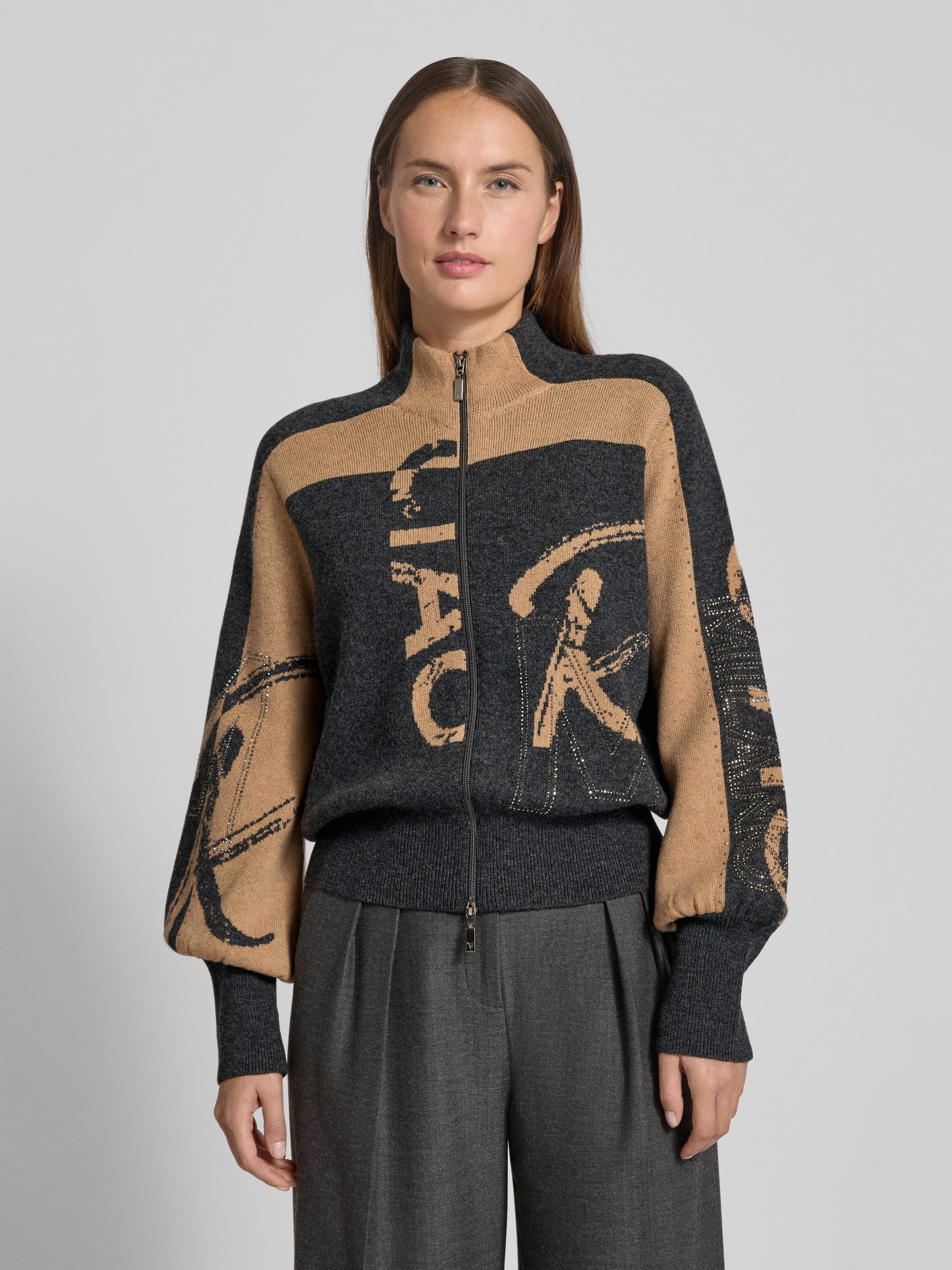 Gebreid jack met ritssluiting in antraciet