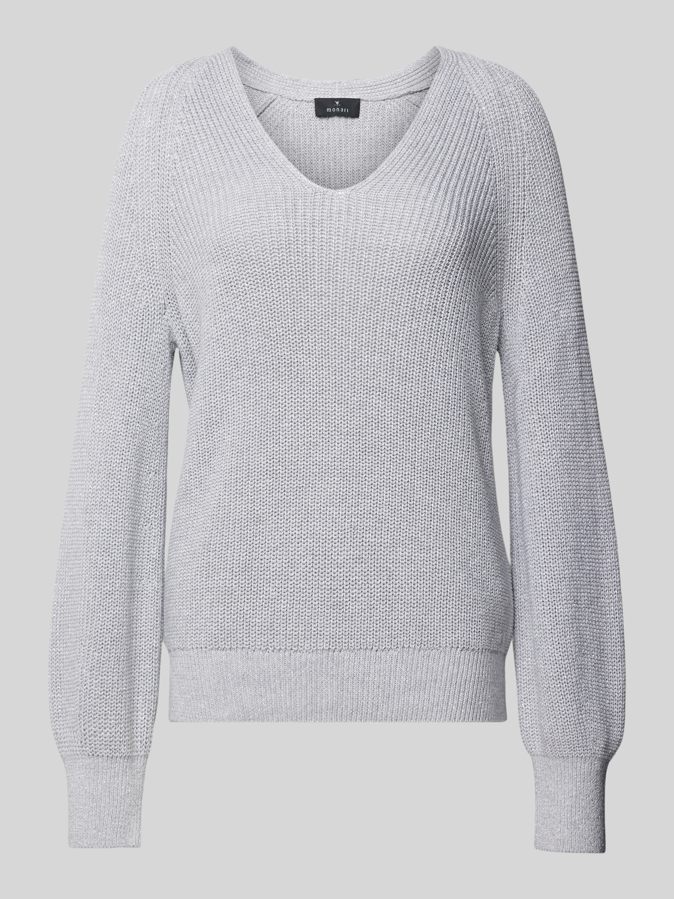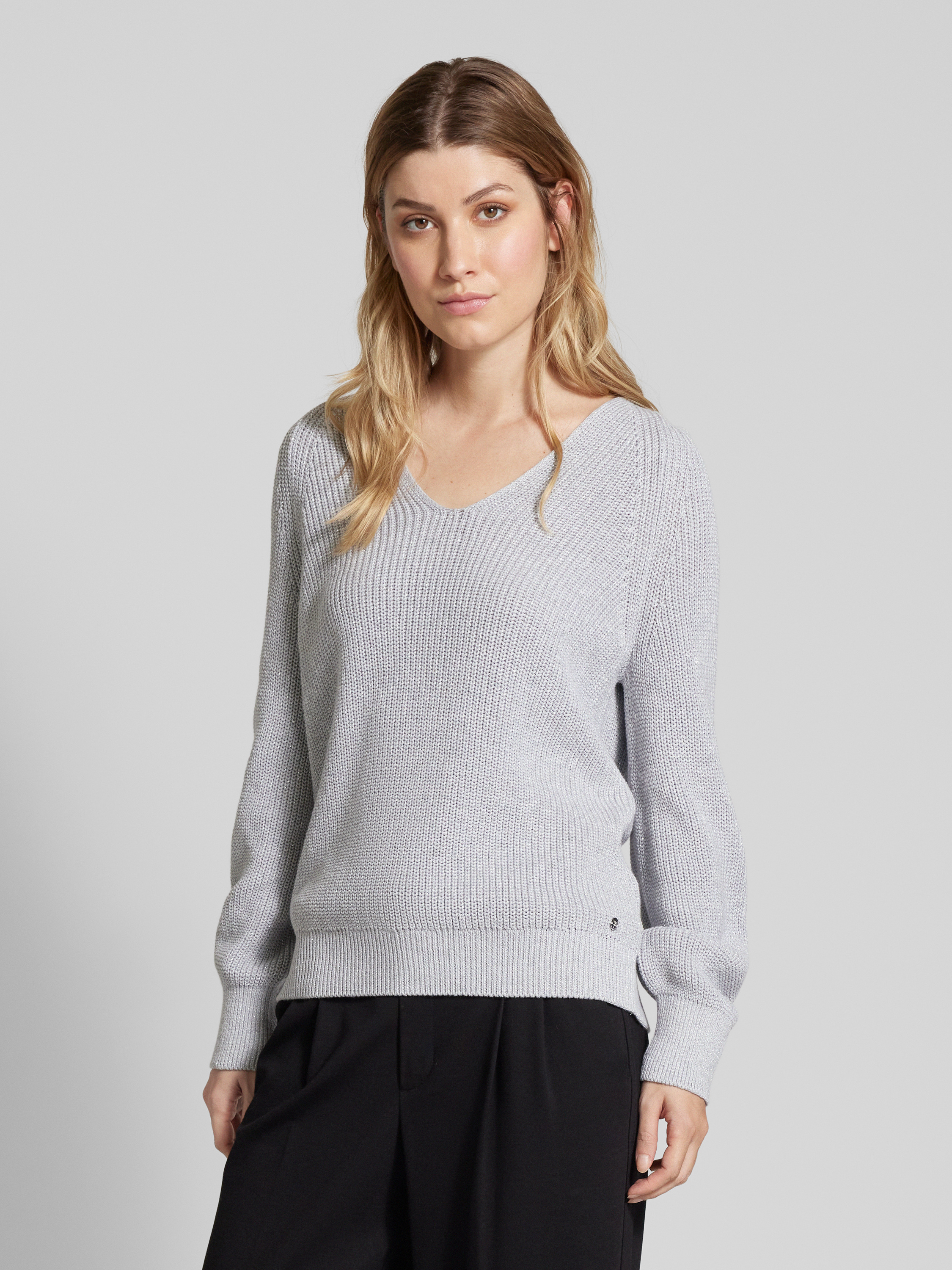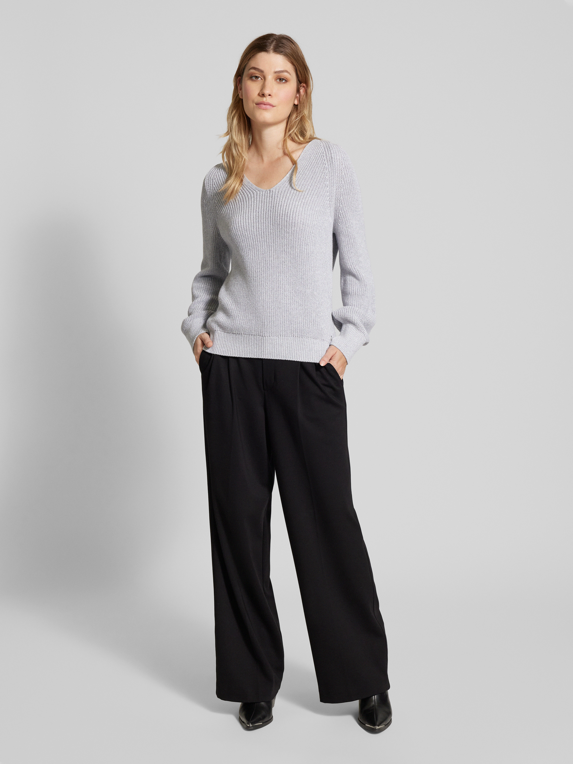 Gebreide pullover met V-hals in middengrijs gemêleerd