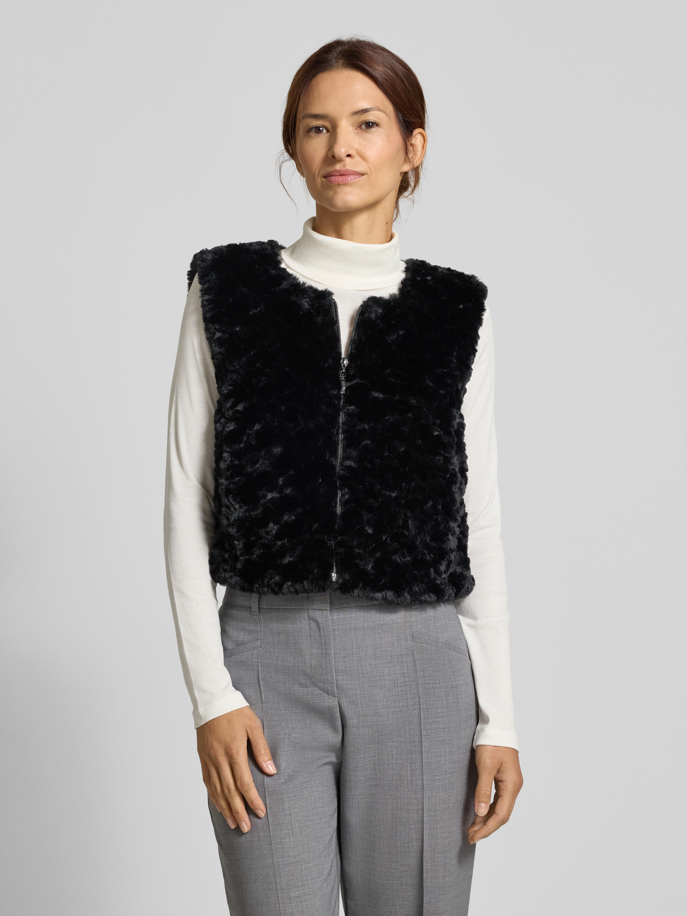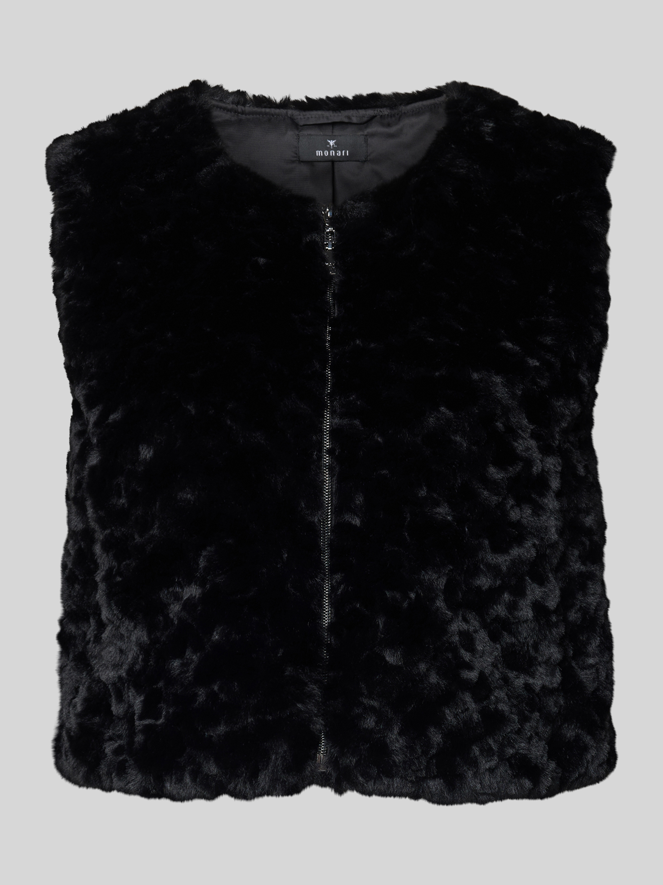 Gilet van teddybont met ritssluiting in zwart