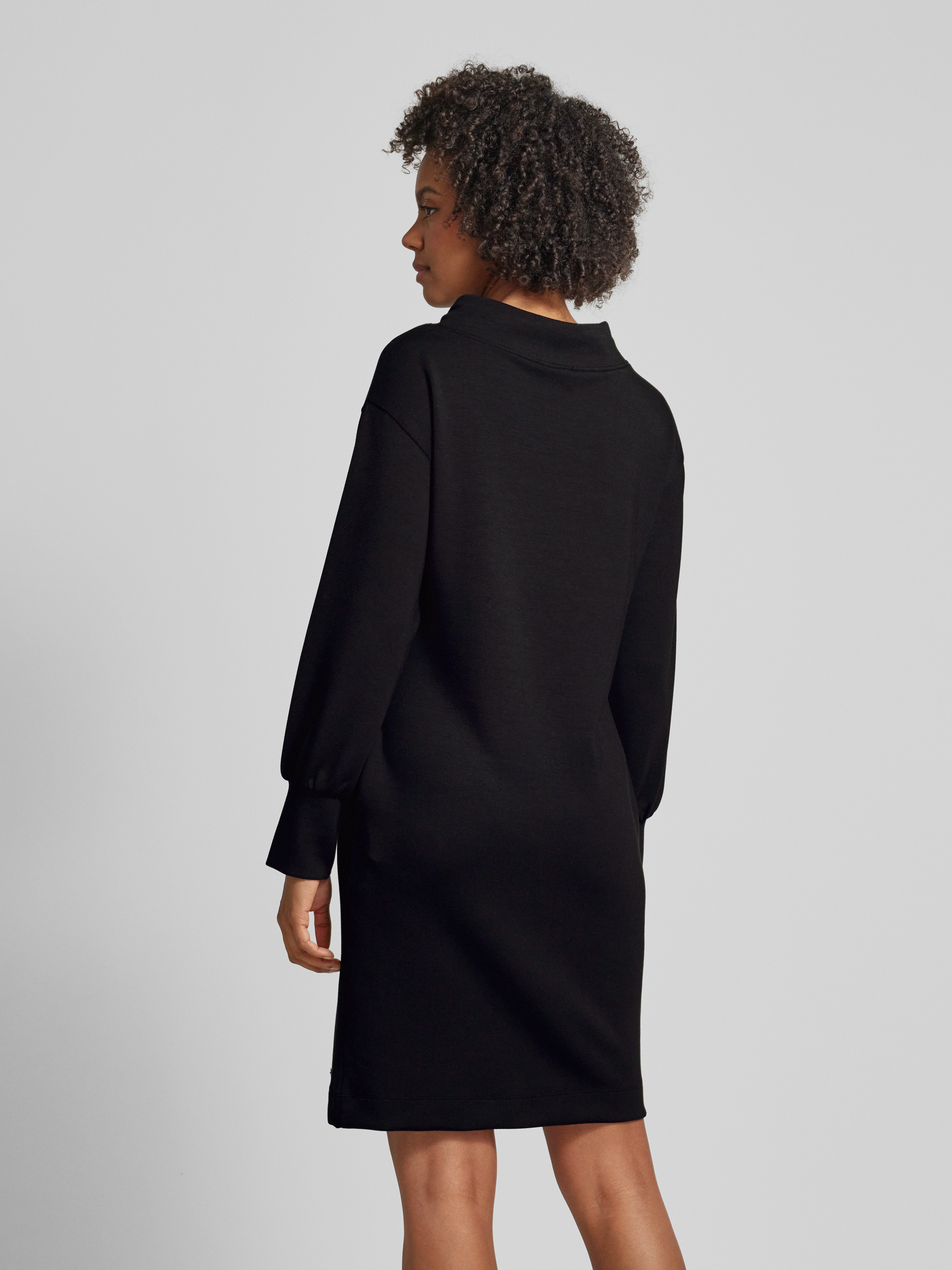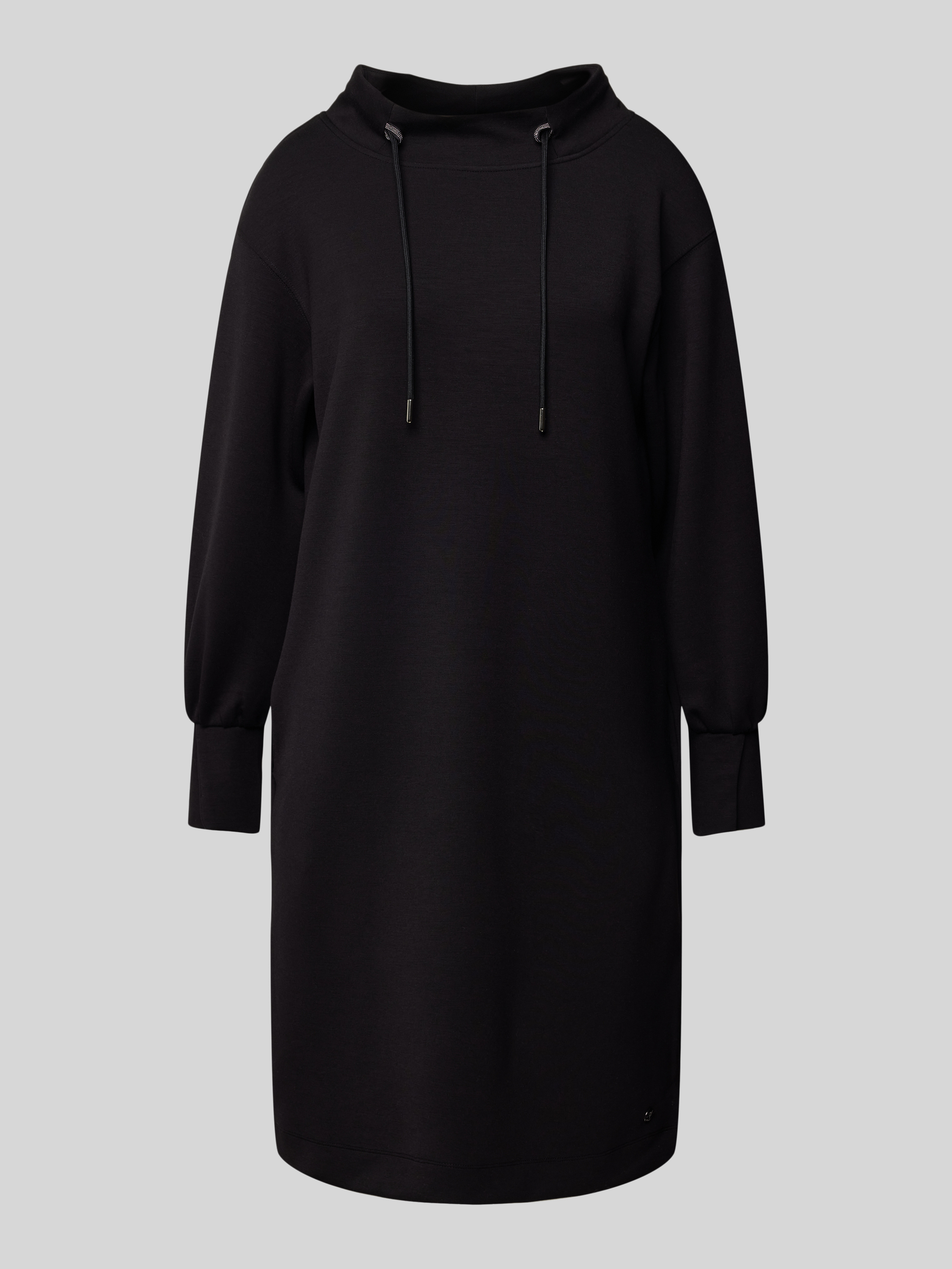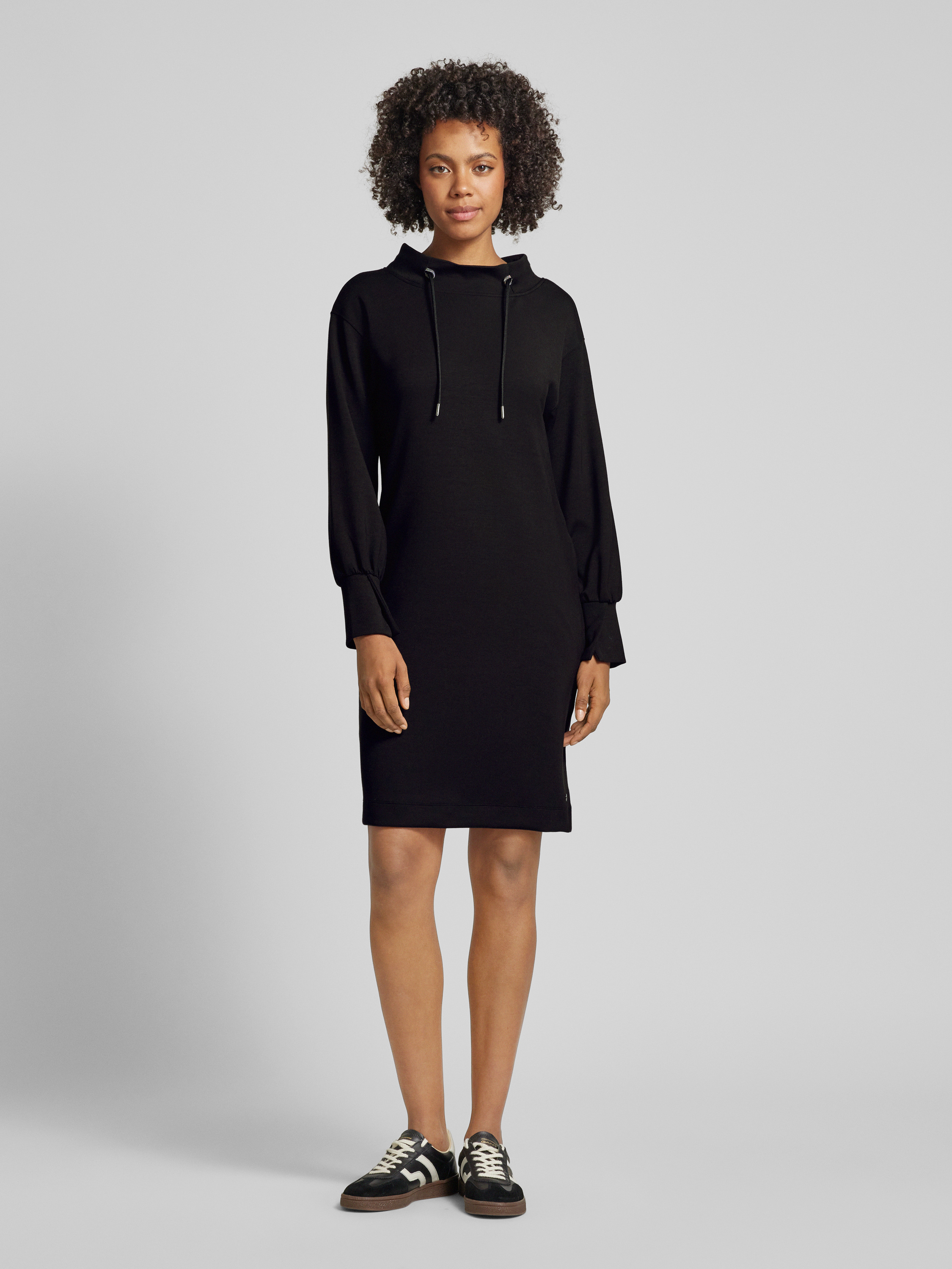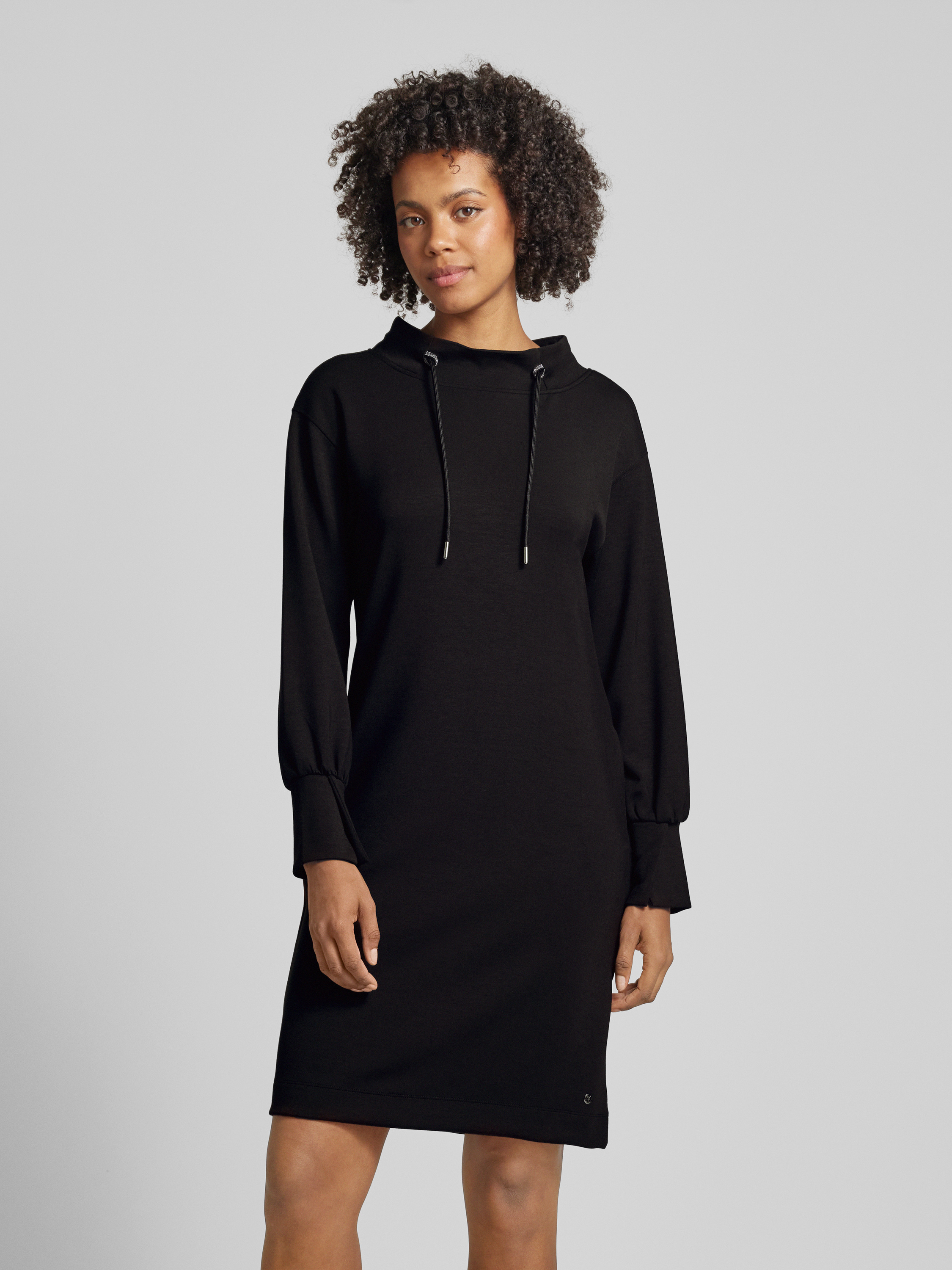 Knielange jurk met tunnelkoord in zwart
