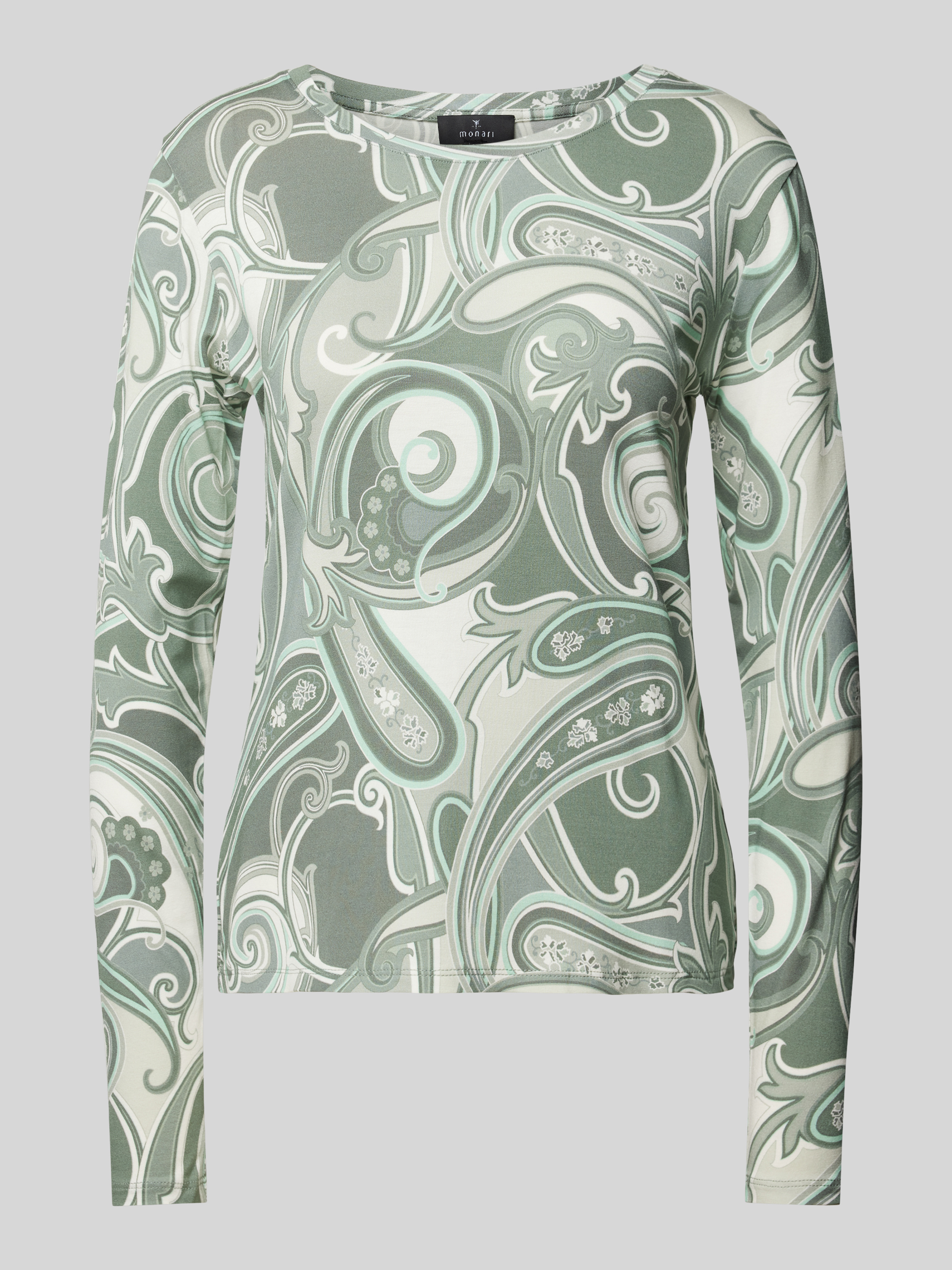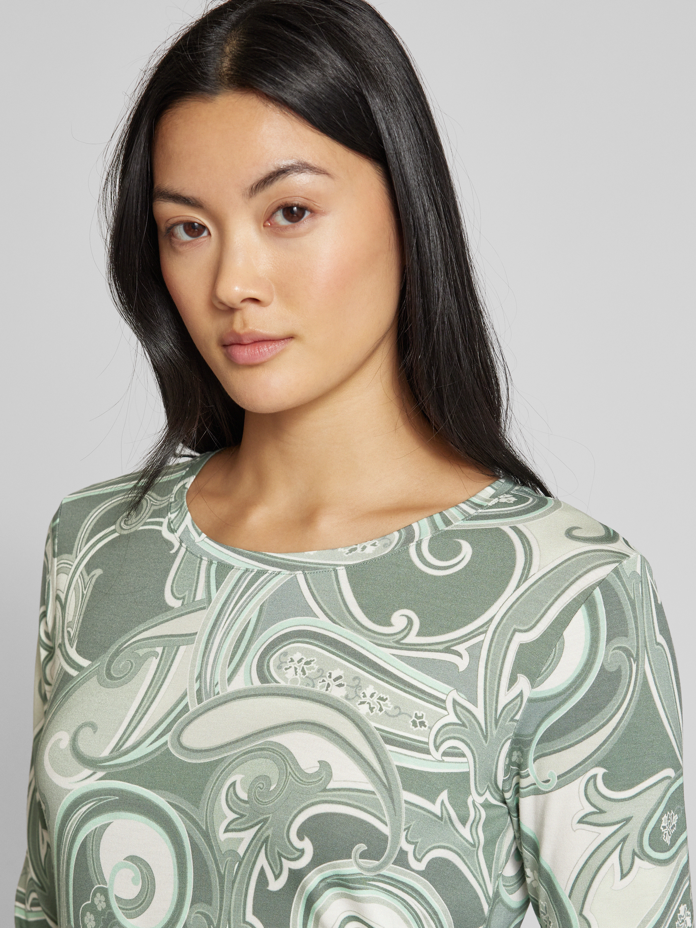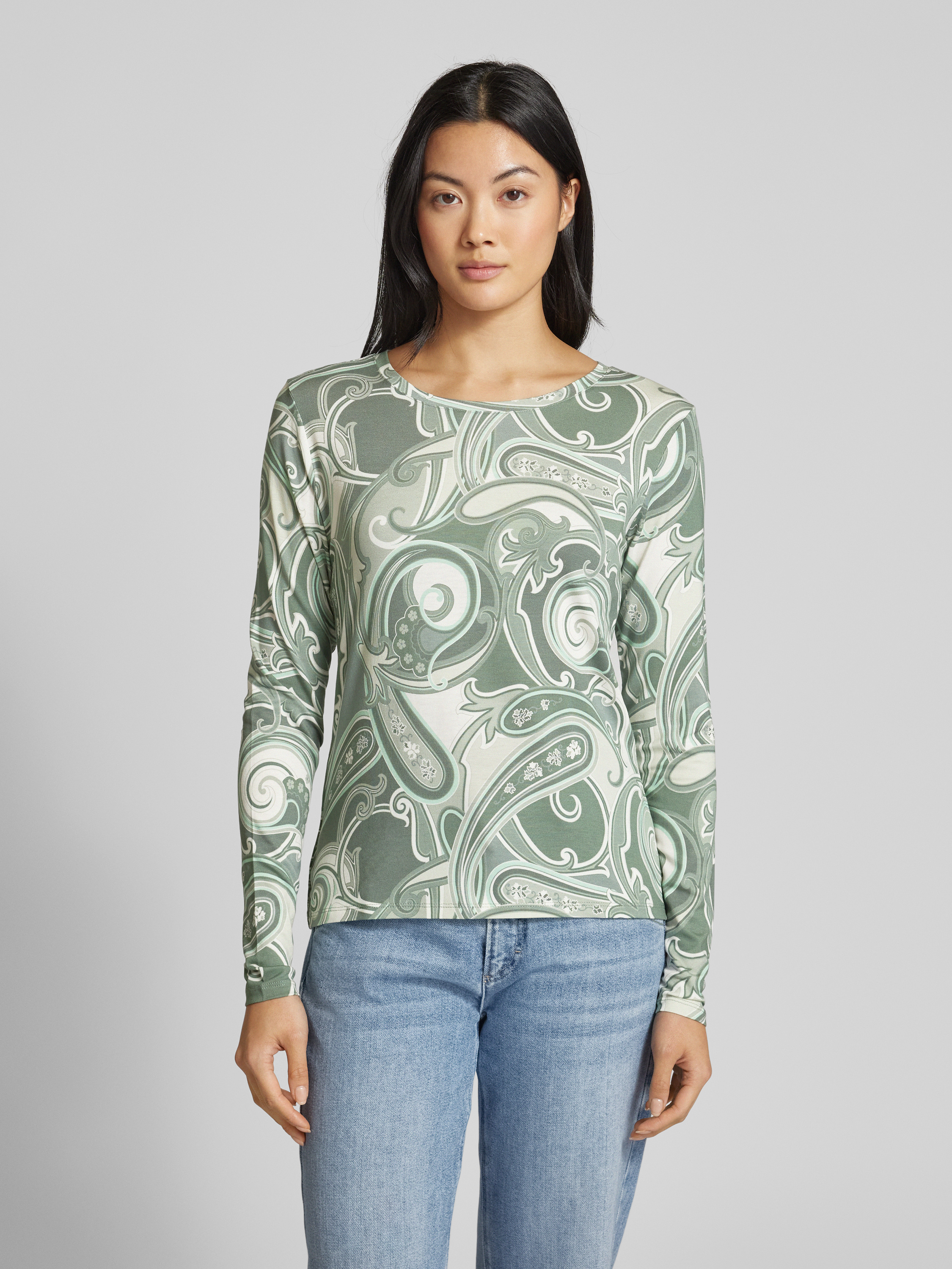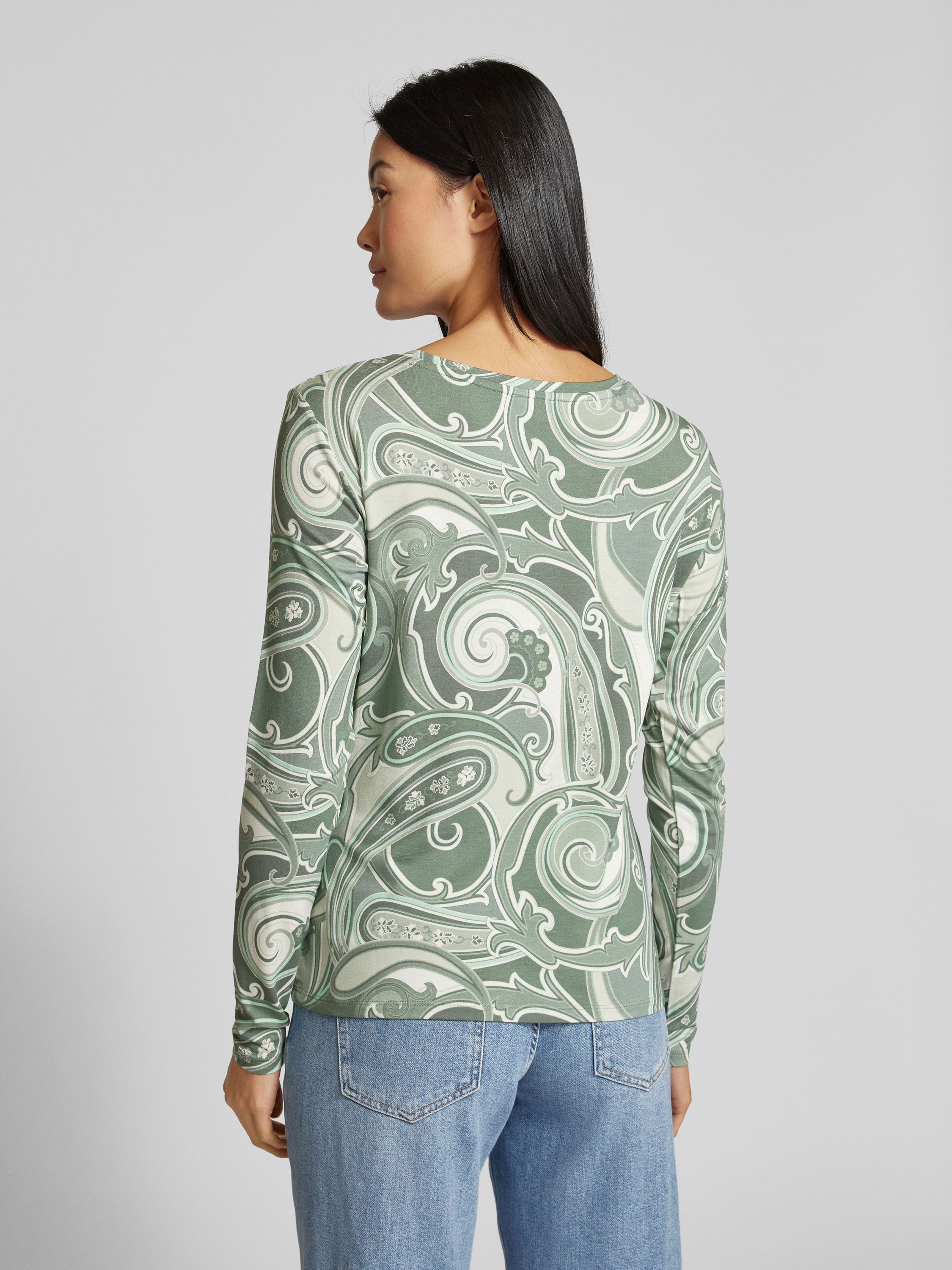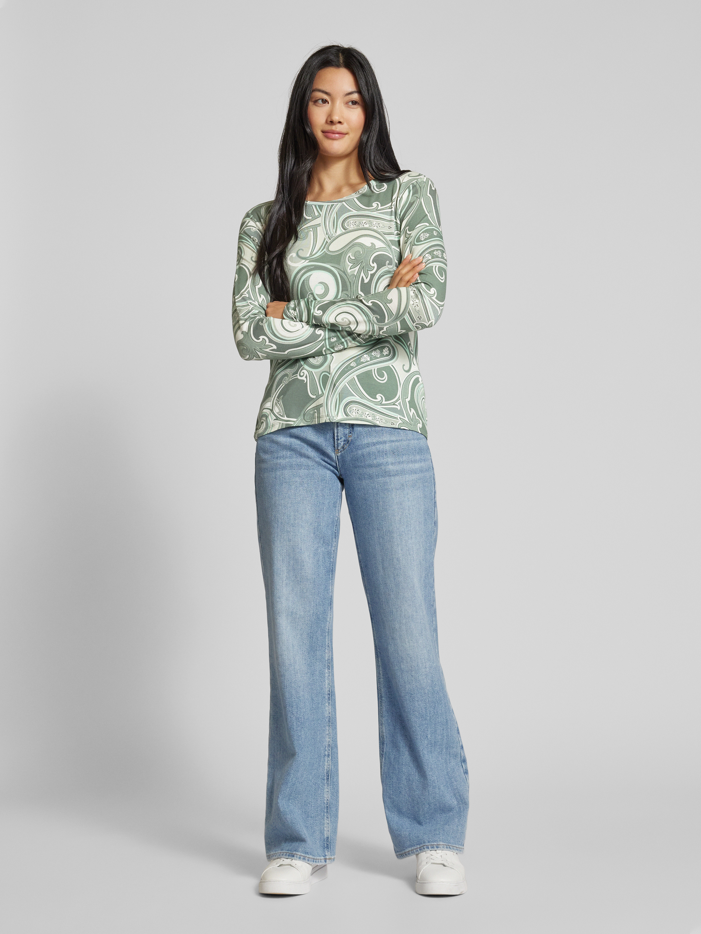 Shirt met lange mouwen en geribde ronde hals in olijfgroen
