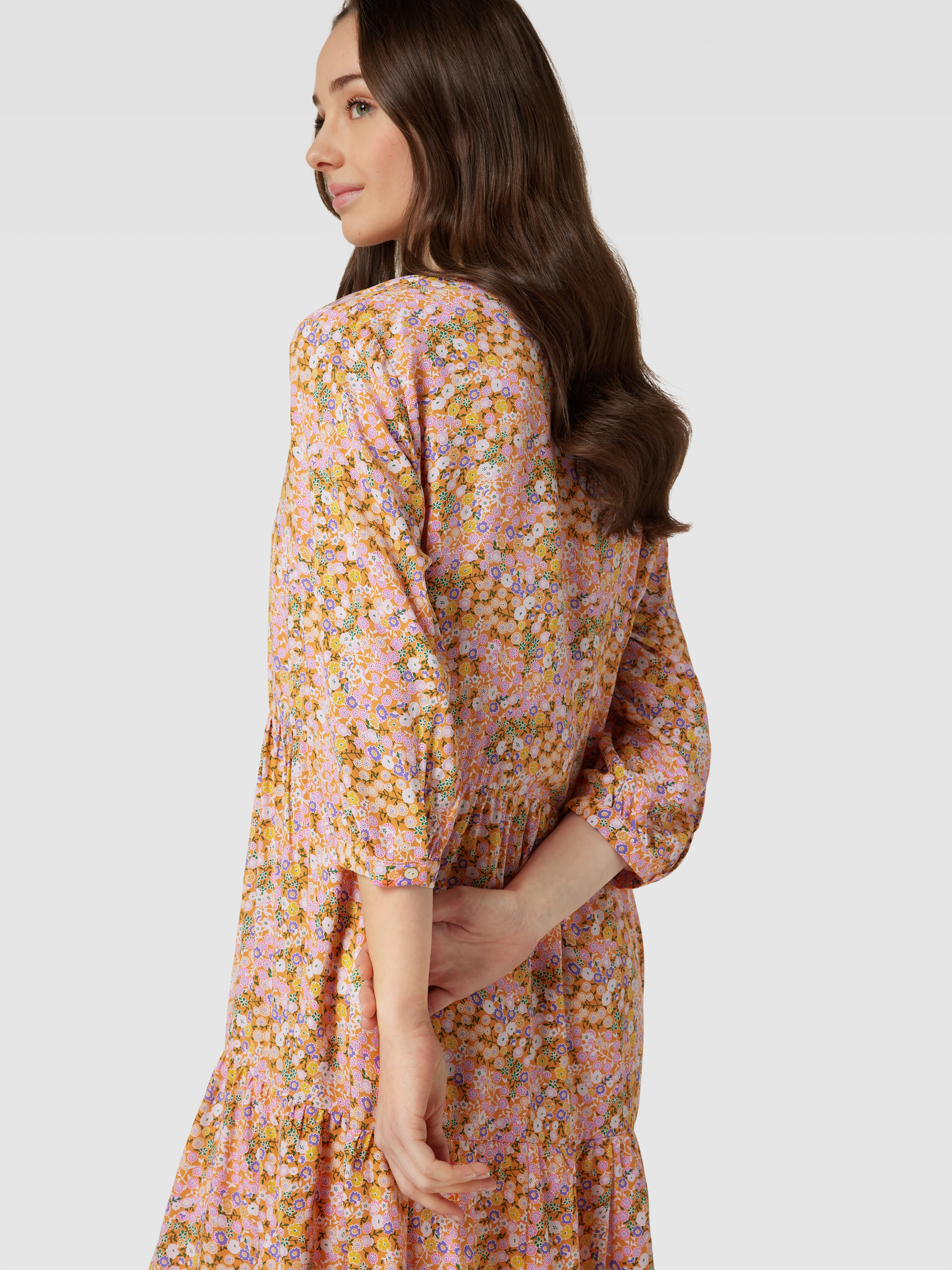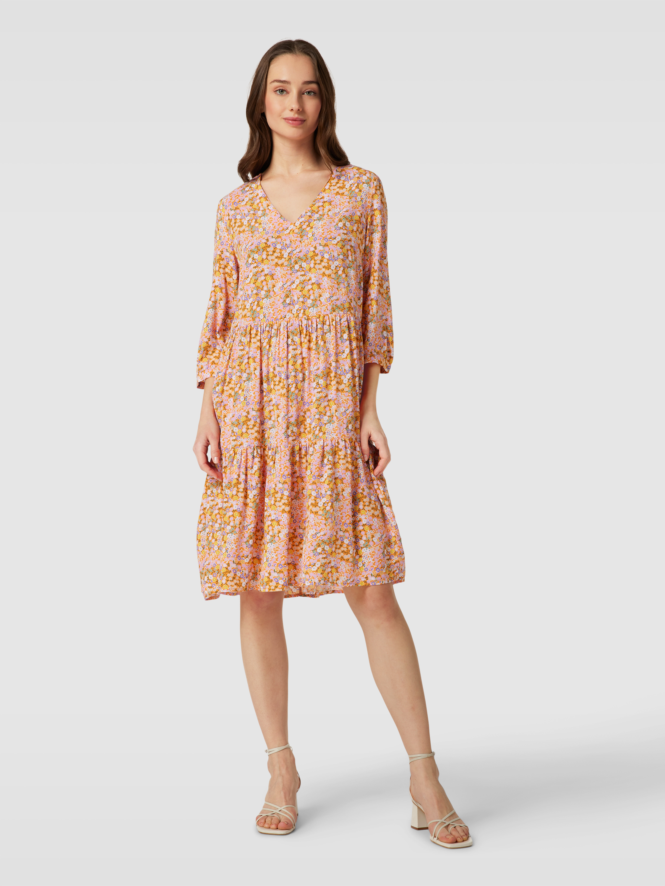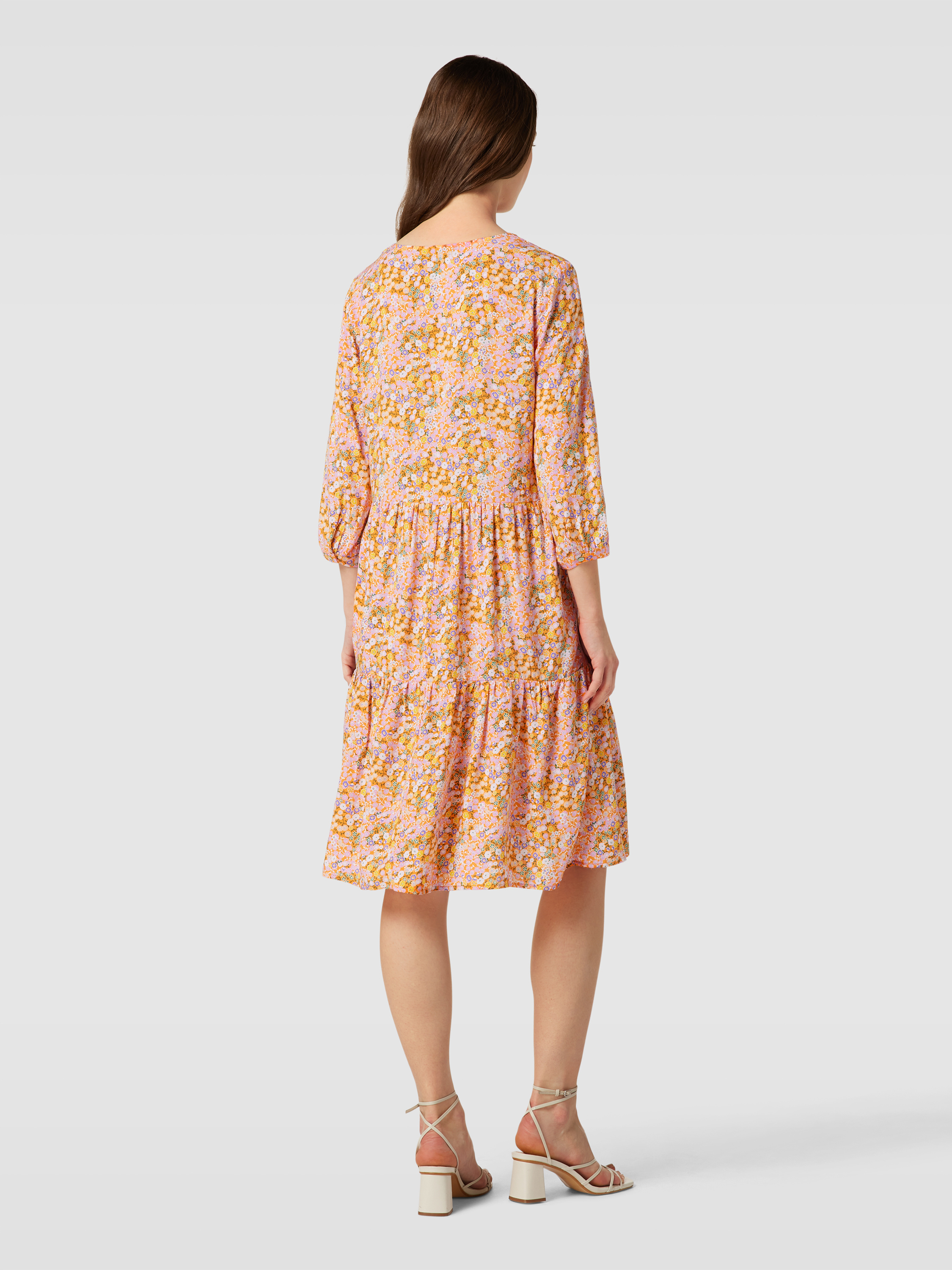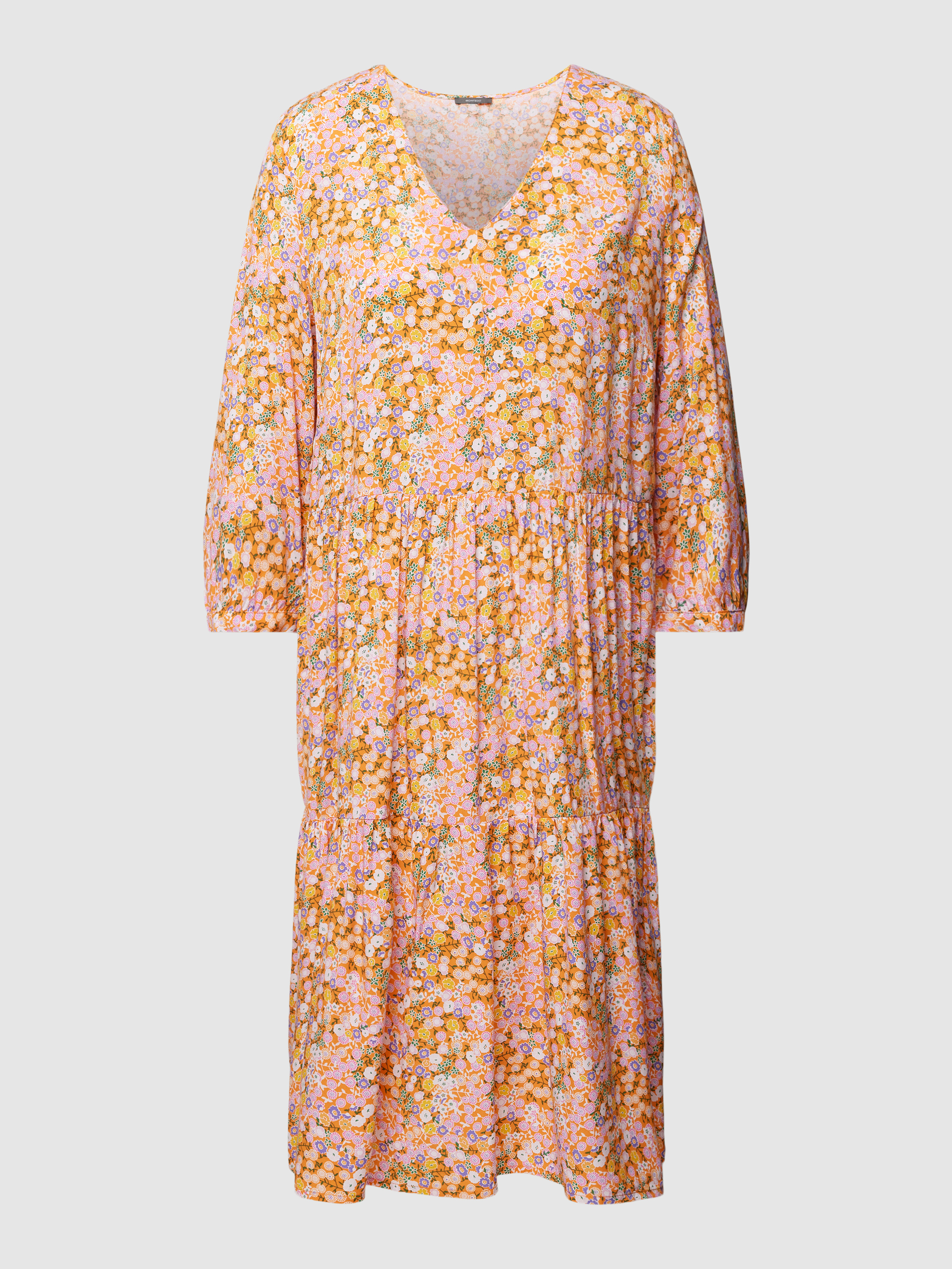 Knielange jurk van viscose met bloemenmotief in abrikoos