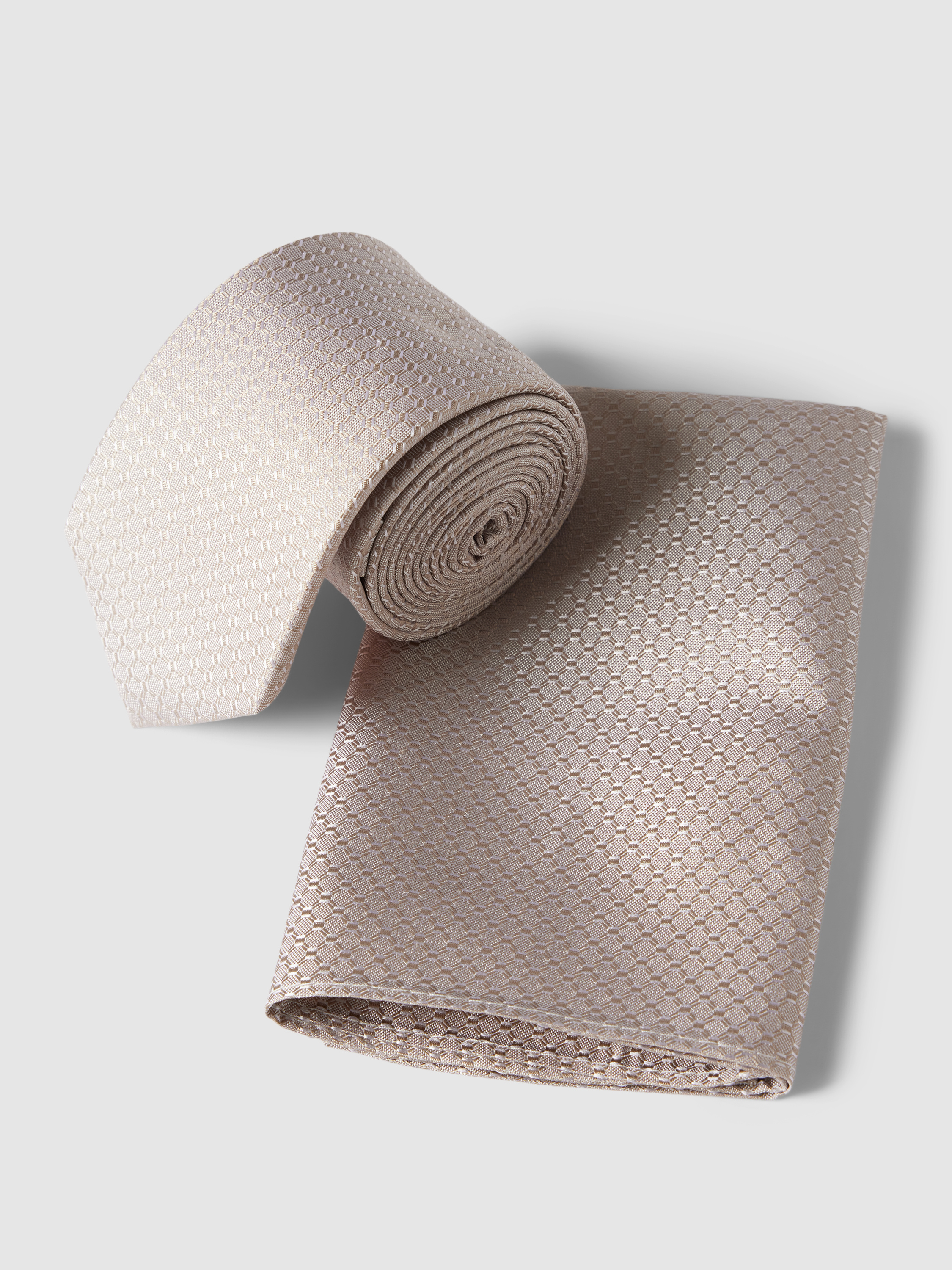 Stropdas en pochet in een set van zijde in ecru
