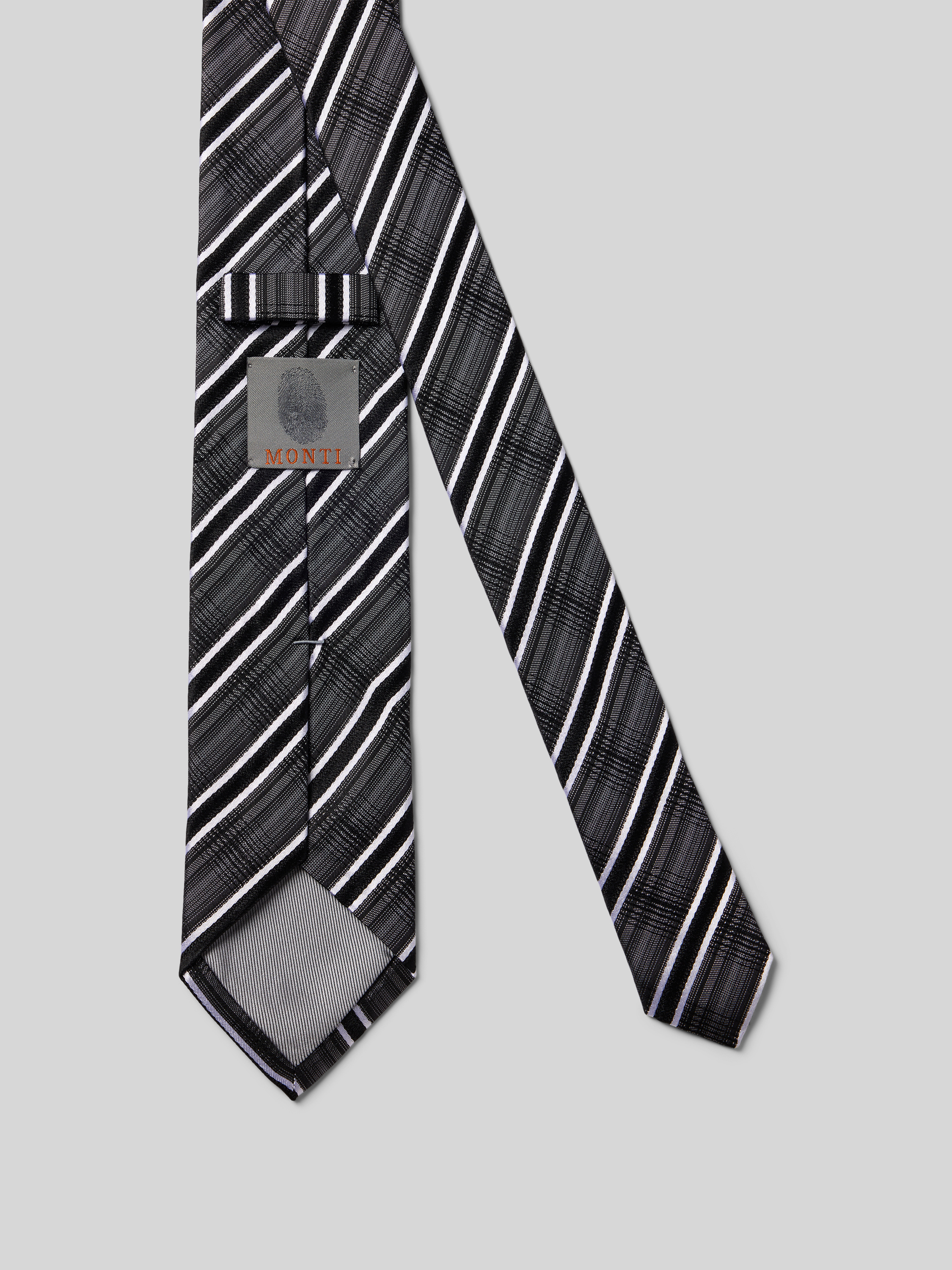Zijden stropdas met all-over print (7 cm) in grafiet