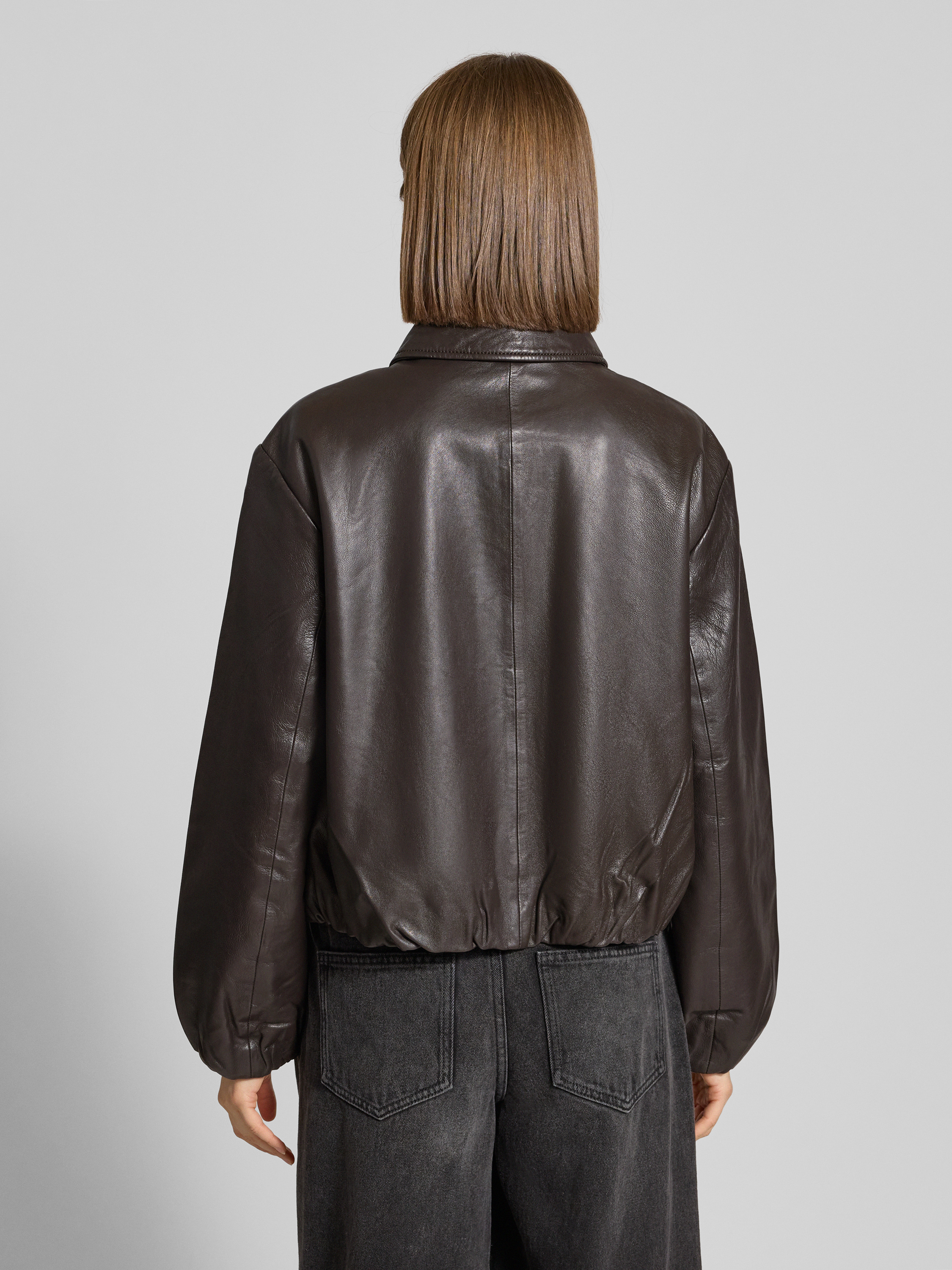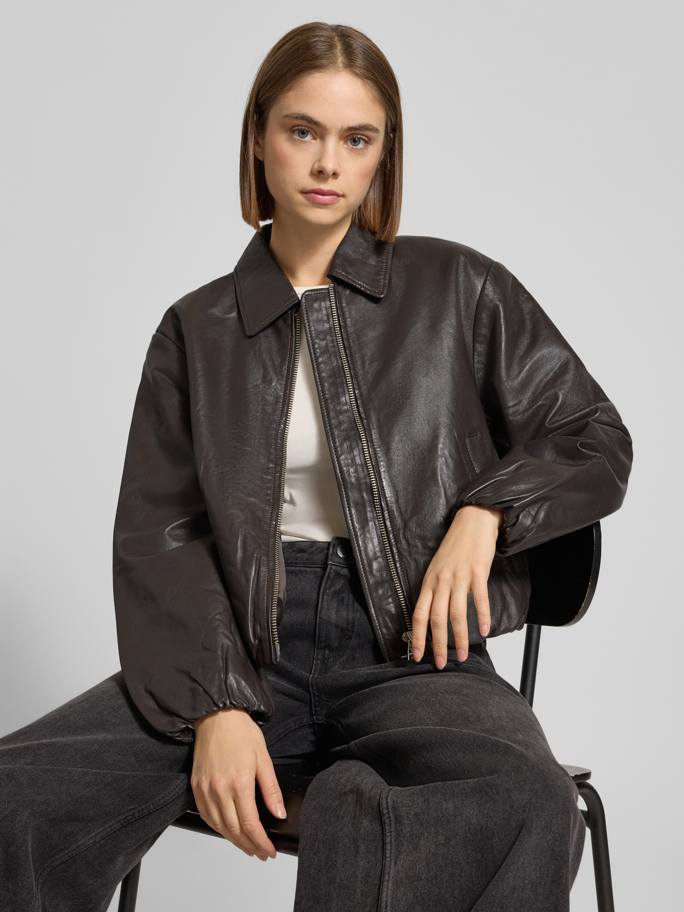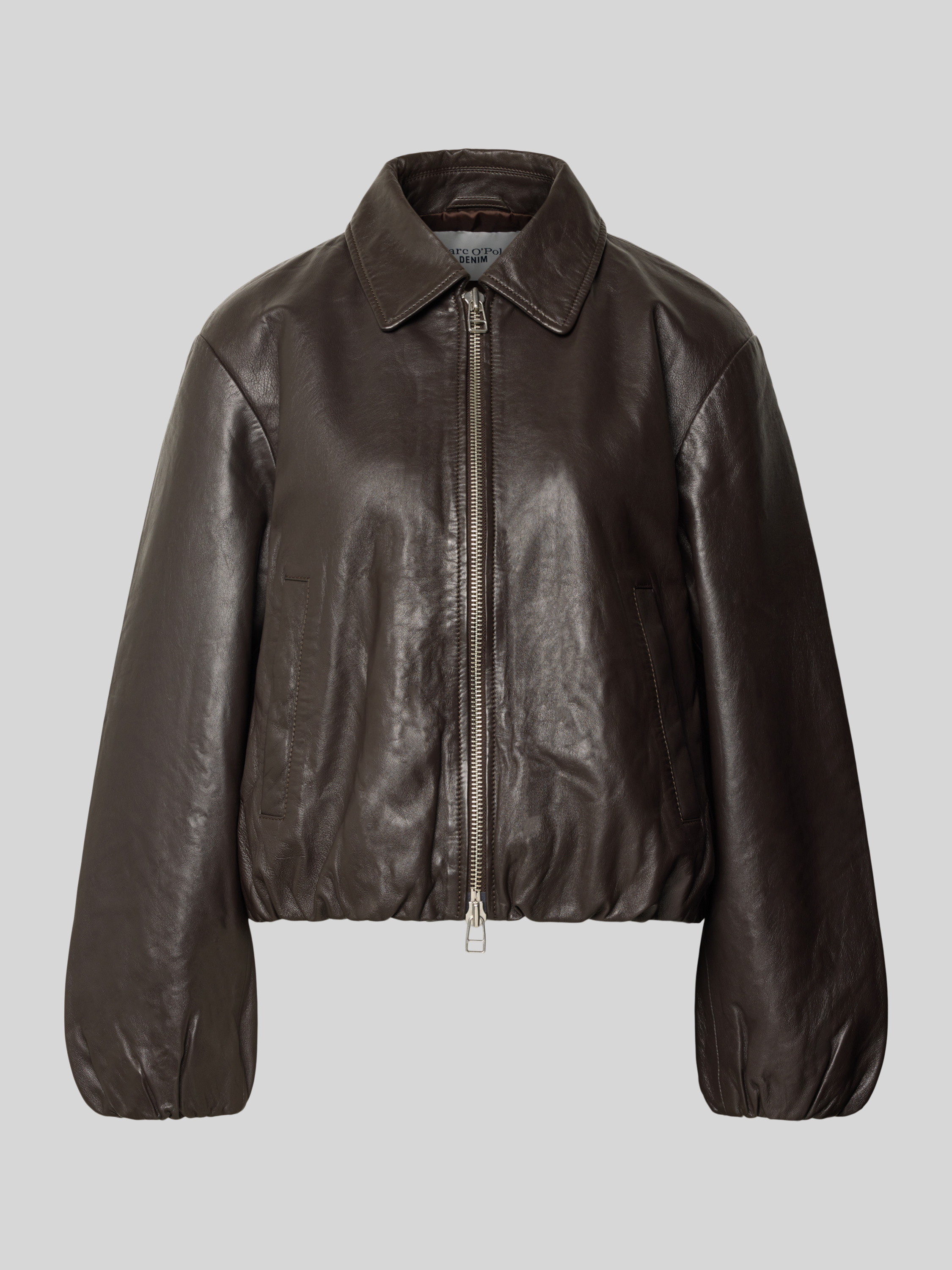 Marc O'Polo DenimRegular fit leren jack met elastische band in donkerbruin