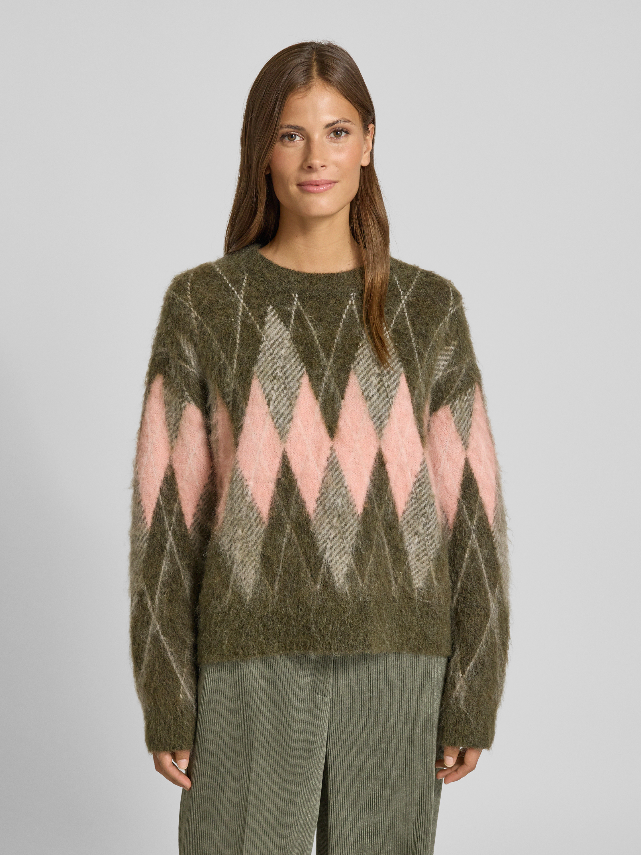 Relaxed fit gebreide pullover van wolmix in olijfgroen