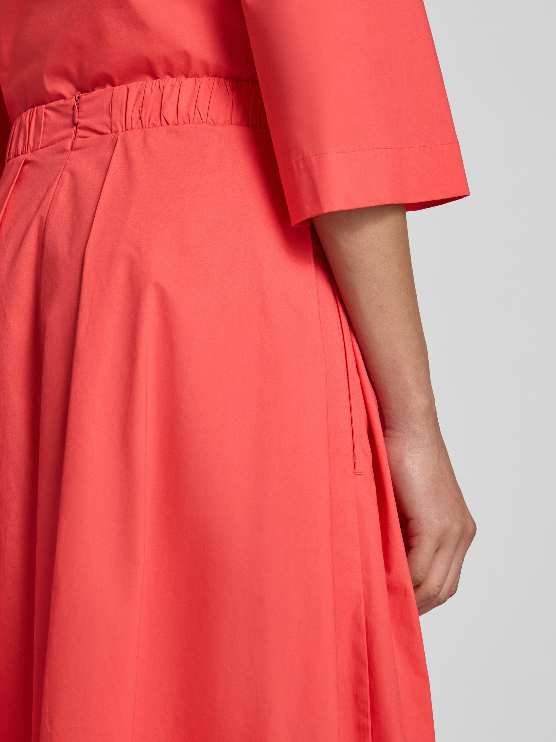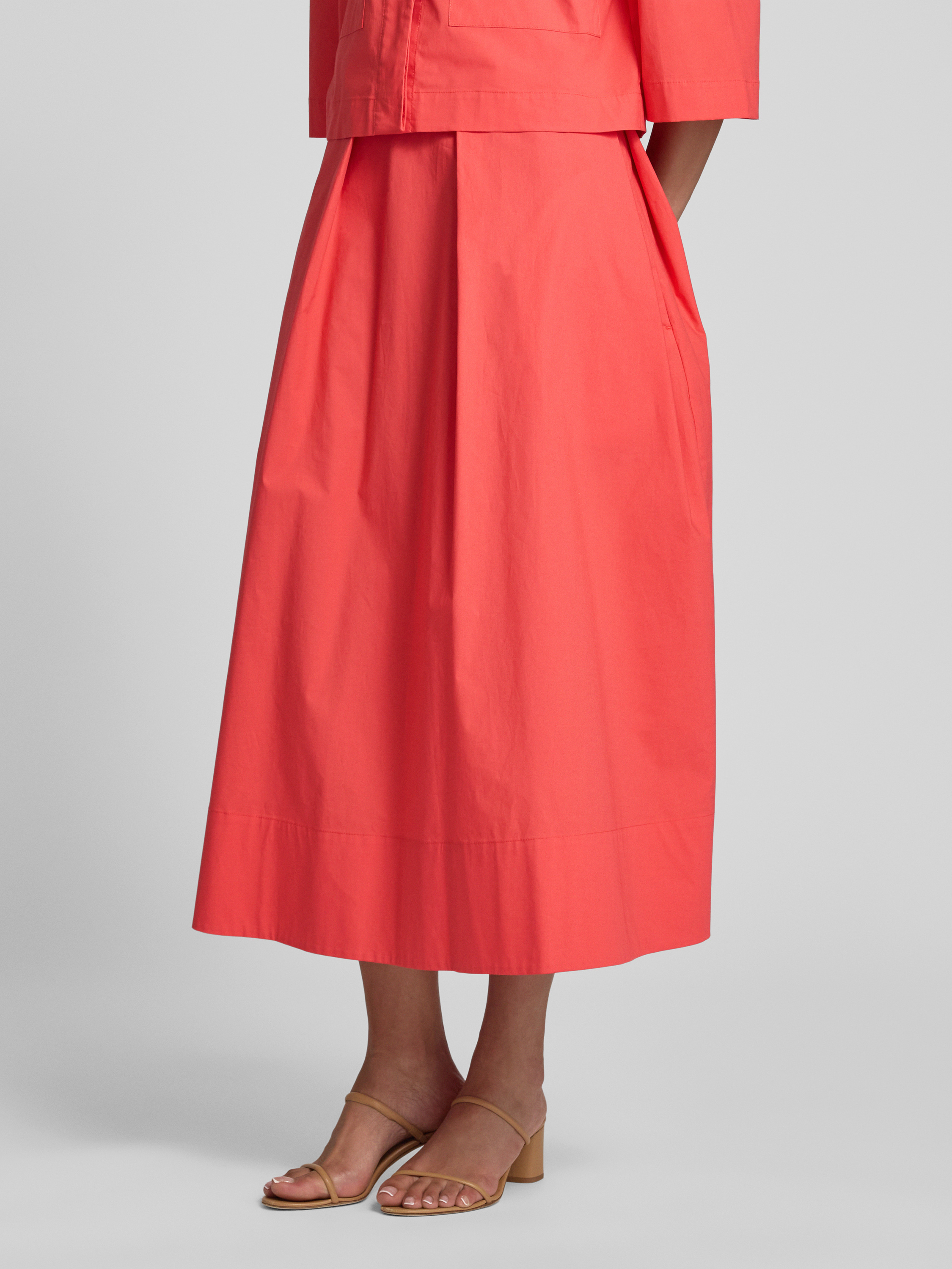 Midirok in A-lijn met plooien in rood
