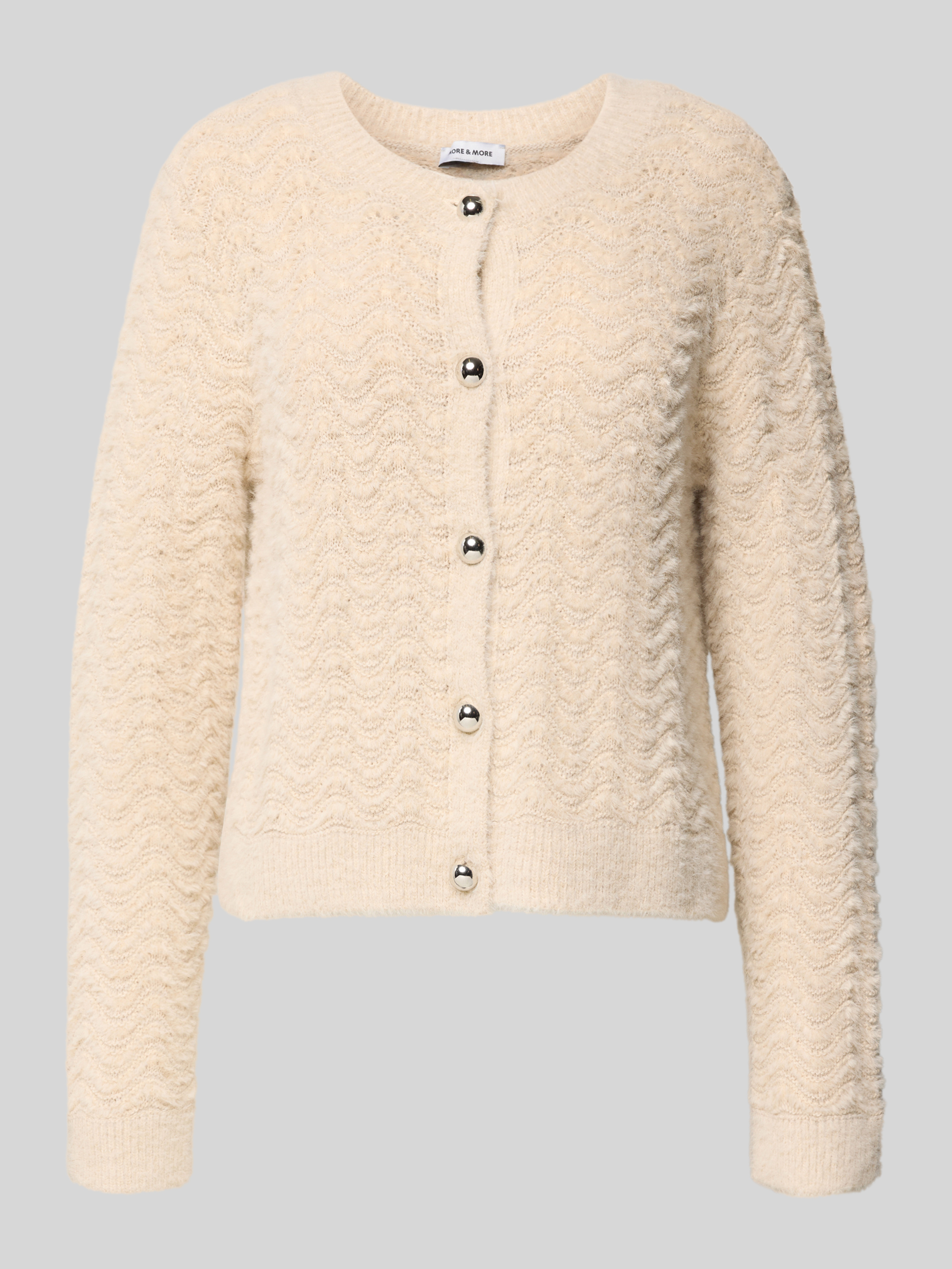 More & MoreGebreid jack met ronde hals en knoopsluiting in offwhite