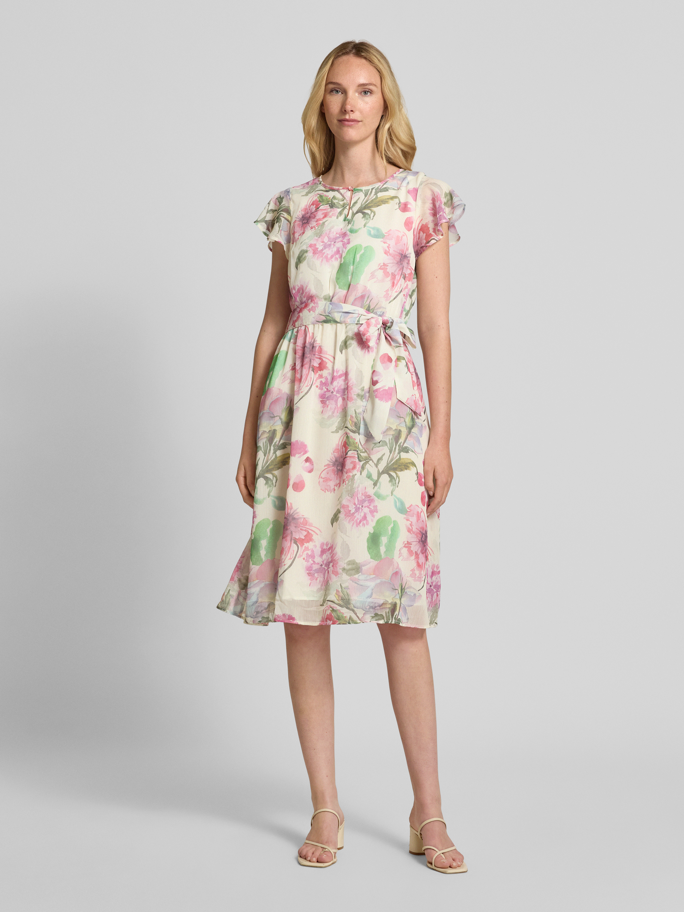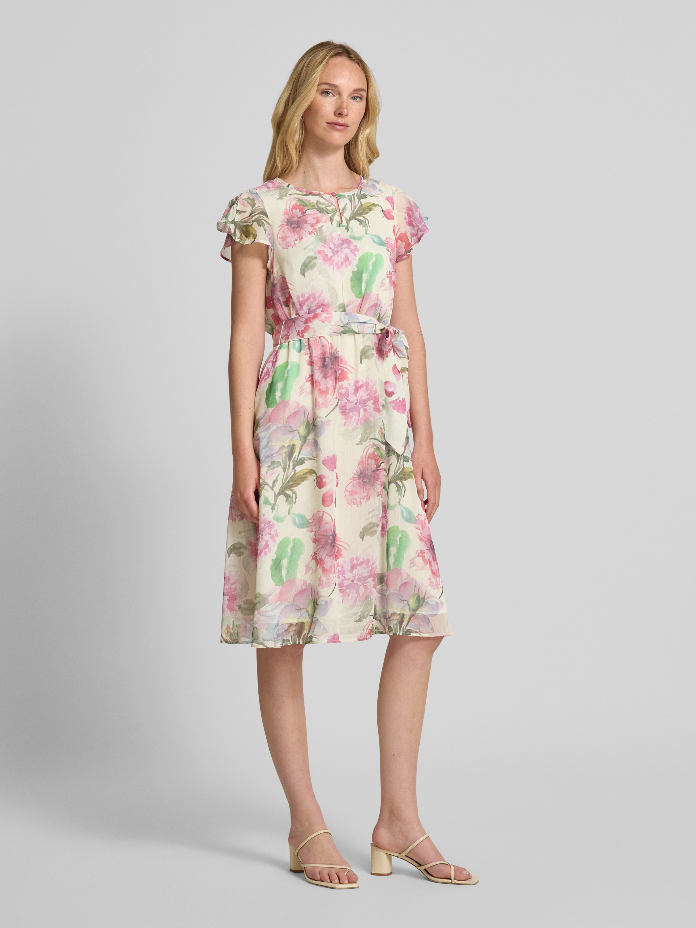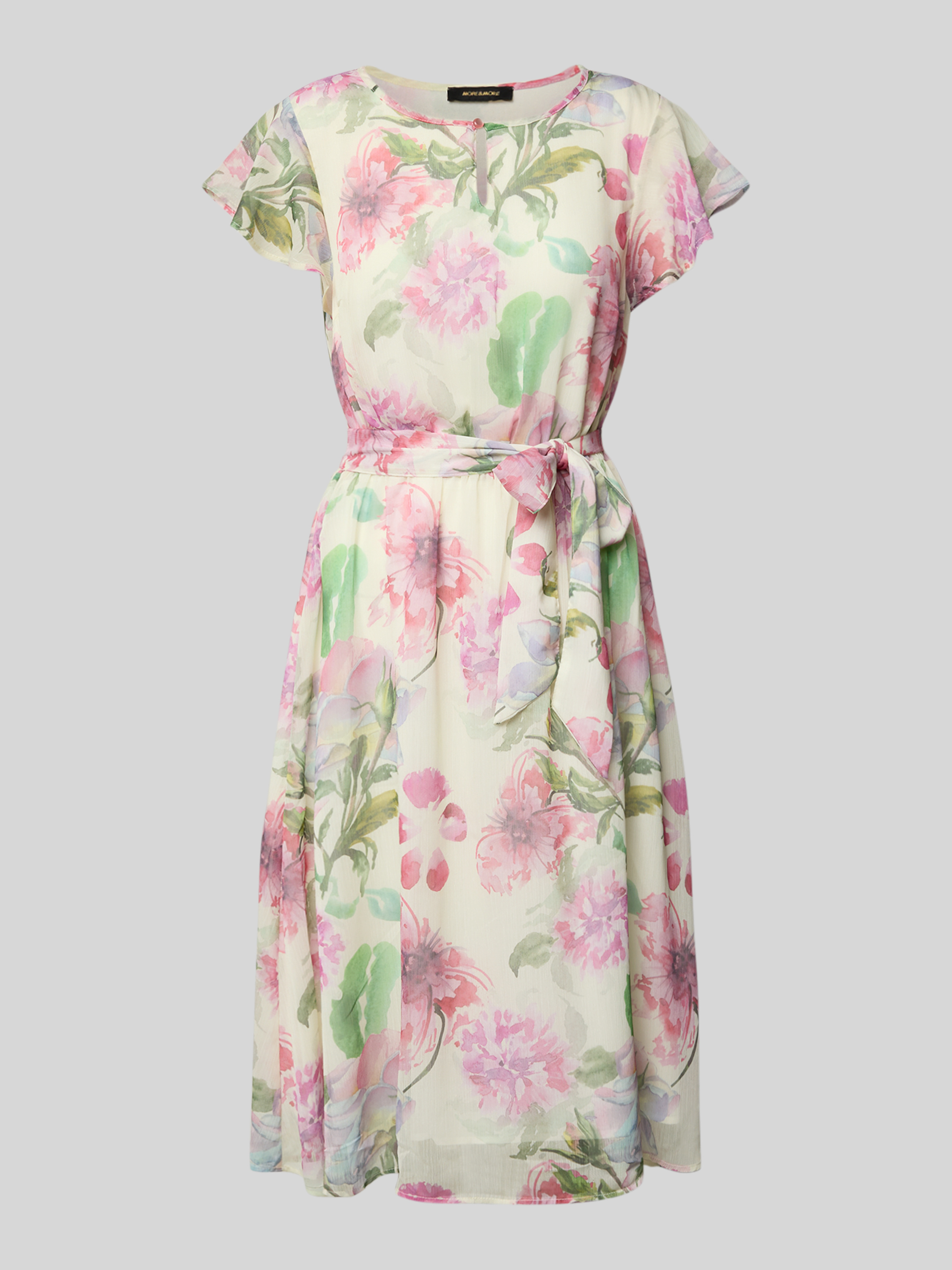 More & MoreKnielange jurk met strikceintuur in felroze