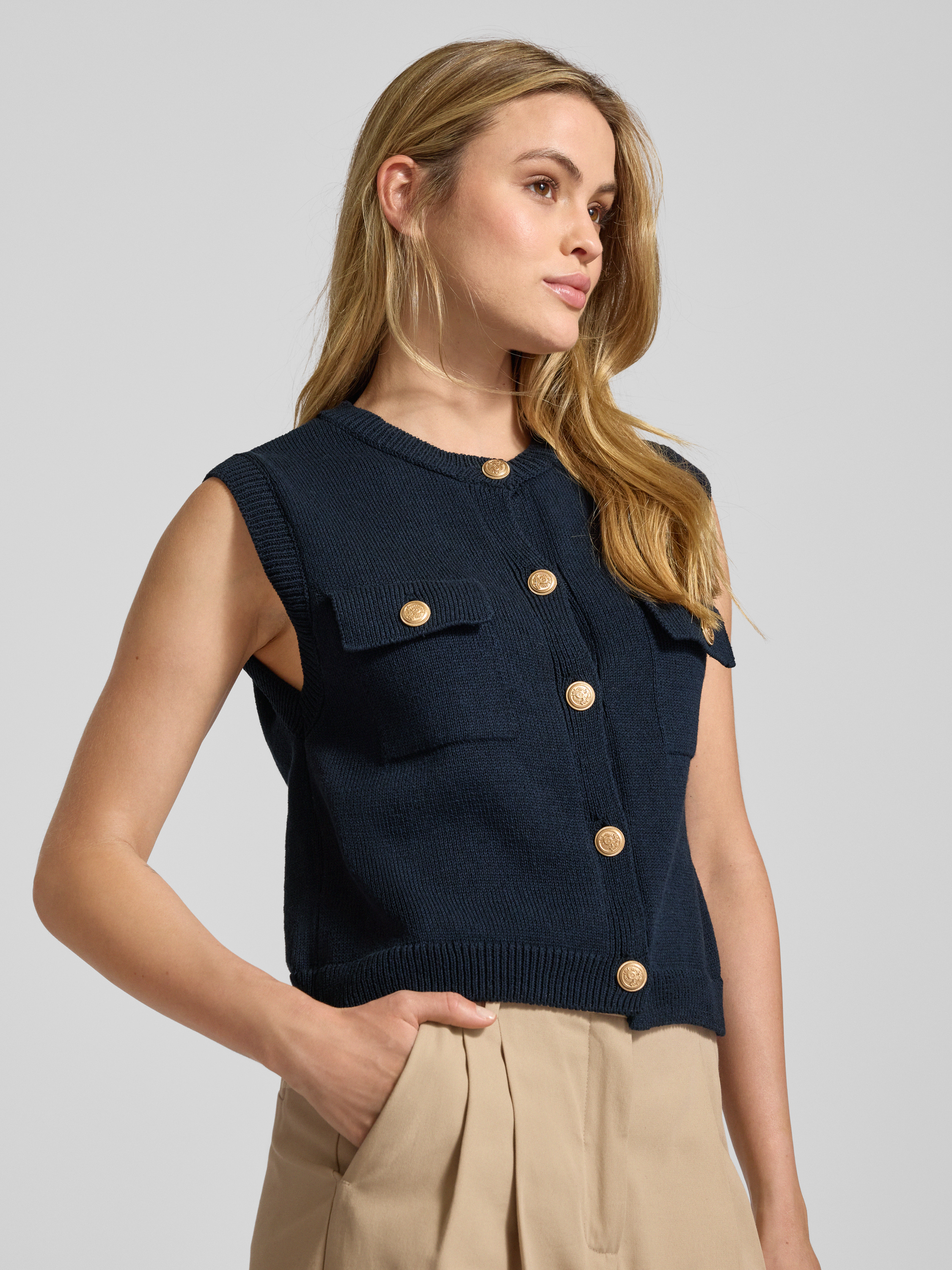 More & MoreMouwloos vest met borstzakken in marineblauw