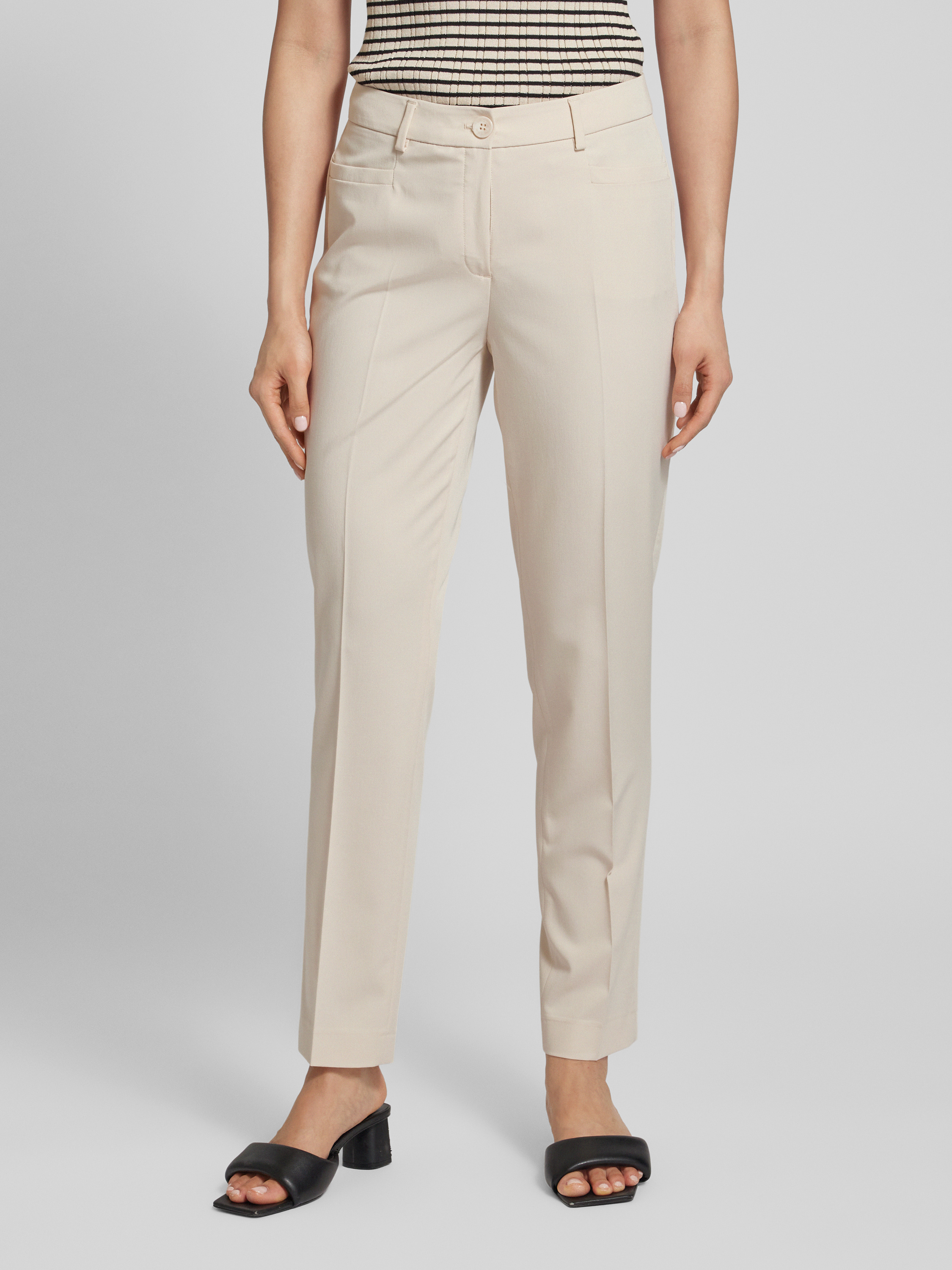 More & MoreSlim fit stoffen broek met persplooien in zand