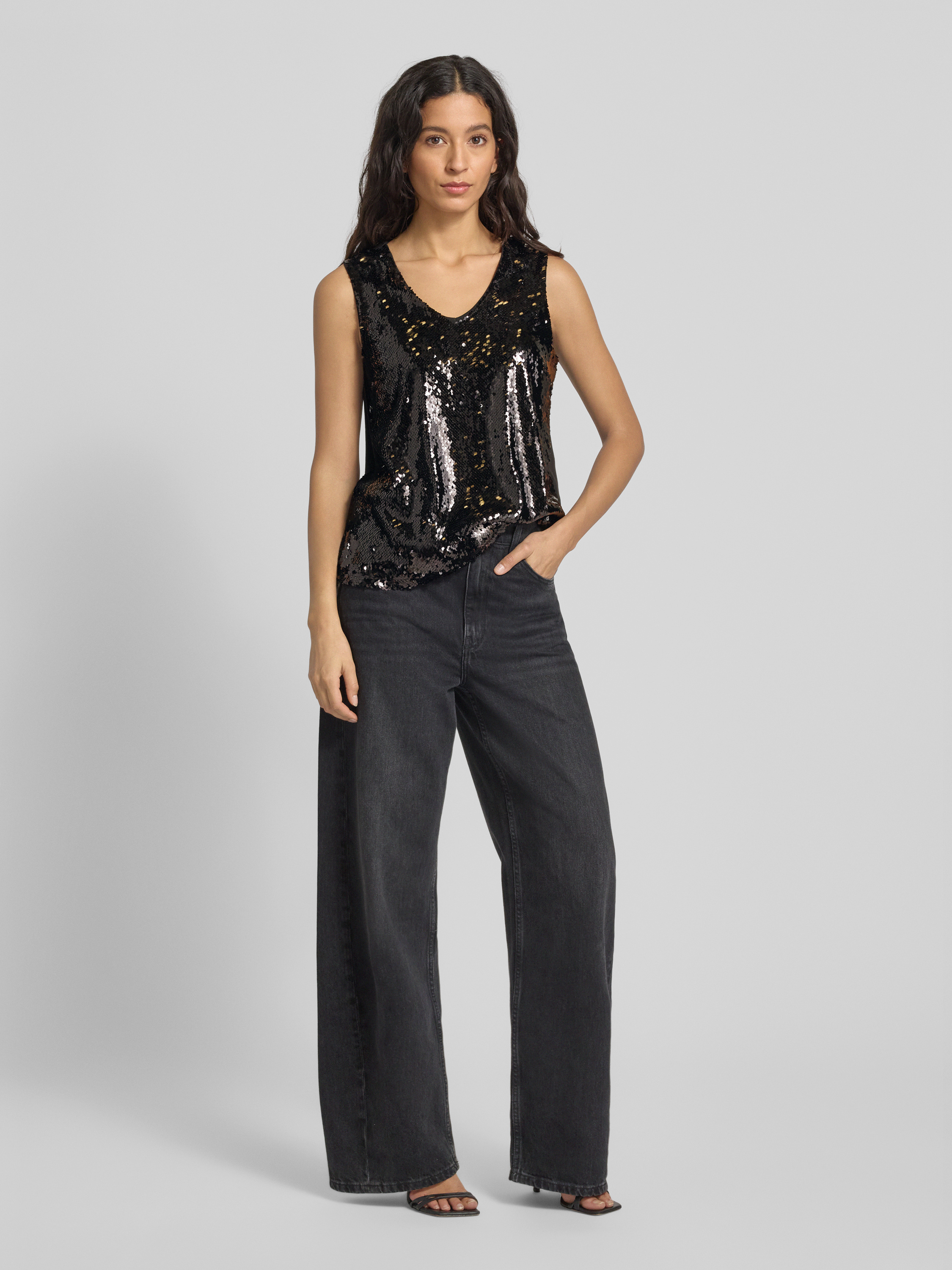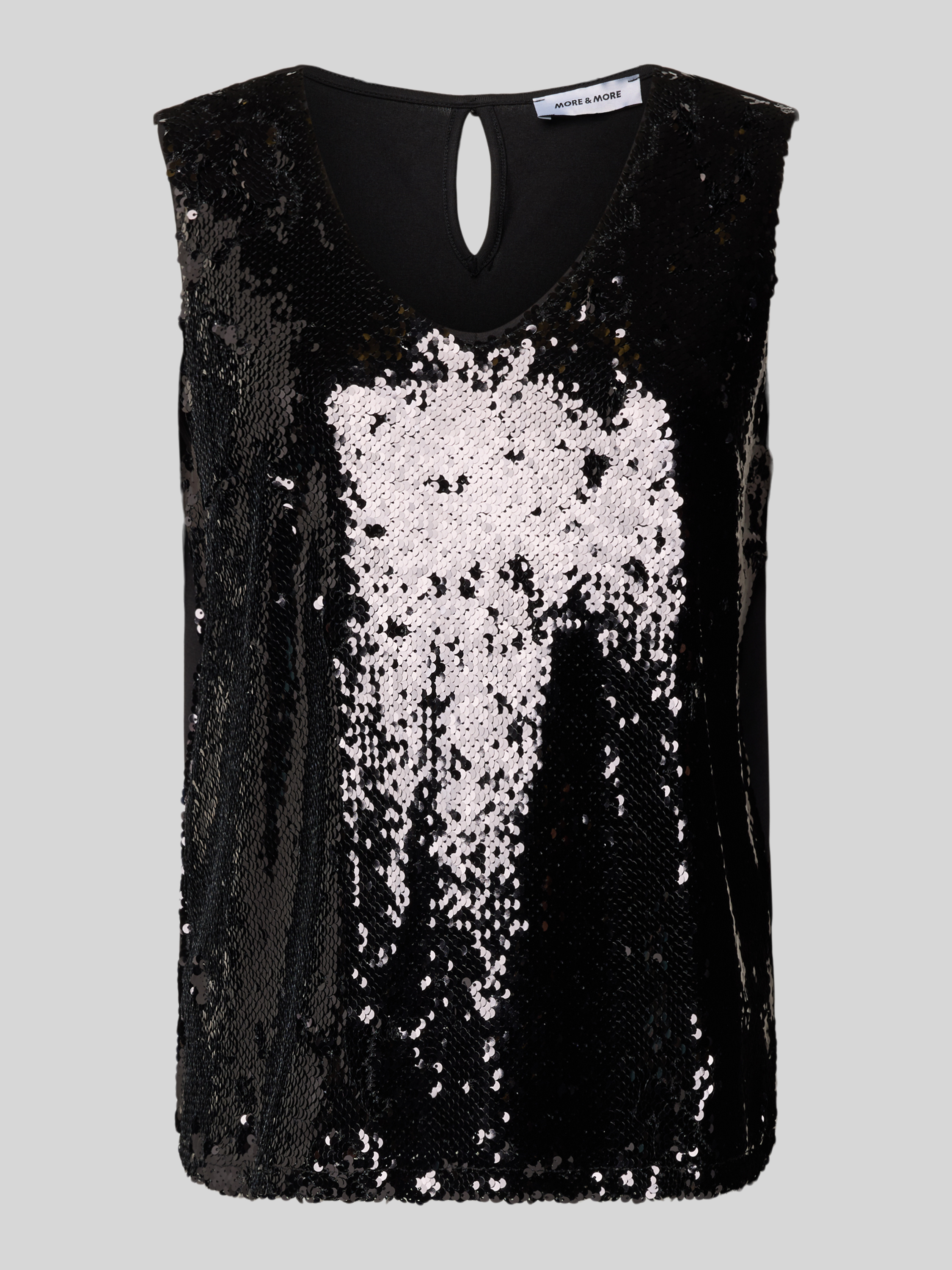 More & MoreTop met bandjes, V-hals en pailletten in zwart