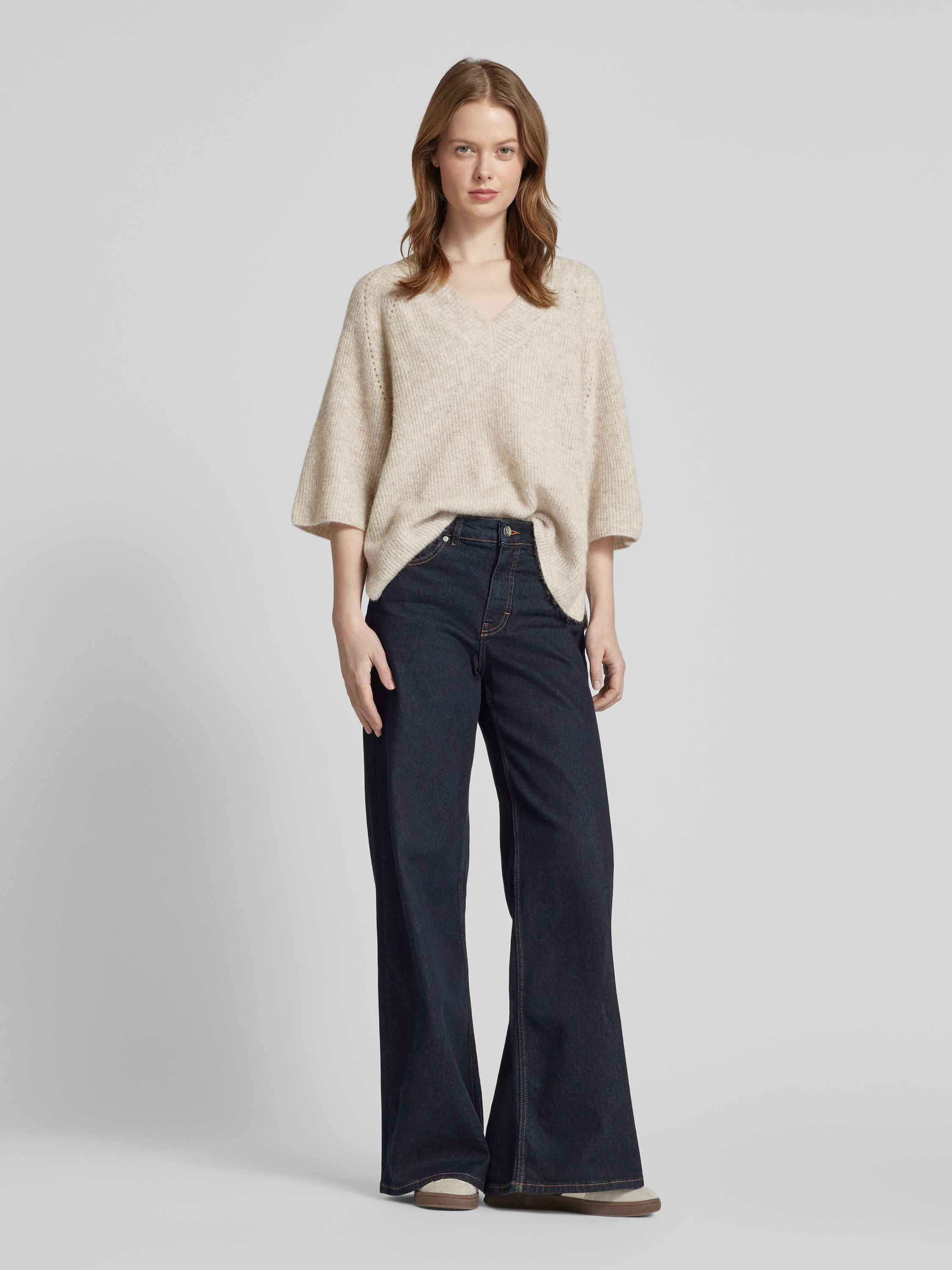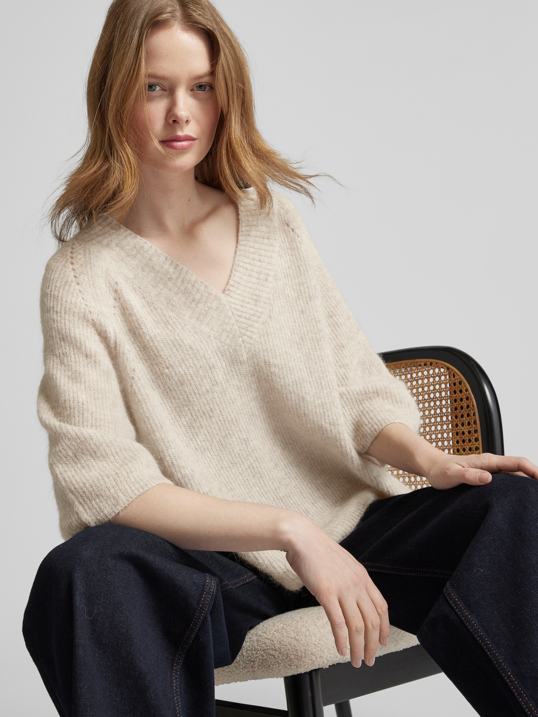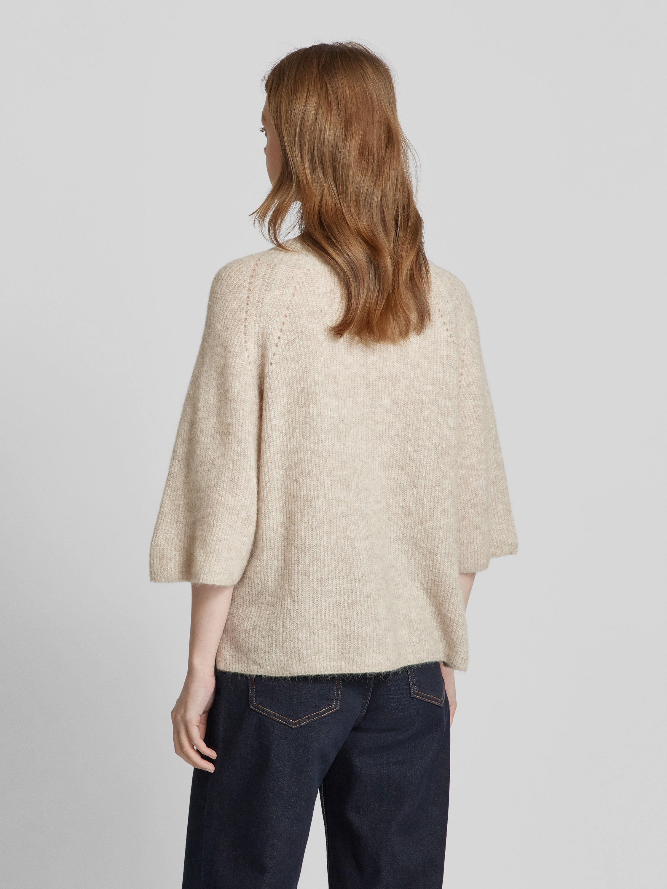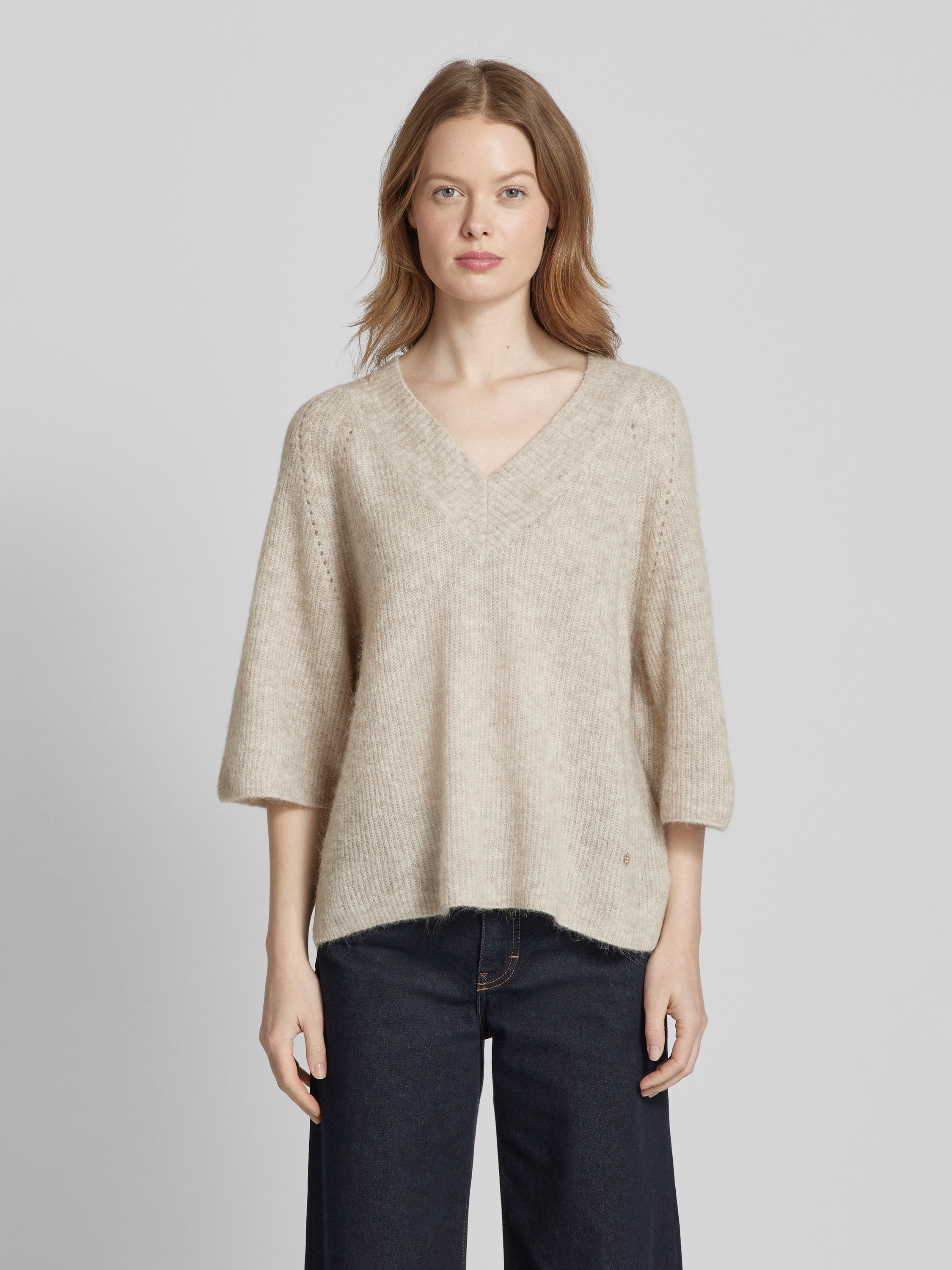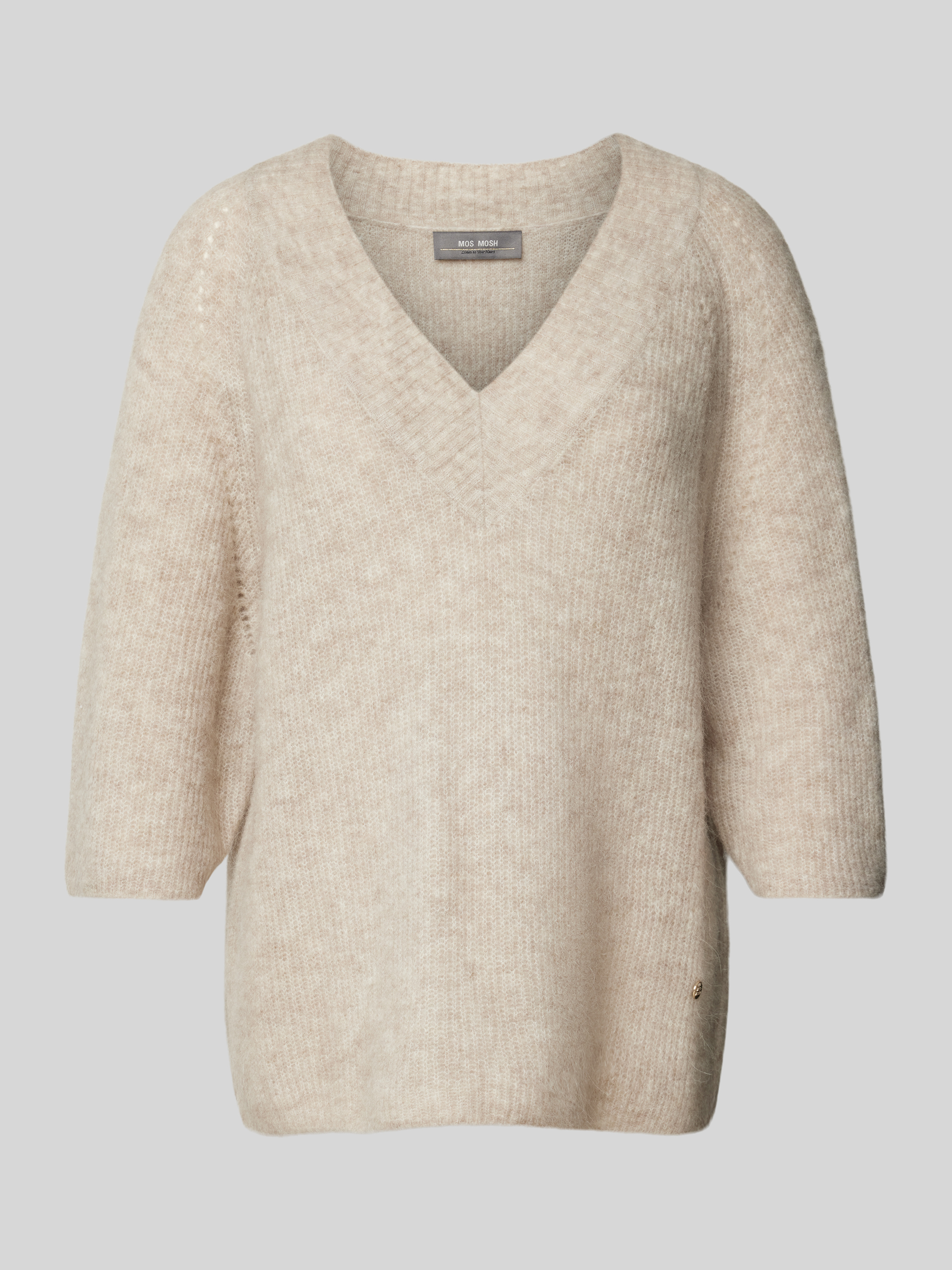 MOS MOSHGebreide pullover met 3/4-mouwen, model 'TACI' in zand gemêleerd