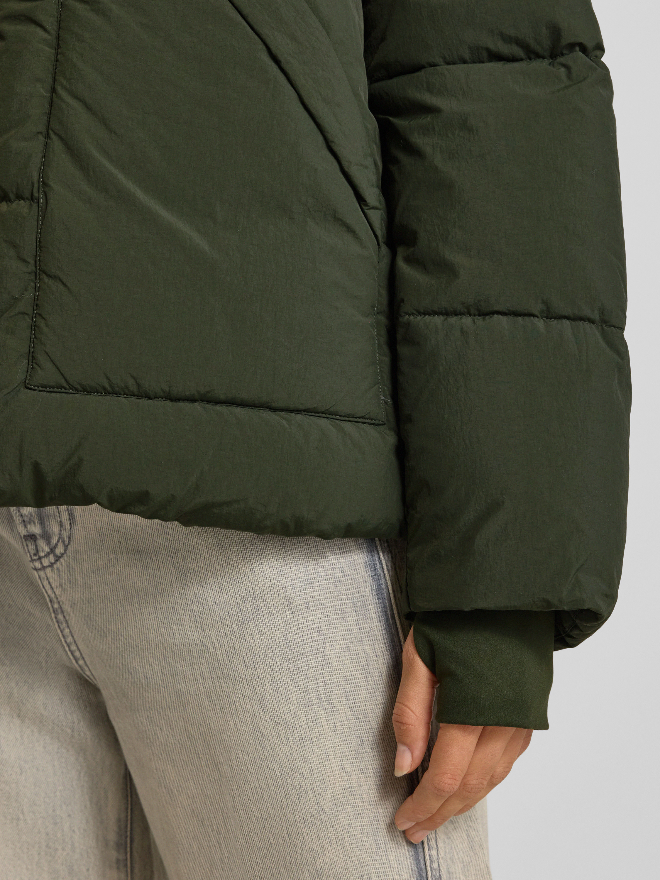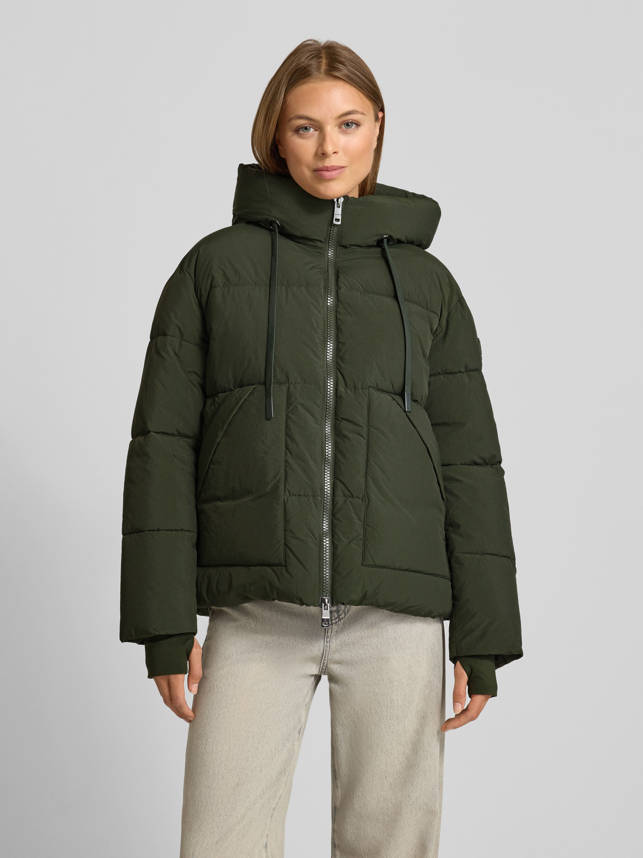 Gewatteerd jack met capuchon, model 'Ollie' in donkergroen
