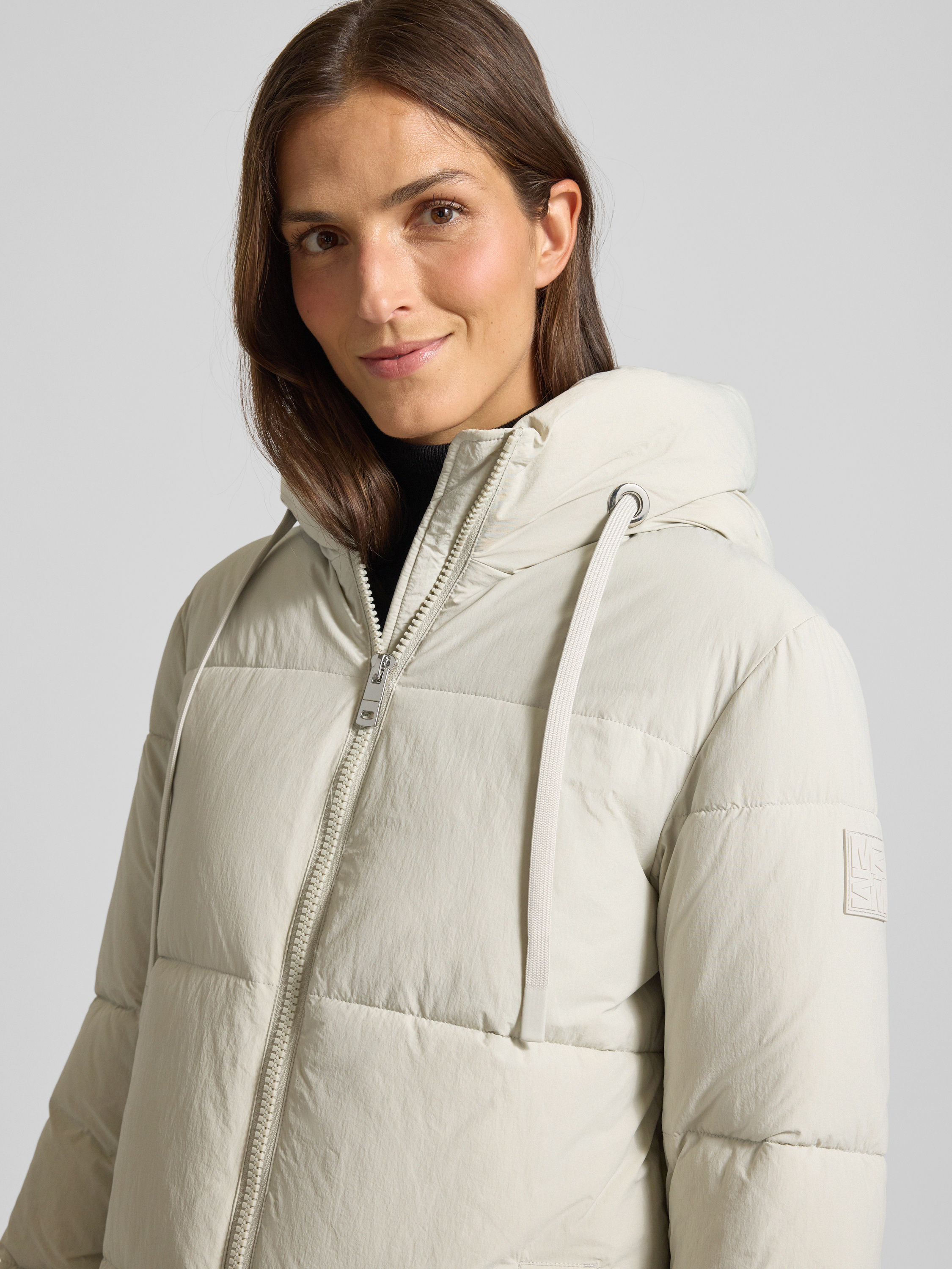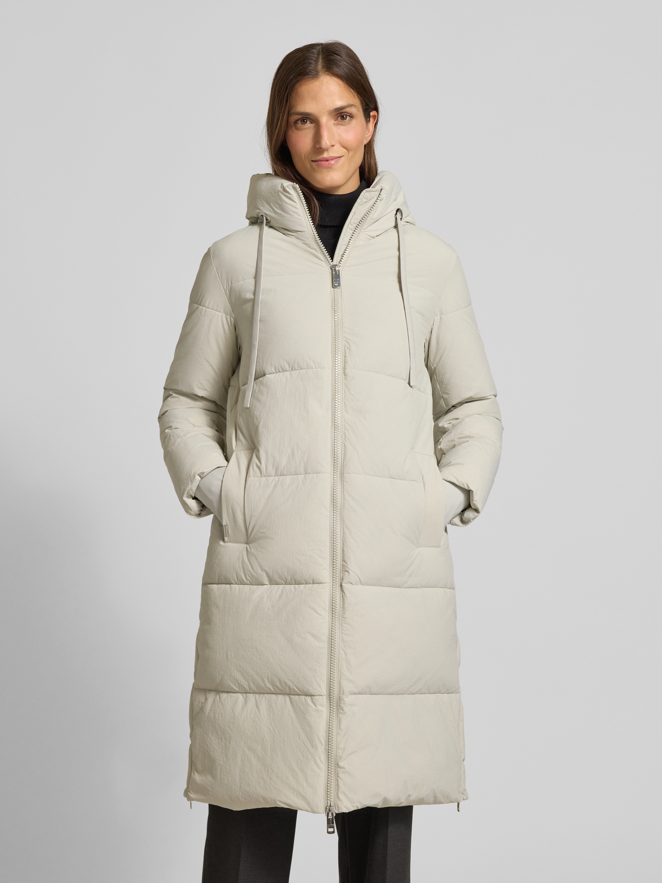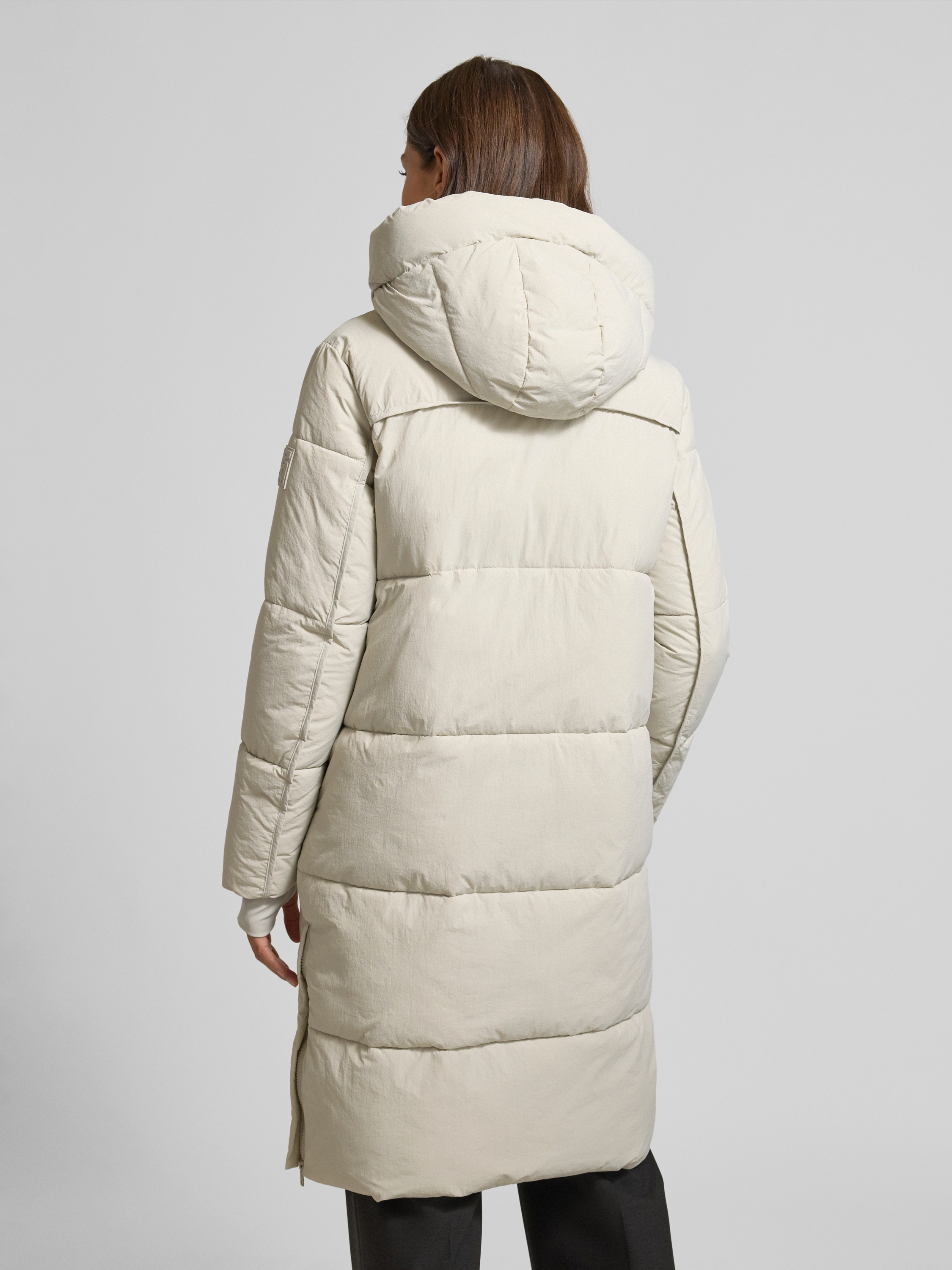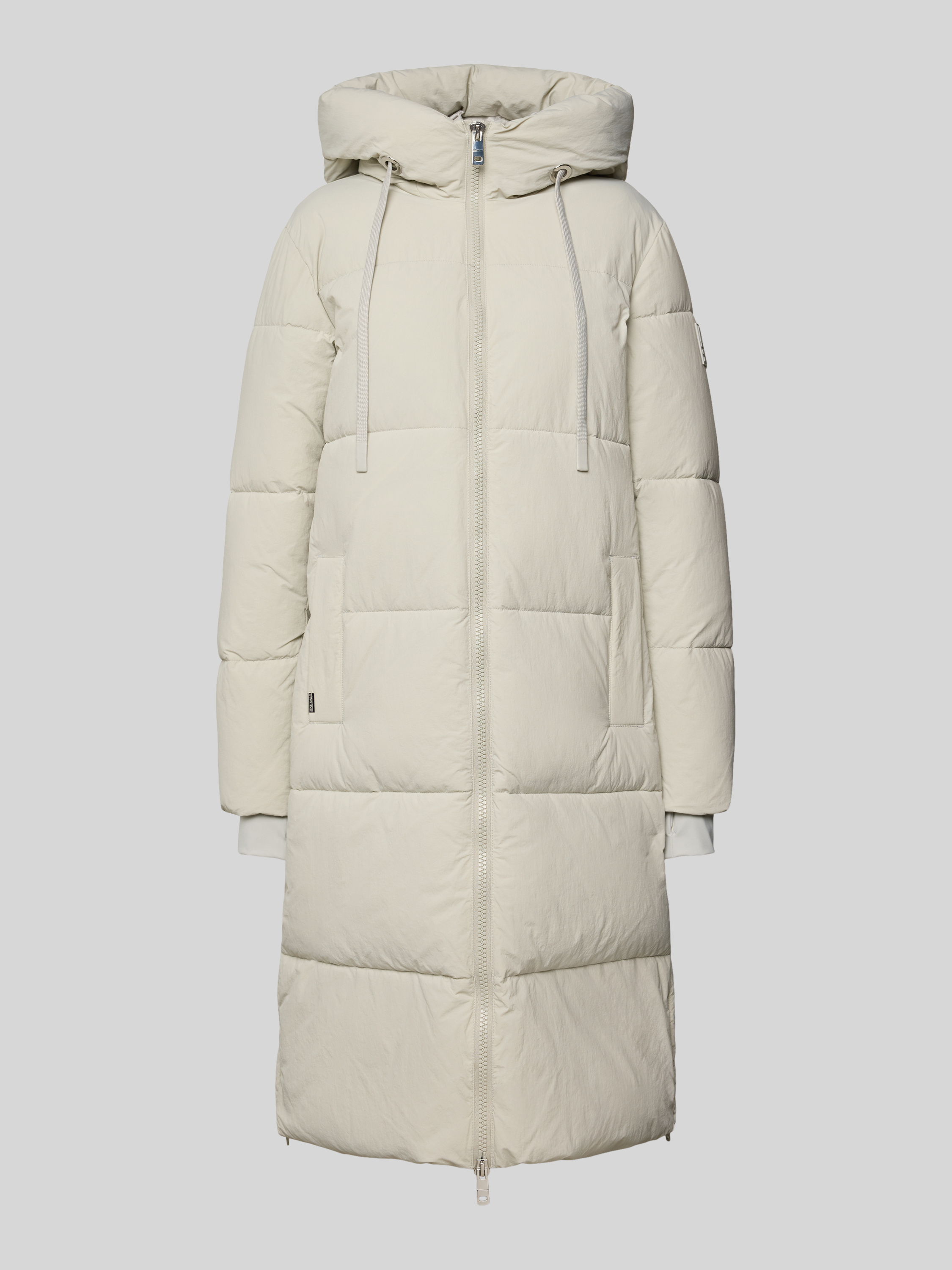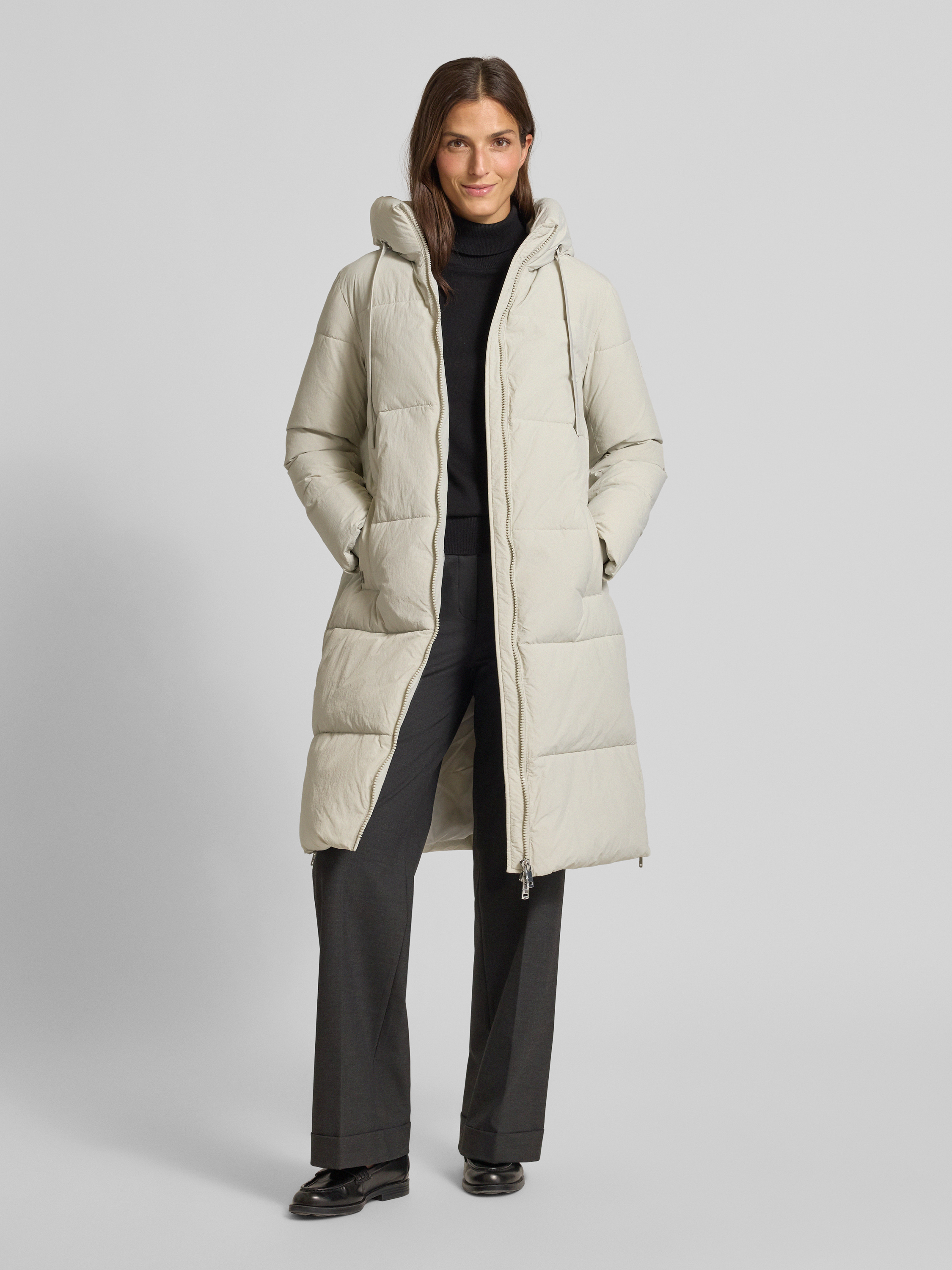 Gewatteerde lange jas met capuchon, model 'Ollie' in lichtgrijs