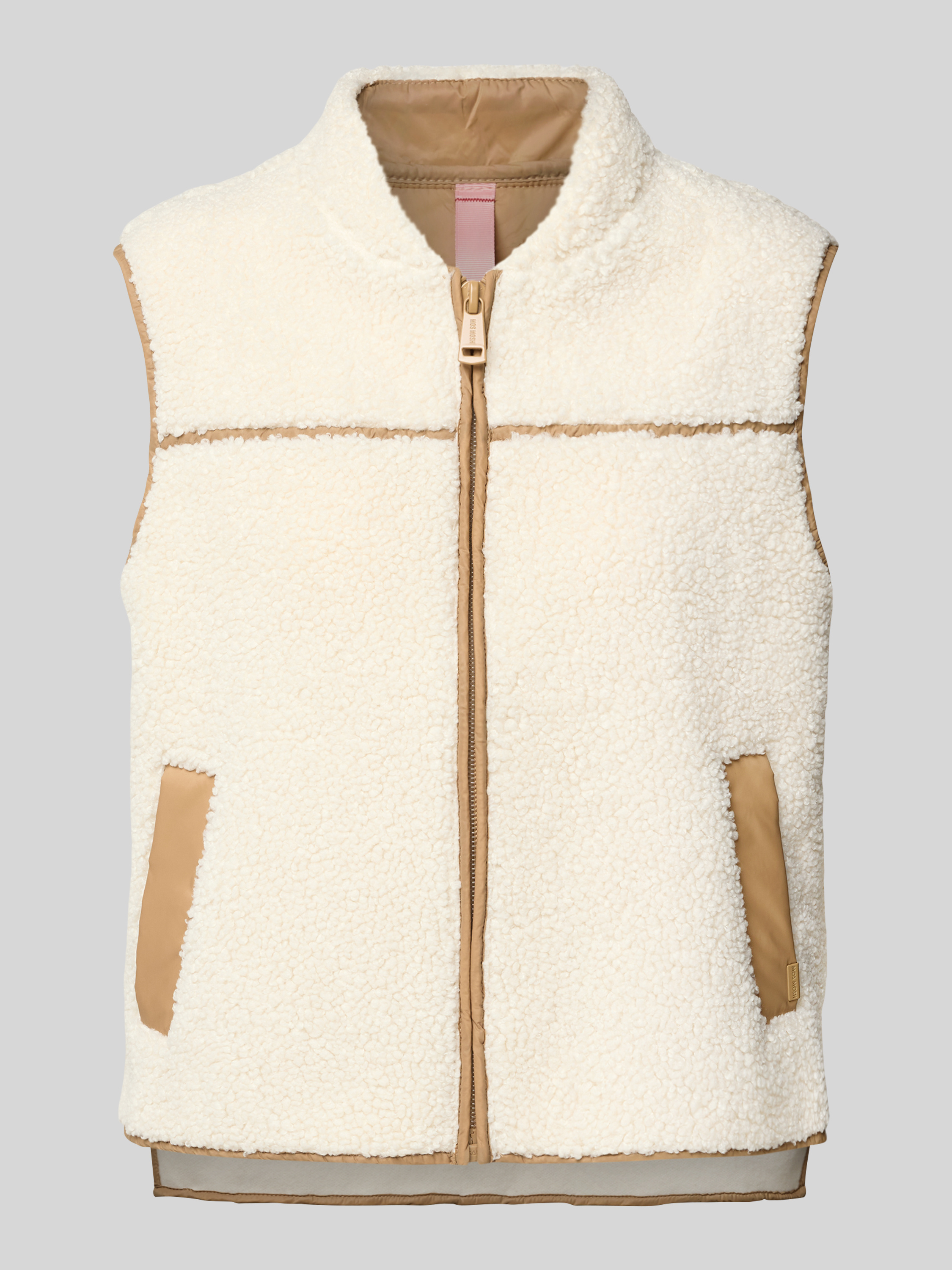 Gilet van teddybont met schuine zakken, model 'Rowe' in ecru