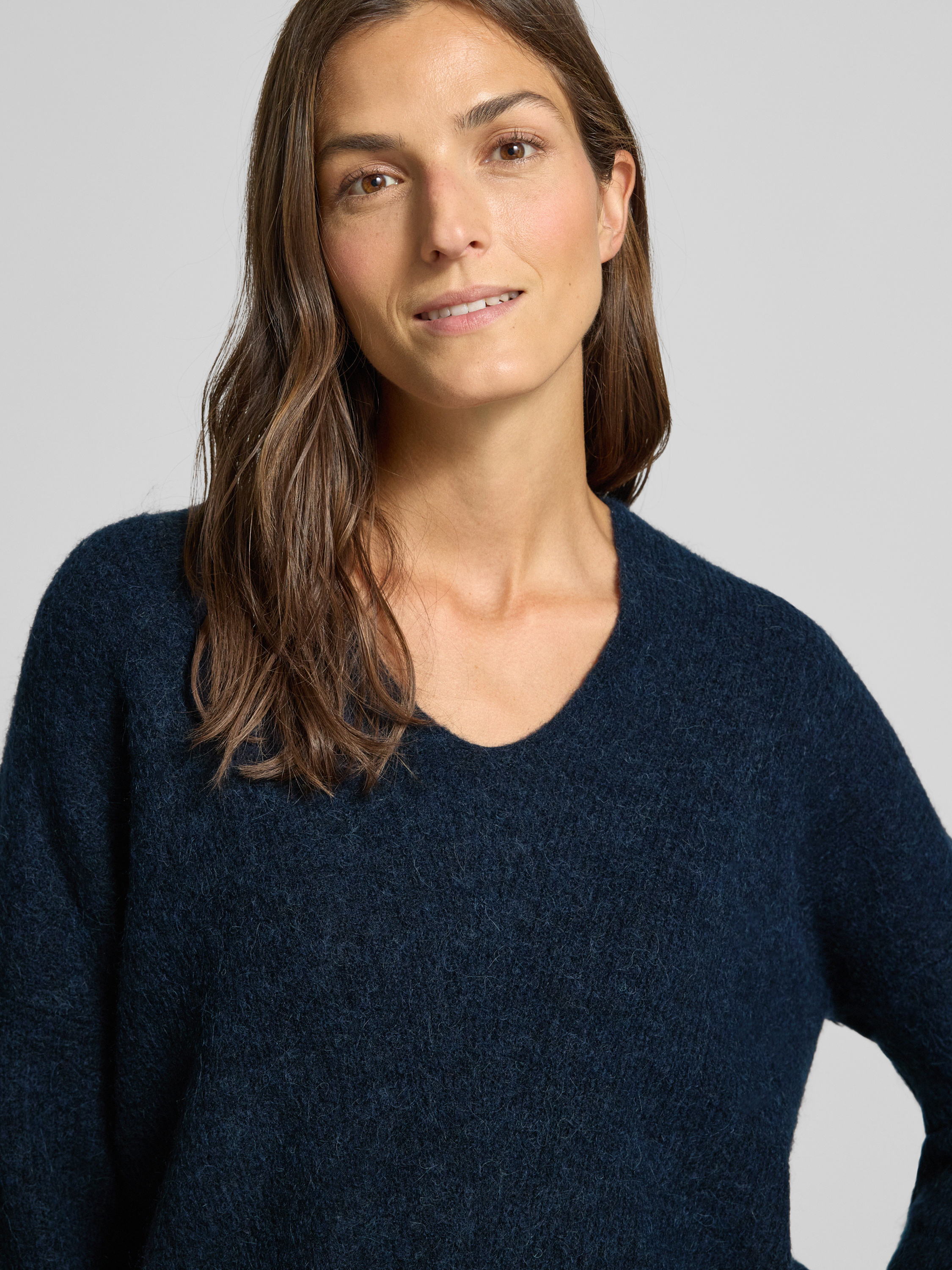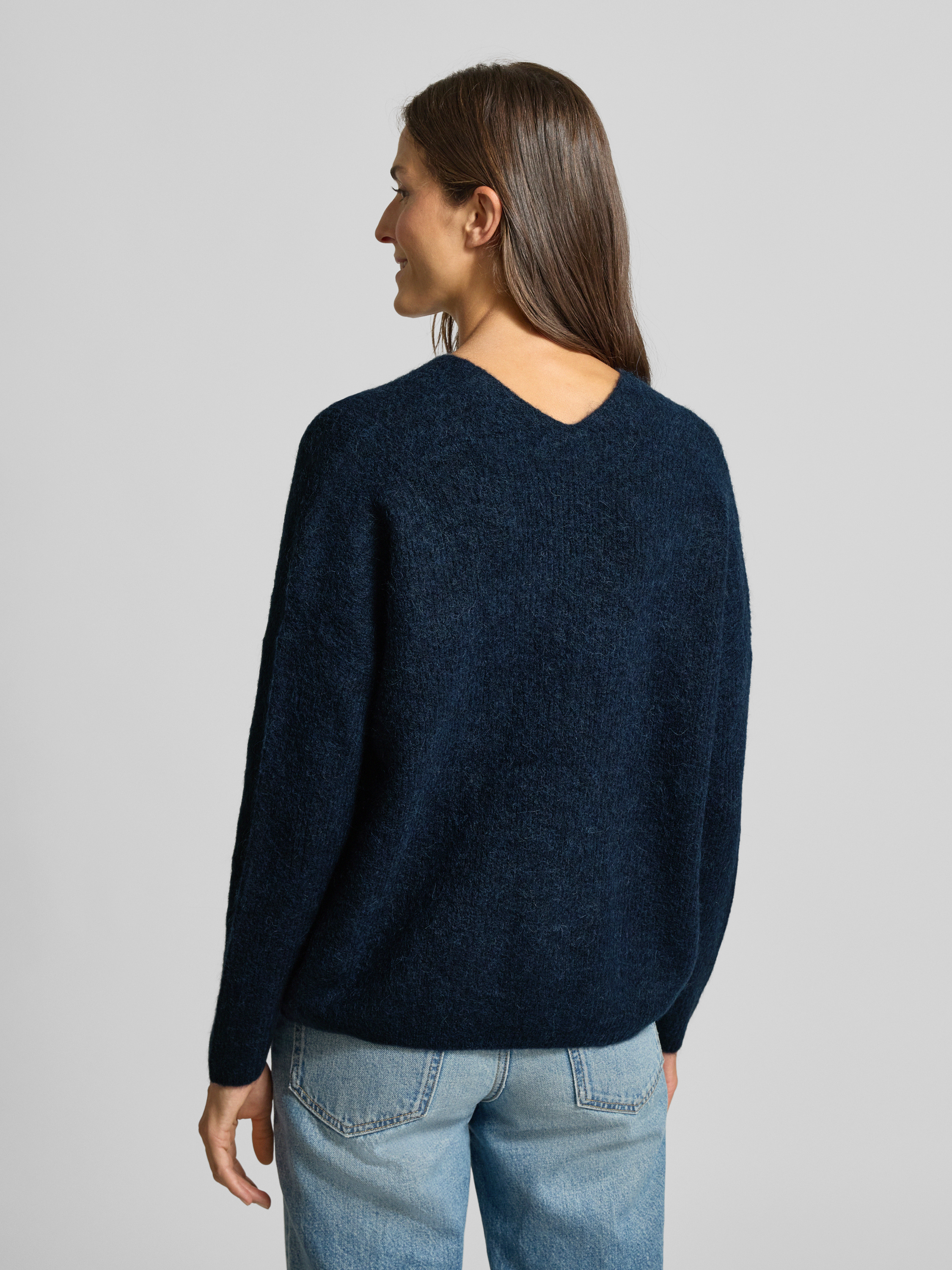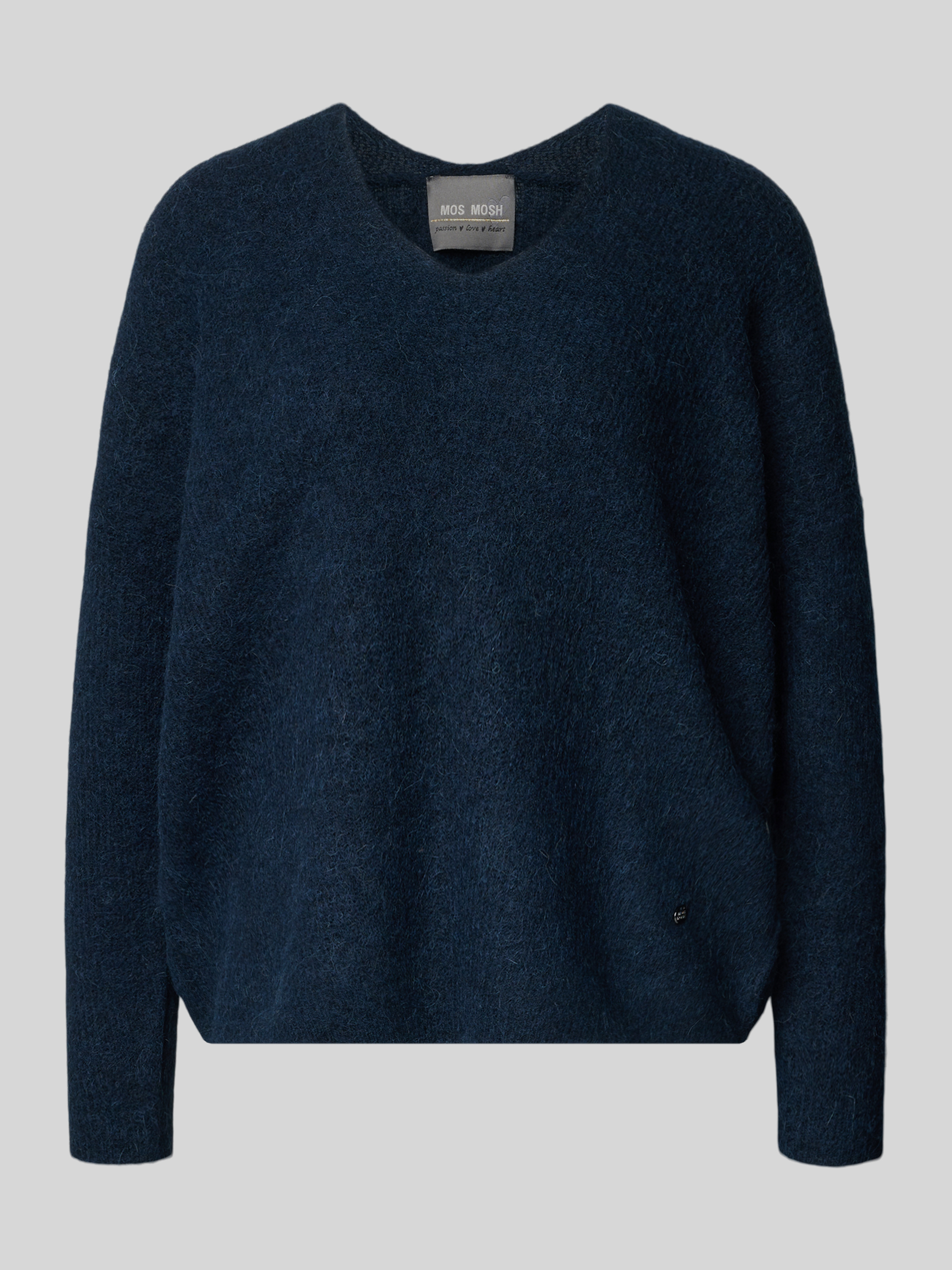 MOS MOSHOversized gebreide pullover met ribboorden, model 'THORA' in donkerblauw