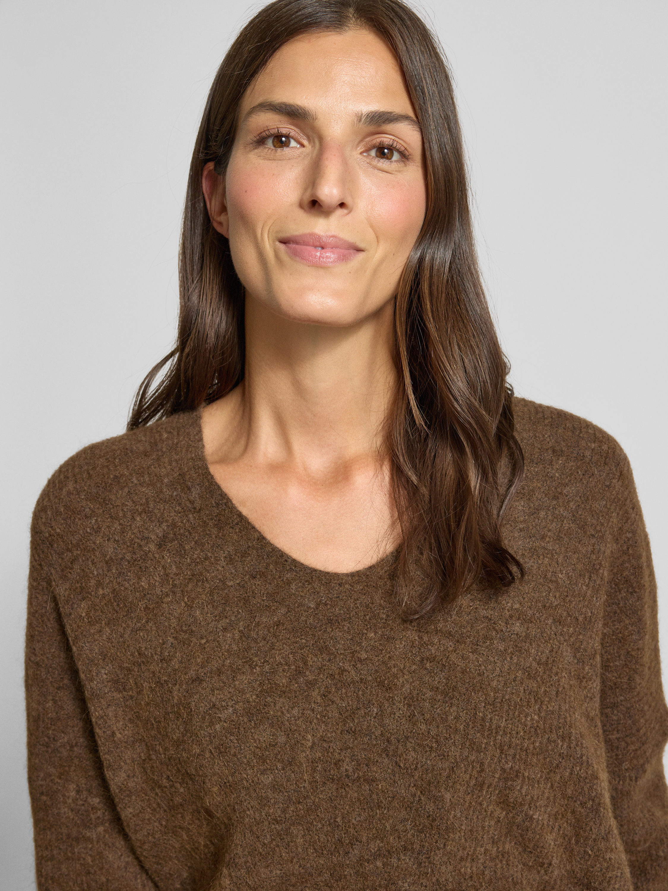 MOS MOSHOversized gebreide pullover met ribboorden, model 'THORA' in middenbruin