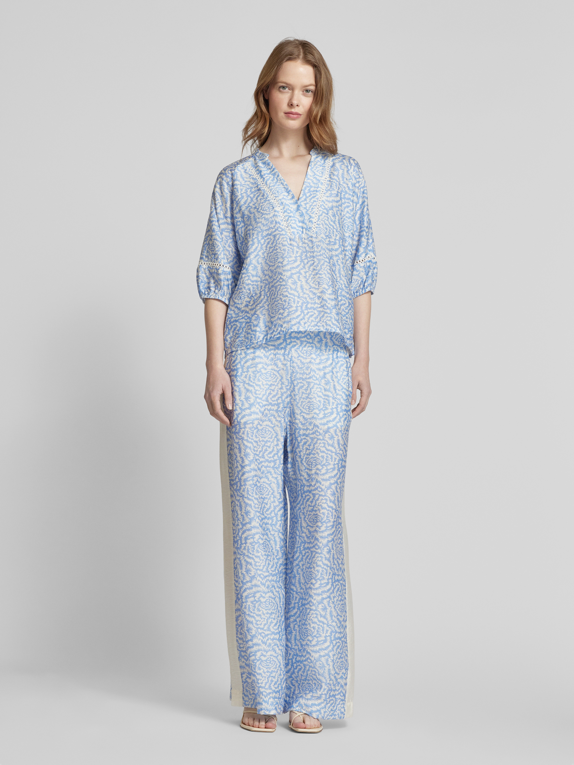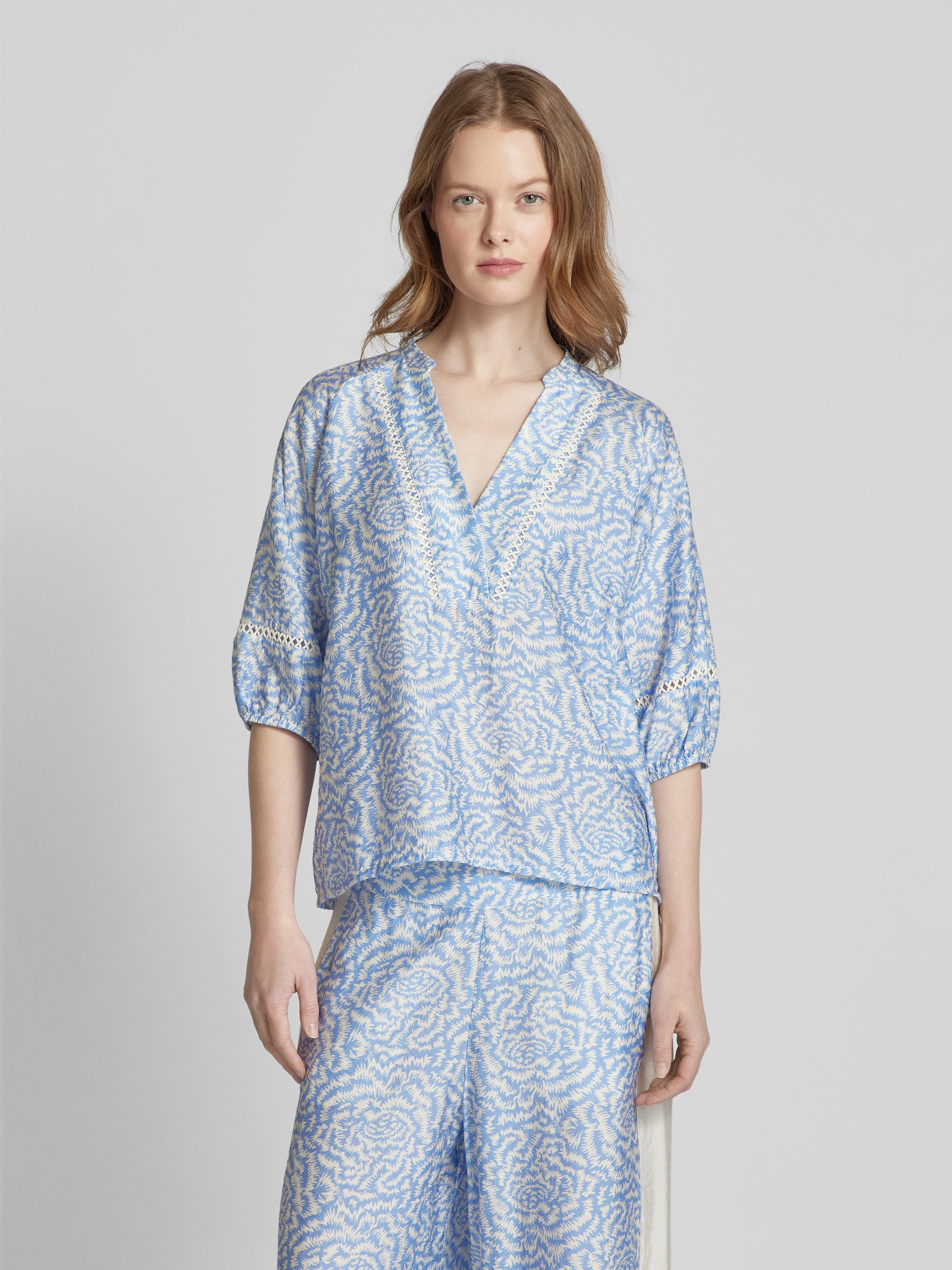 MOS MOSHRegular fit blouse met V-hals, model 'ALEYNA SAKU' in lichtblauw