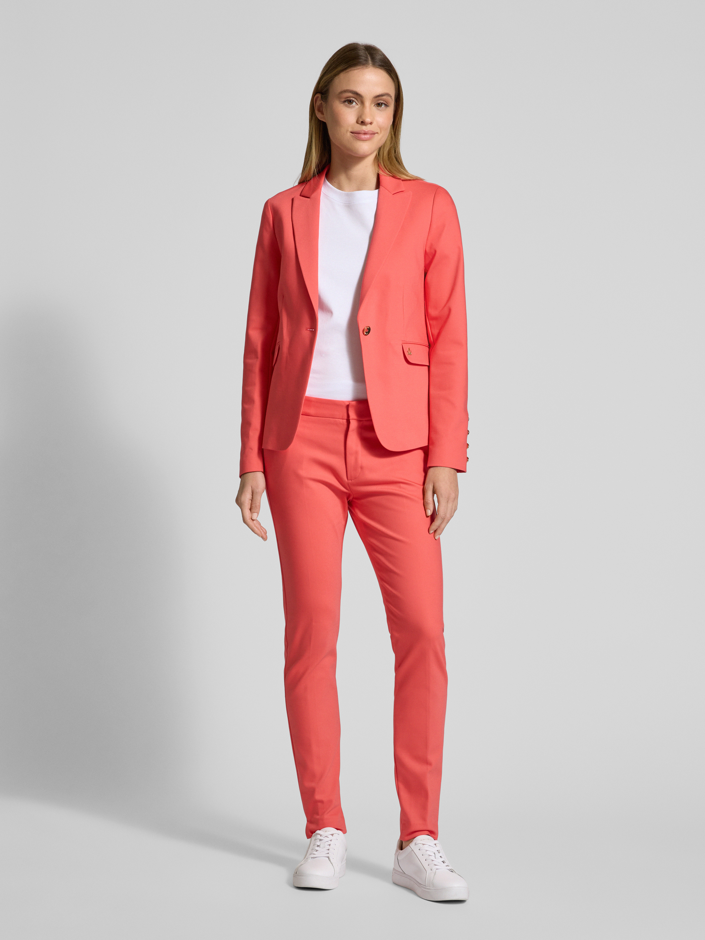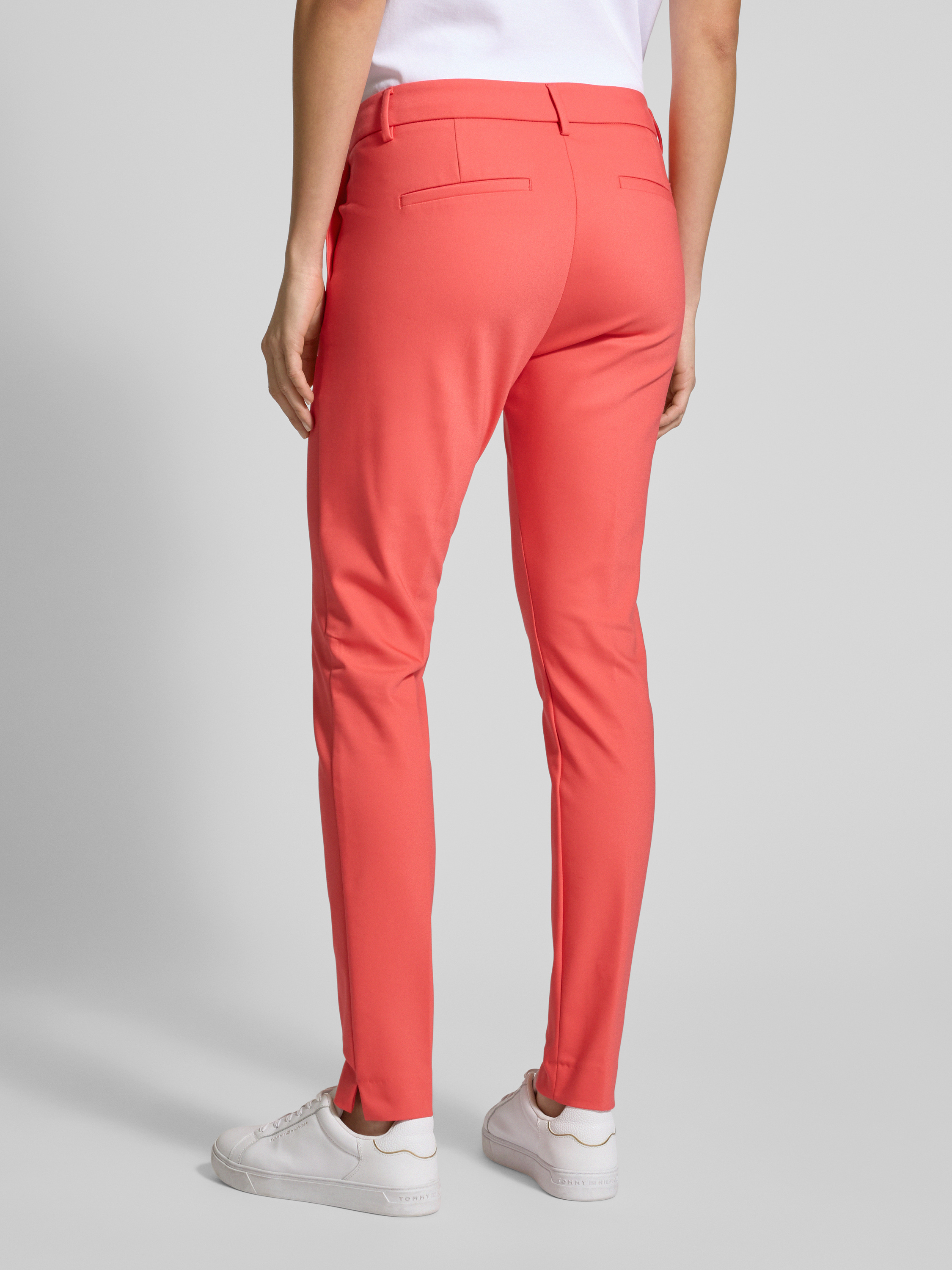 MOS MOSHSlim fit stoffen broek met riemlussen, model 'Abbey Night' in koraal