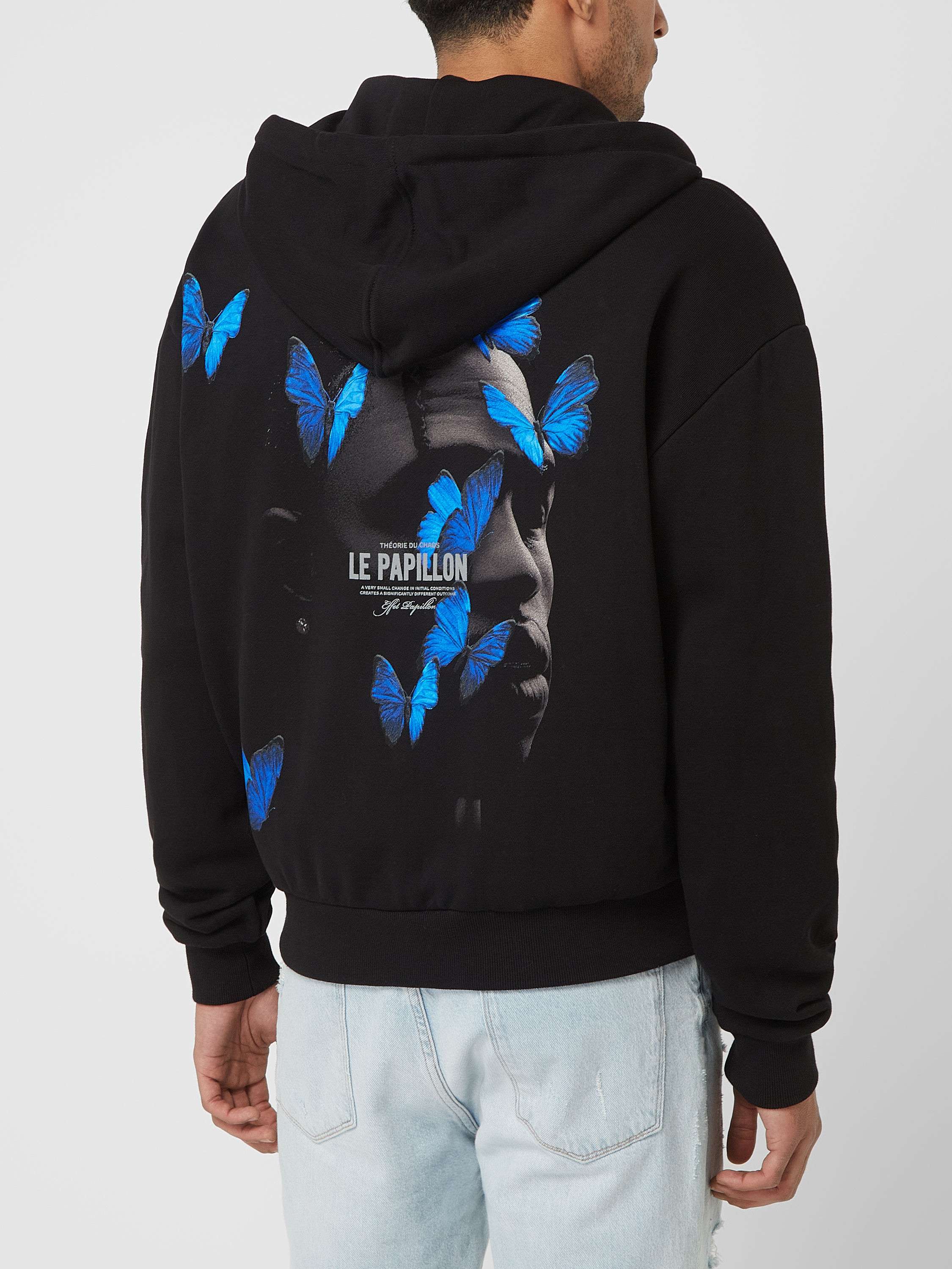 Sweatjack met capuchon, model 'Le Papillon' in zwart