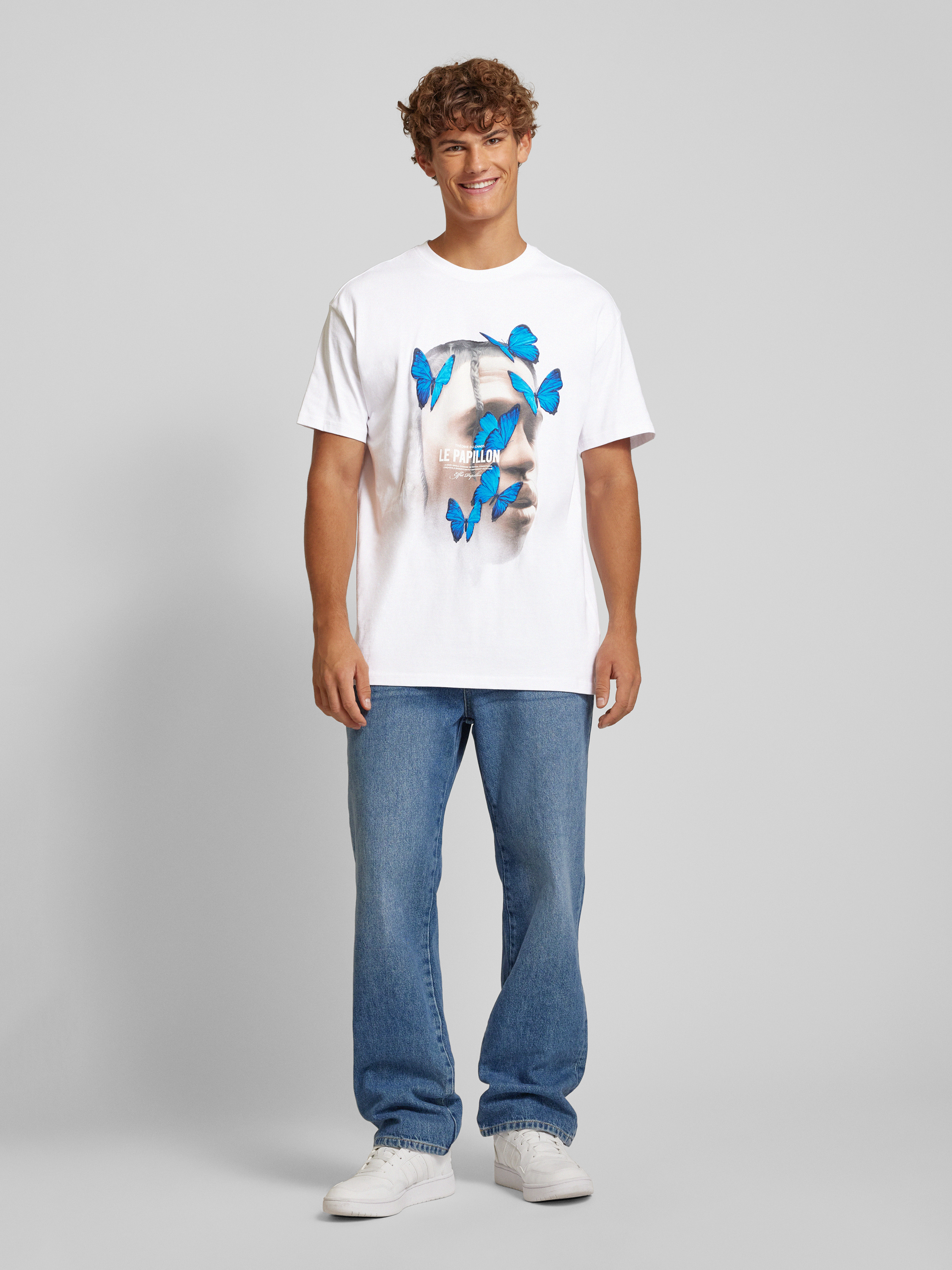 T-shirt met motiefprint, model 'LE PAPILLON' in wit