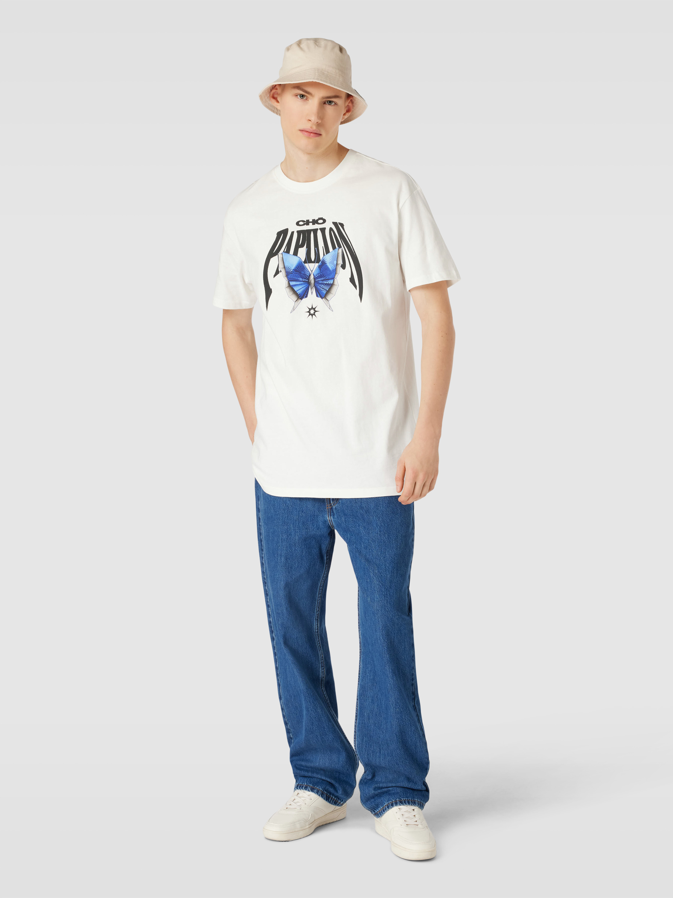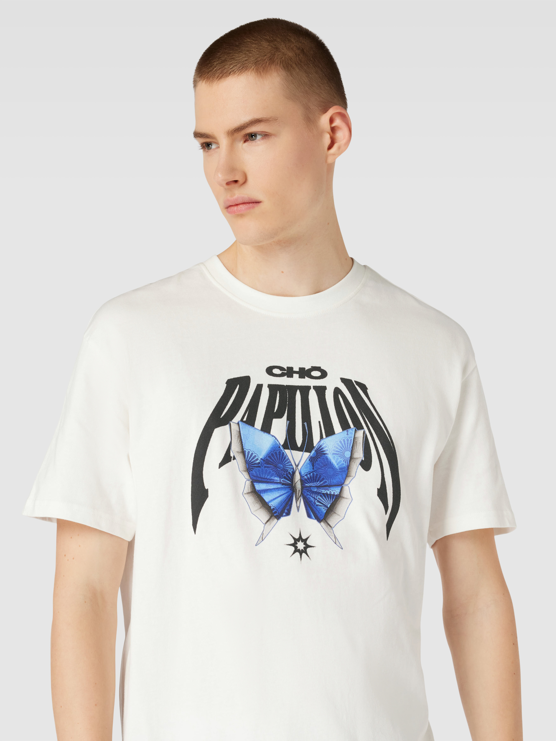 T-shirt met motiefprint, model 'ORIGAMI' in offwhite