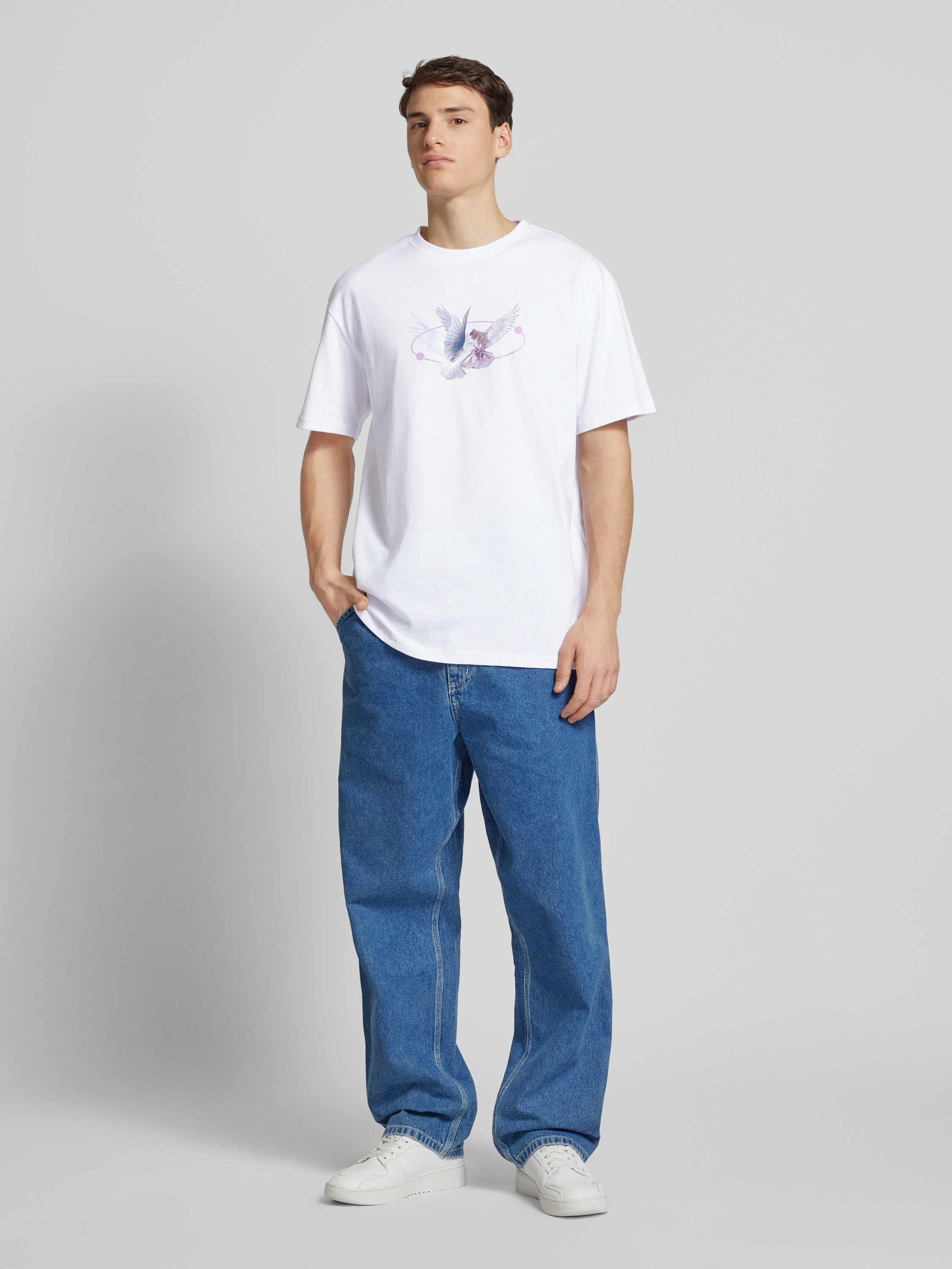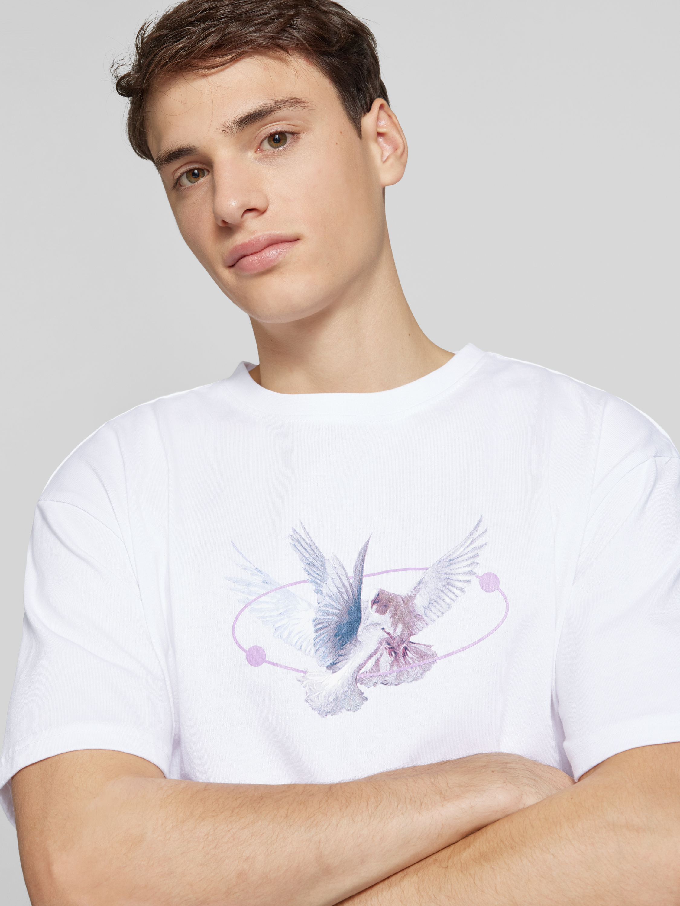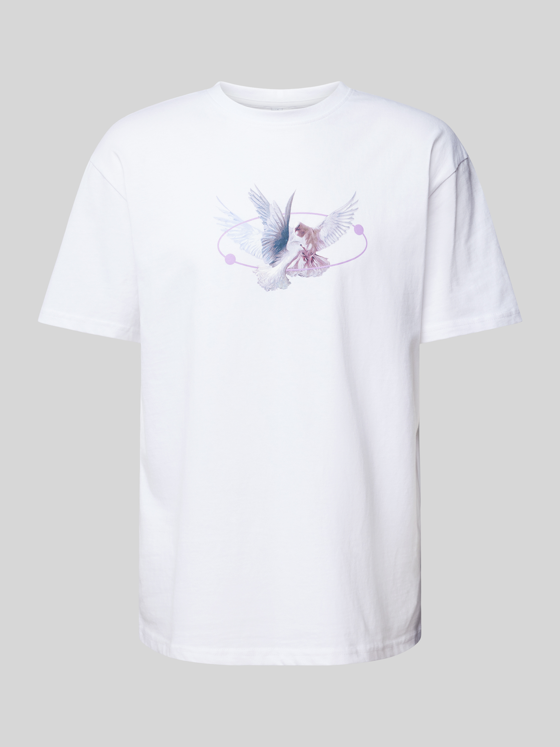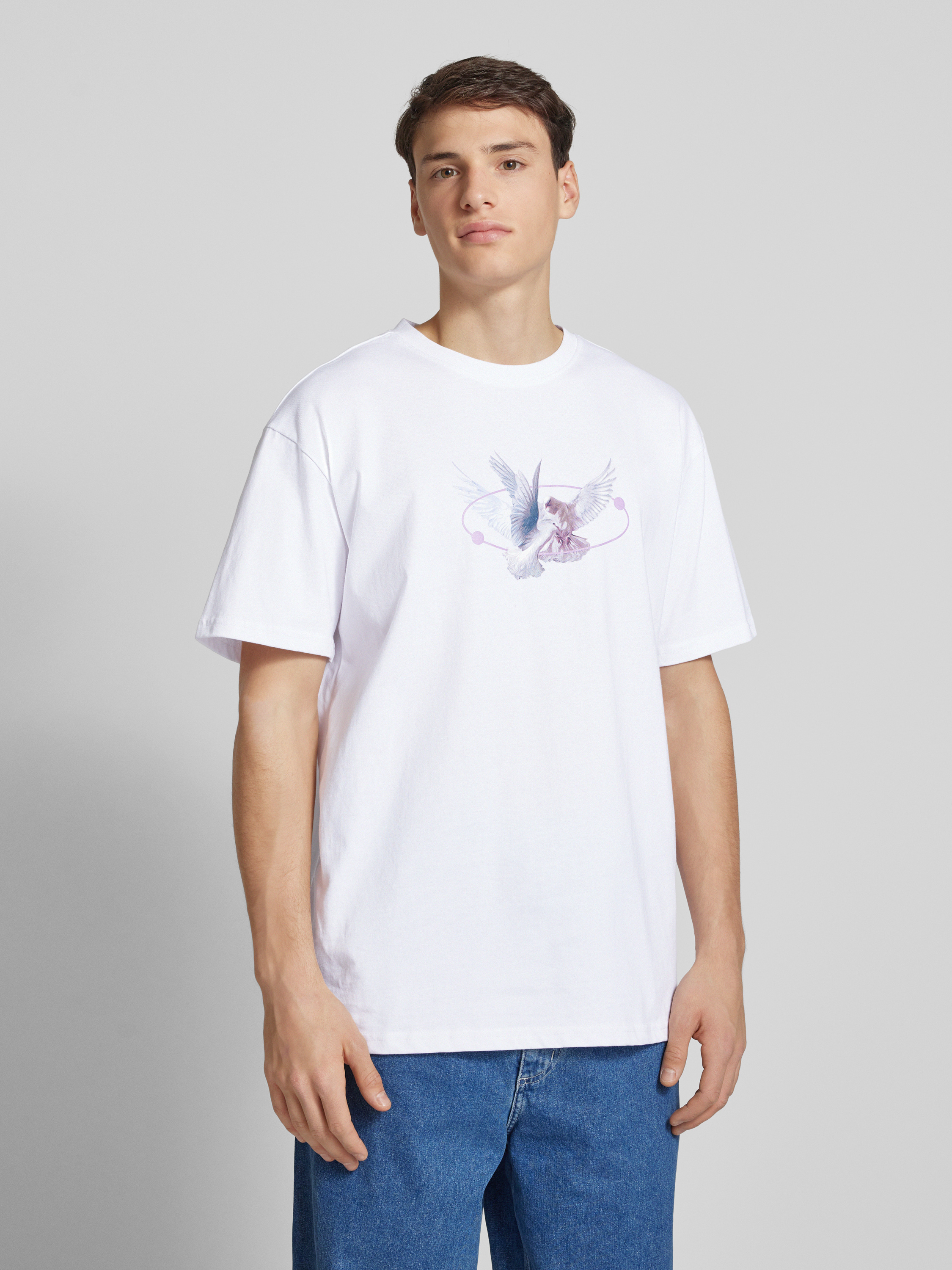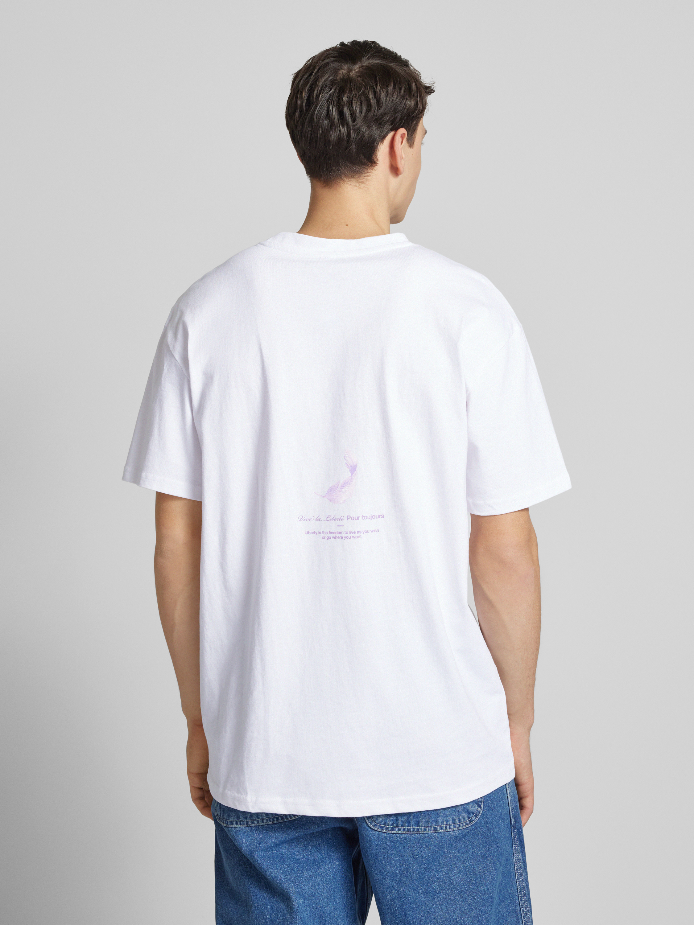 T-shirt met motiefprint, model 'VIVE LE LIBERTÉ' in wit