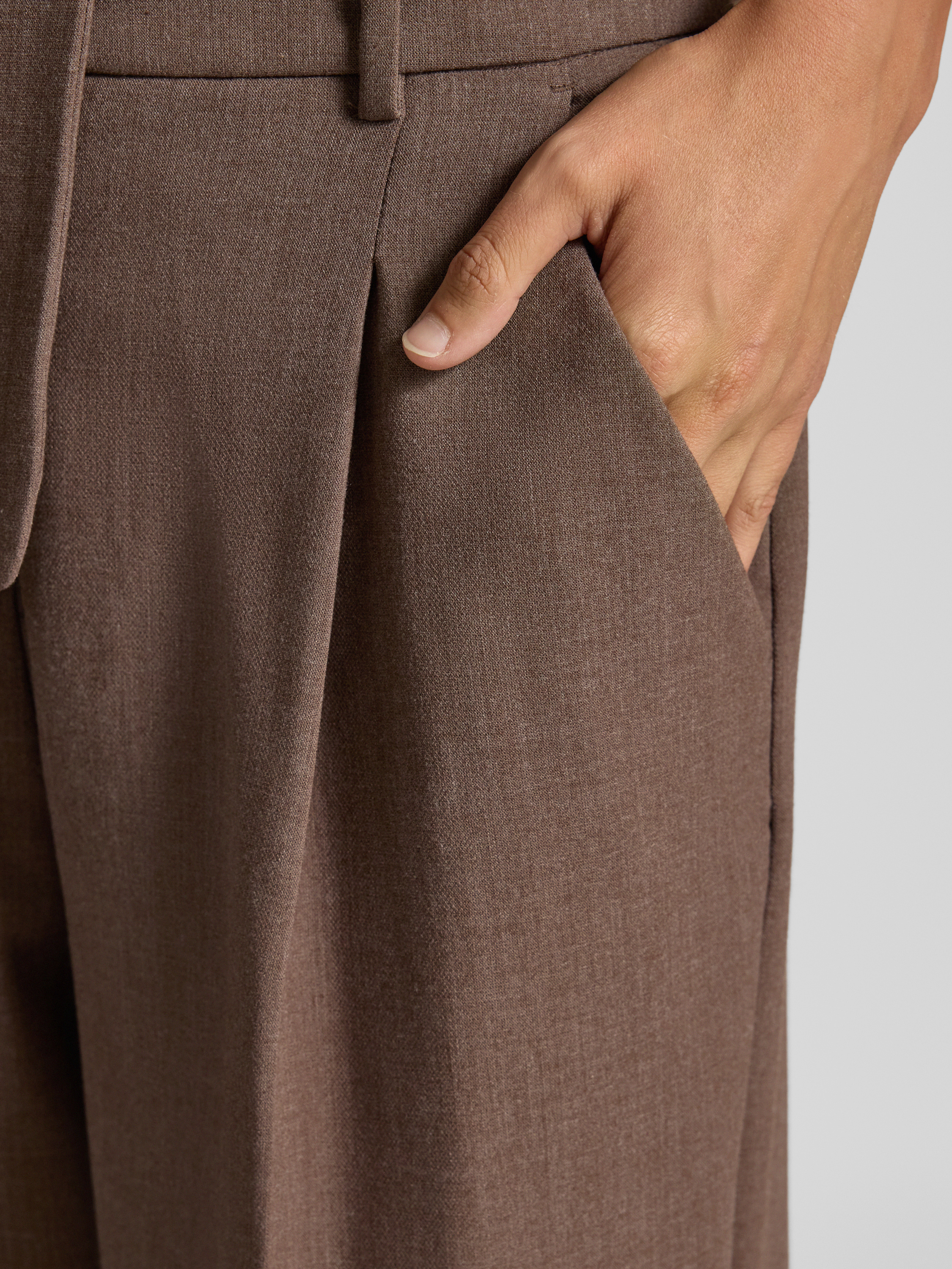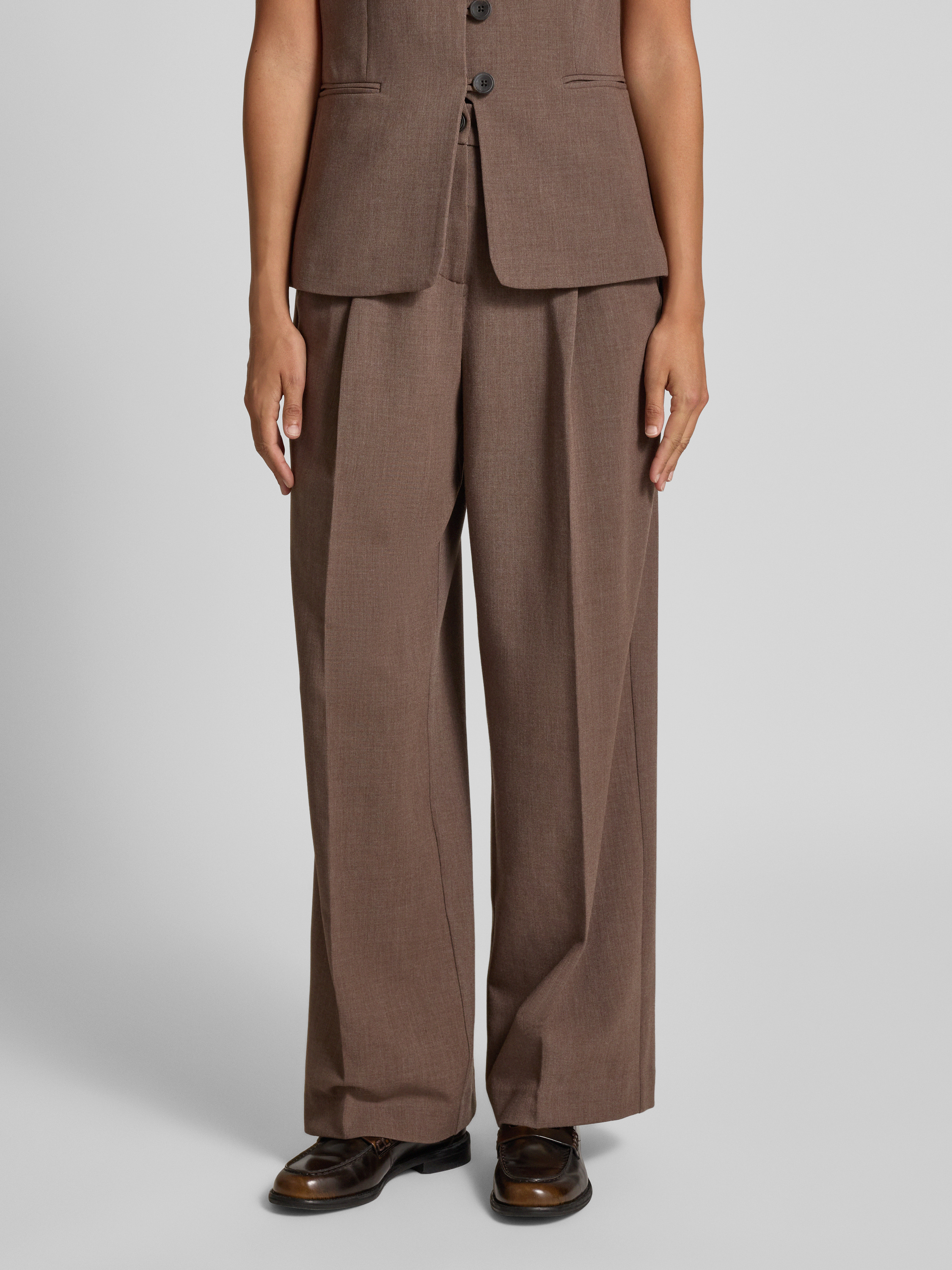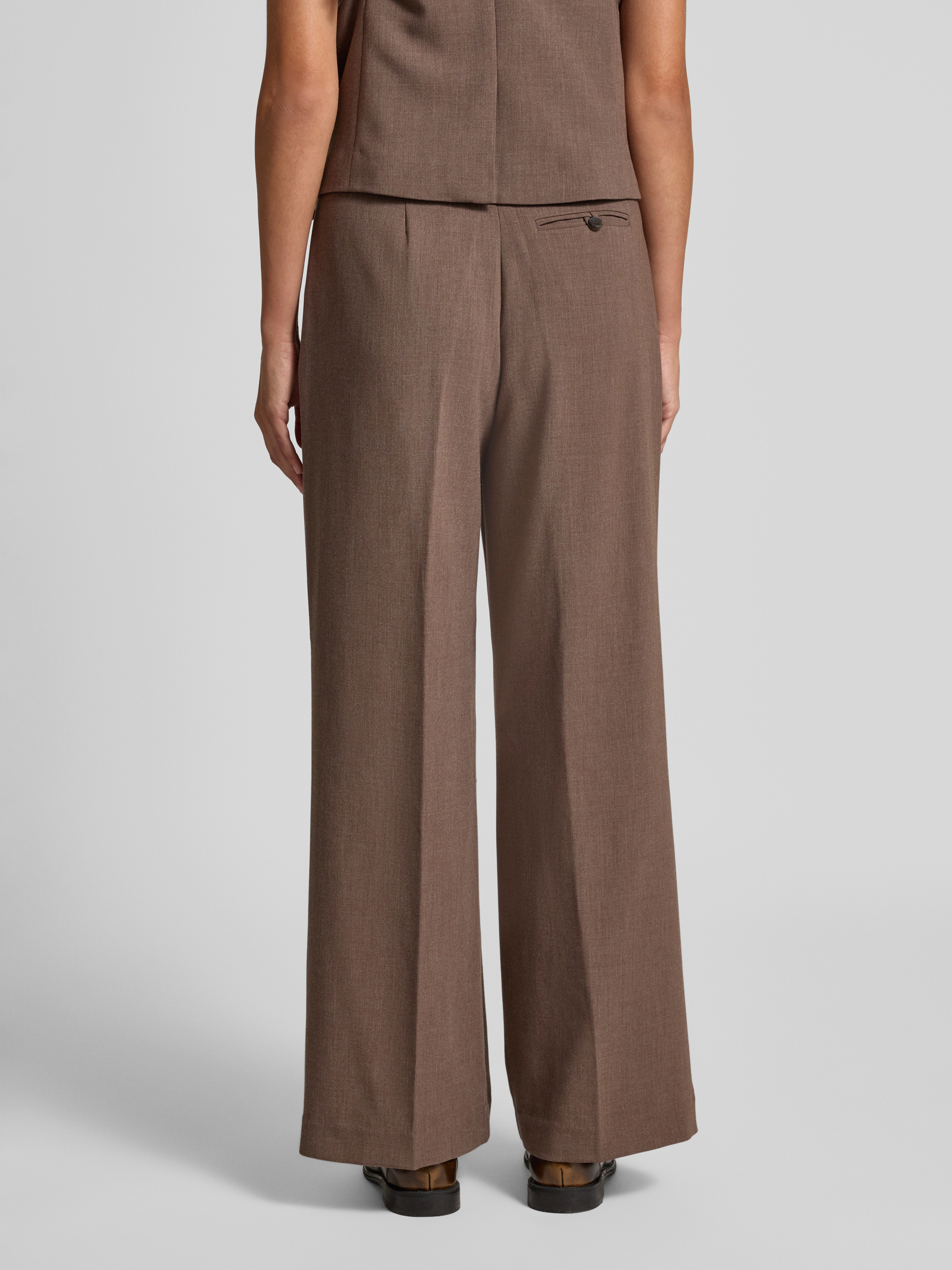 MSCH CopenhagenHigh waist stoffen broek met wijde pijpen, model 'Rosina Michelle' in donkerbruin
