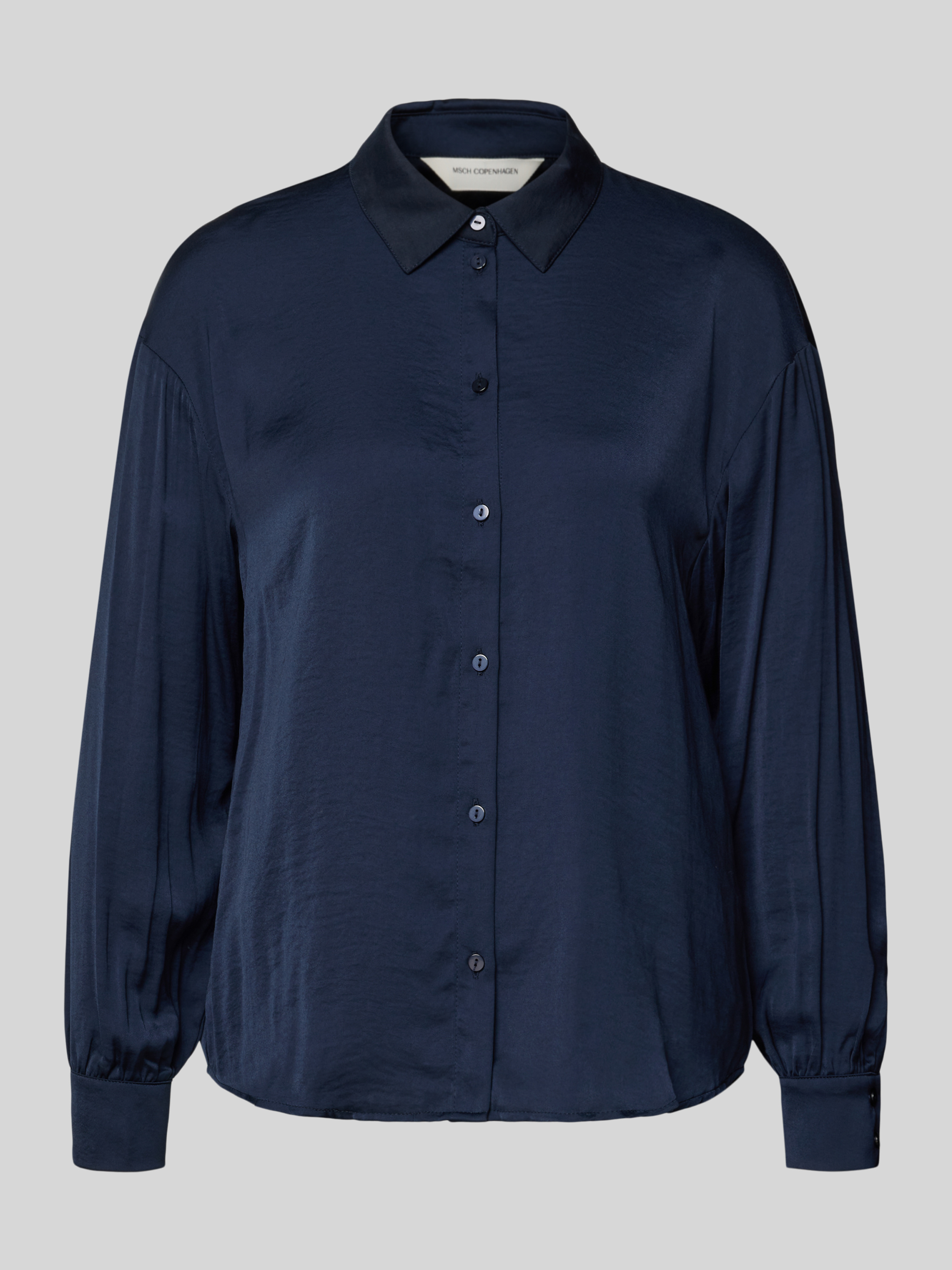 Regular fit overhemdblouse met viscose, model 'Sandelina' in marineblauw