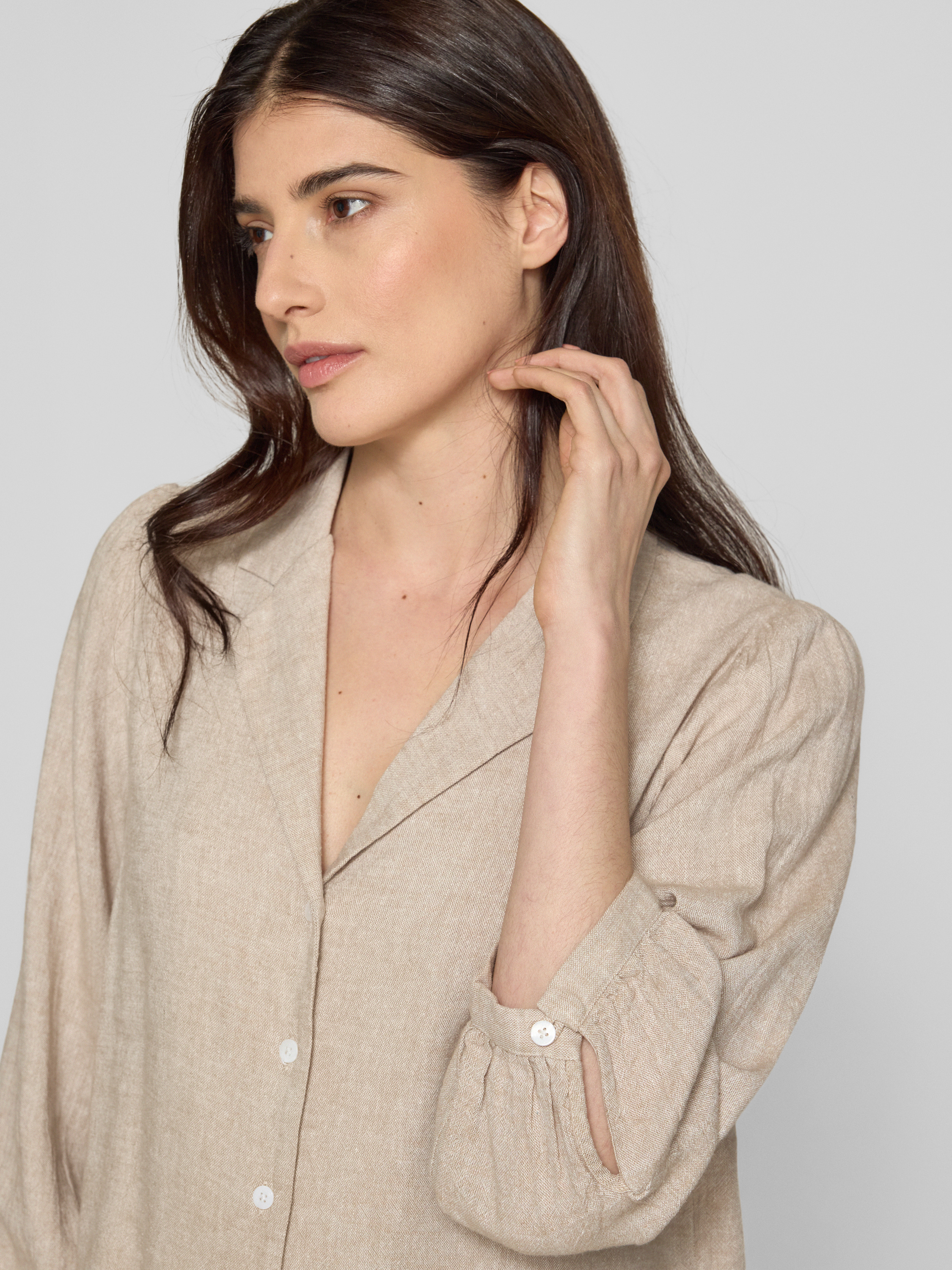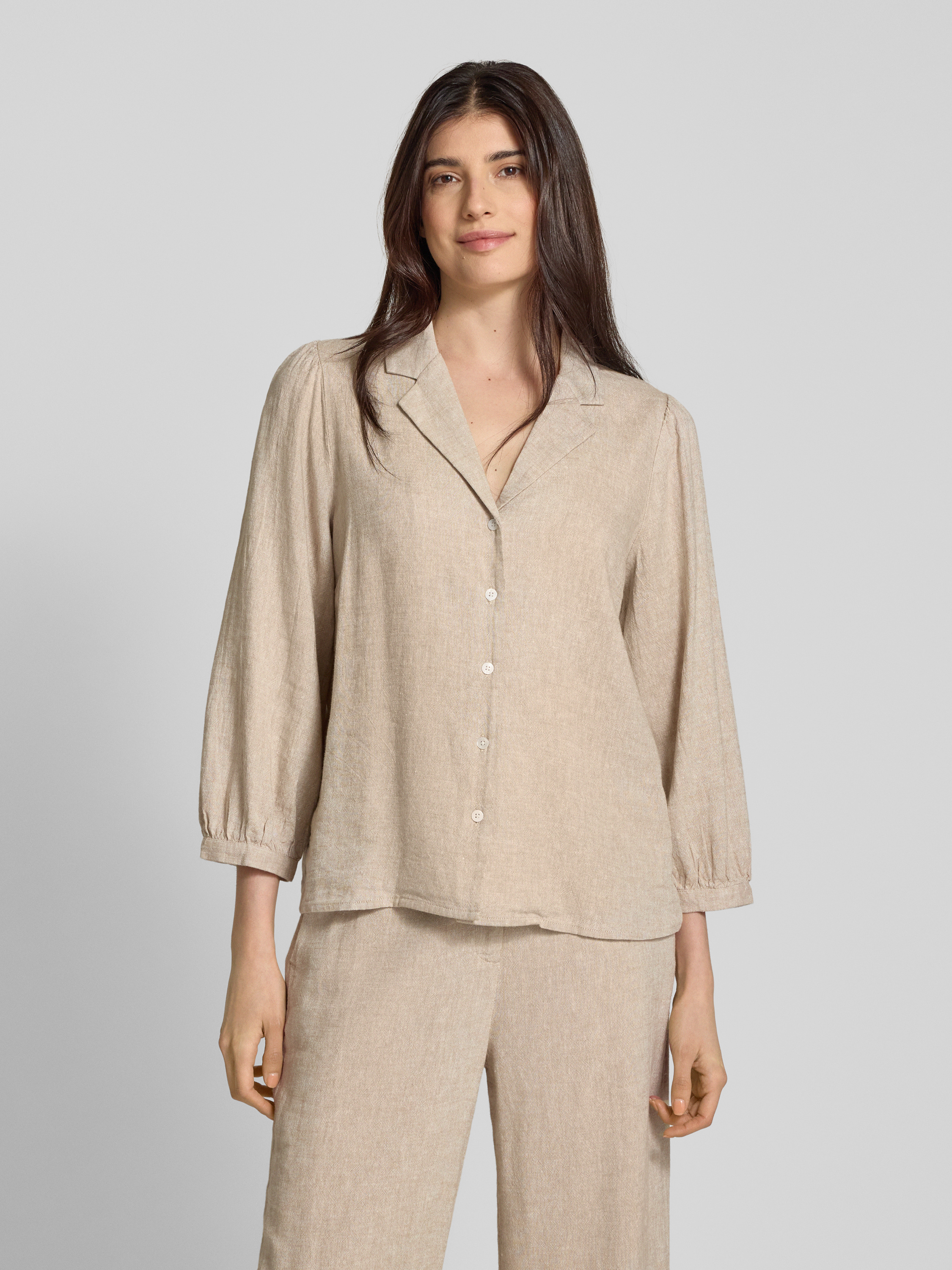 Relaxed fit linnen blouse met resortkraag, model 'Pennie Ginia' in beige