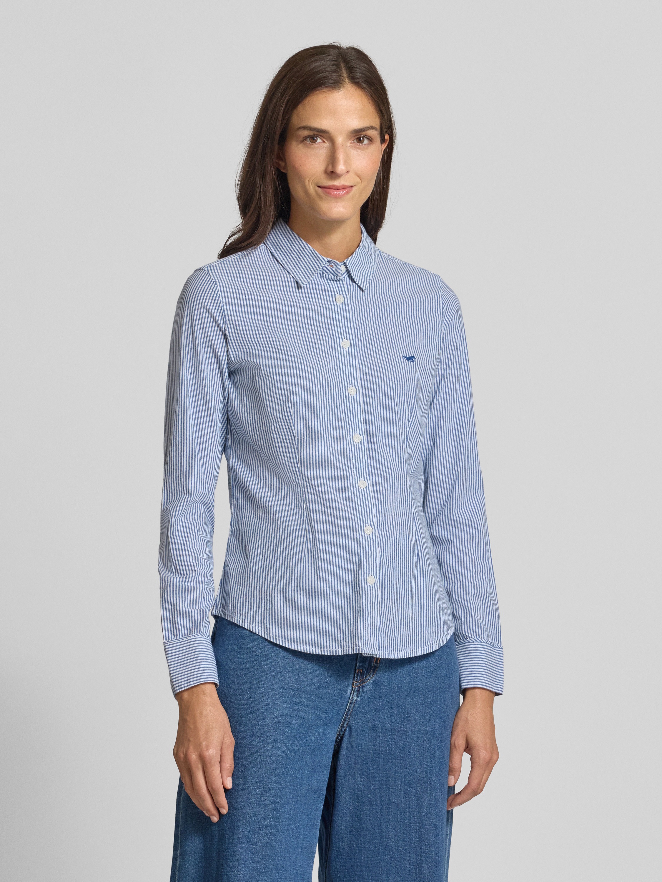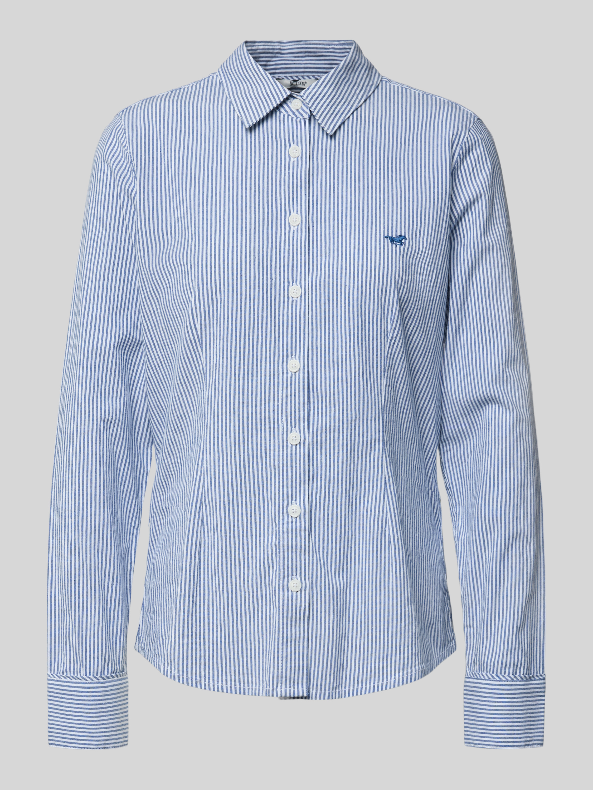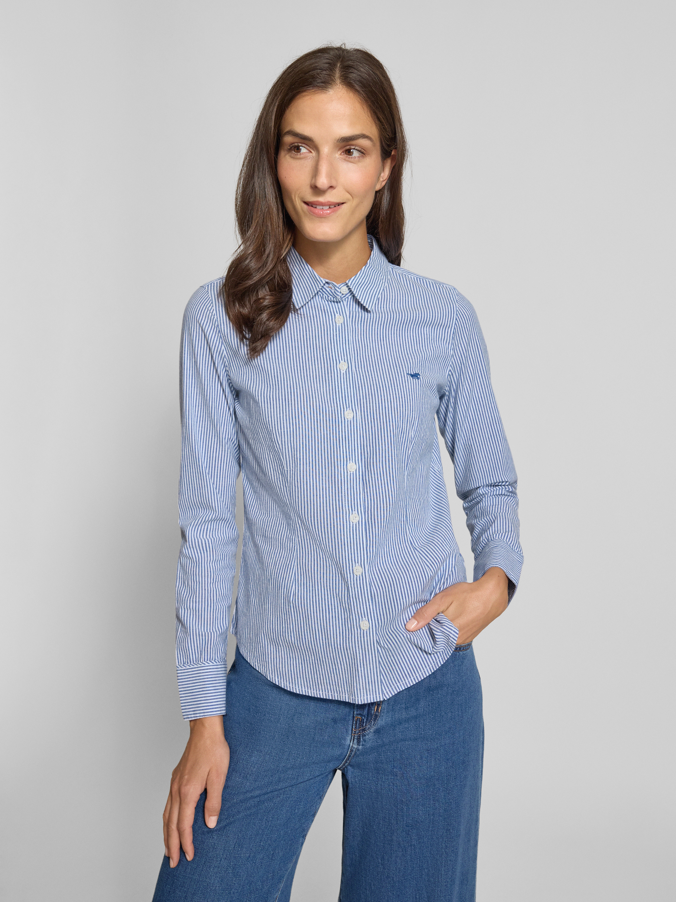 Overhemdblouse met logostitching en sportmanchetten in lichtblauw