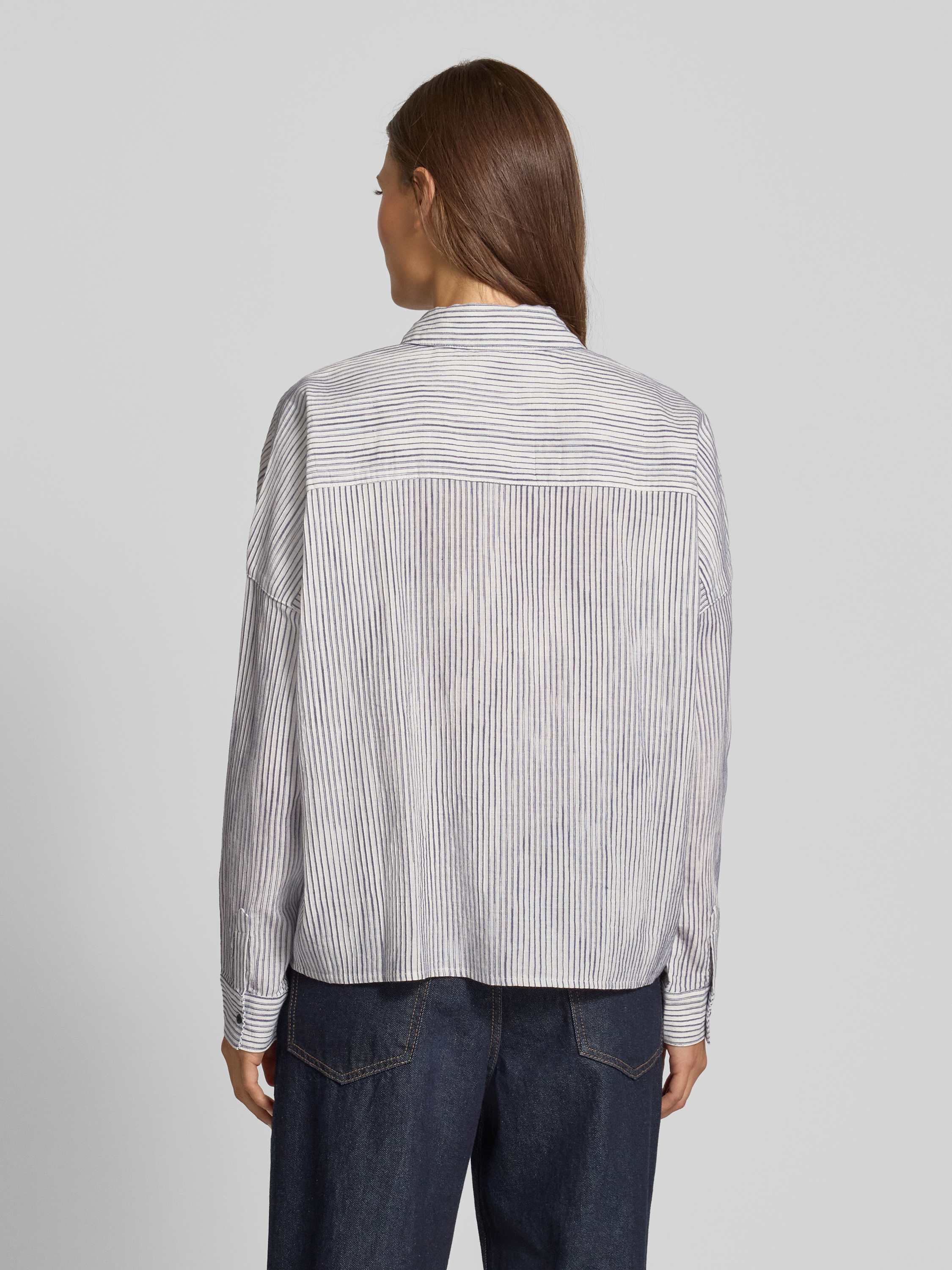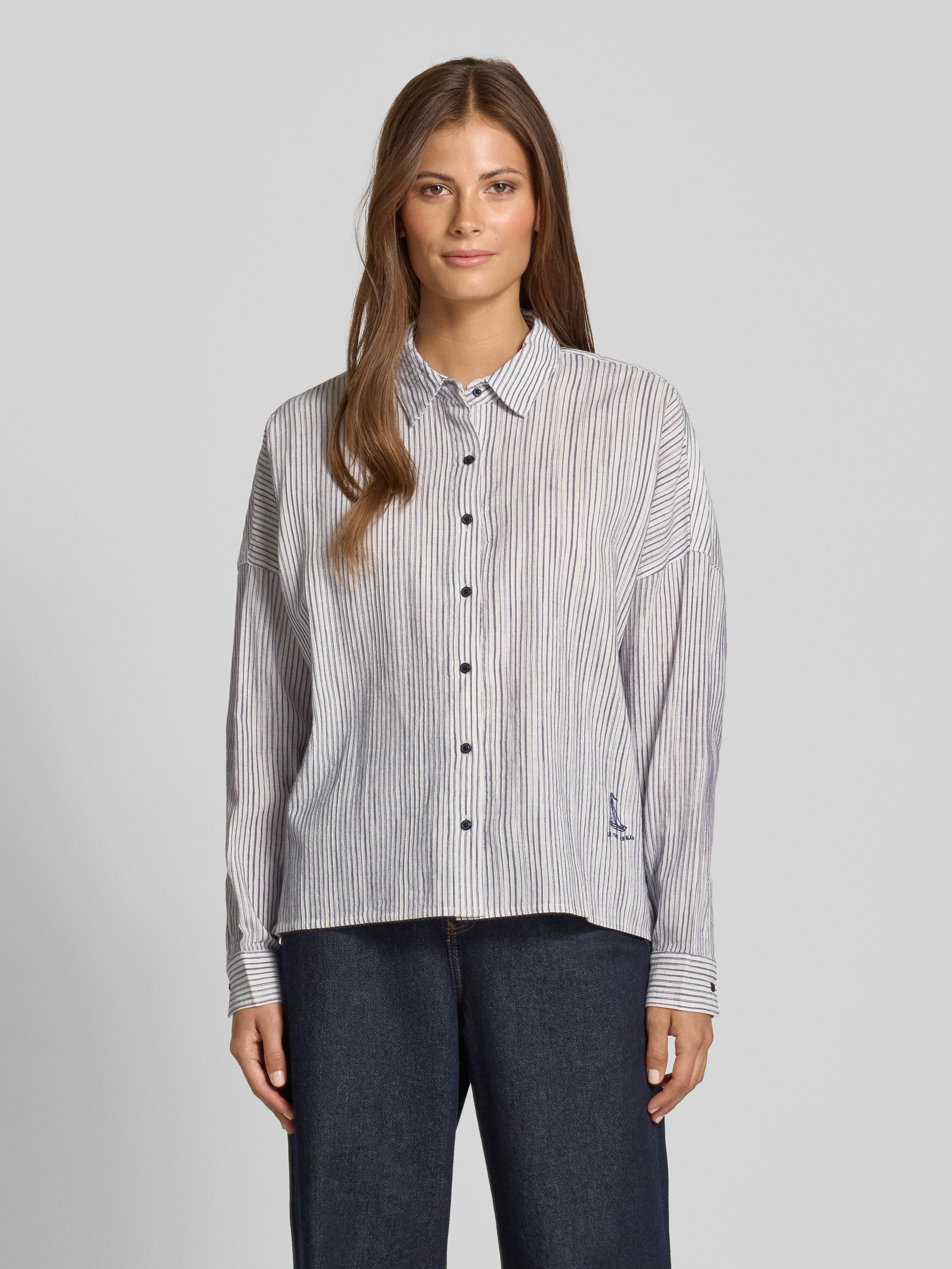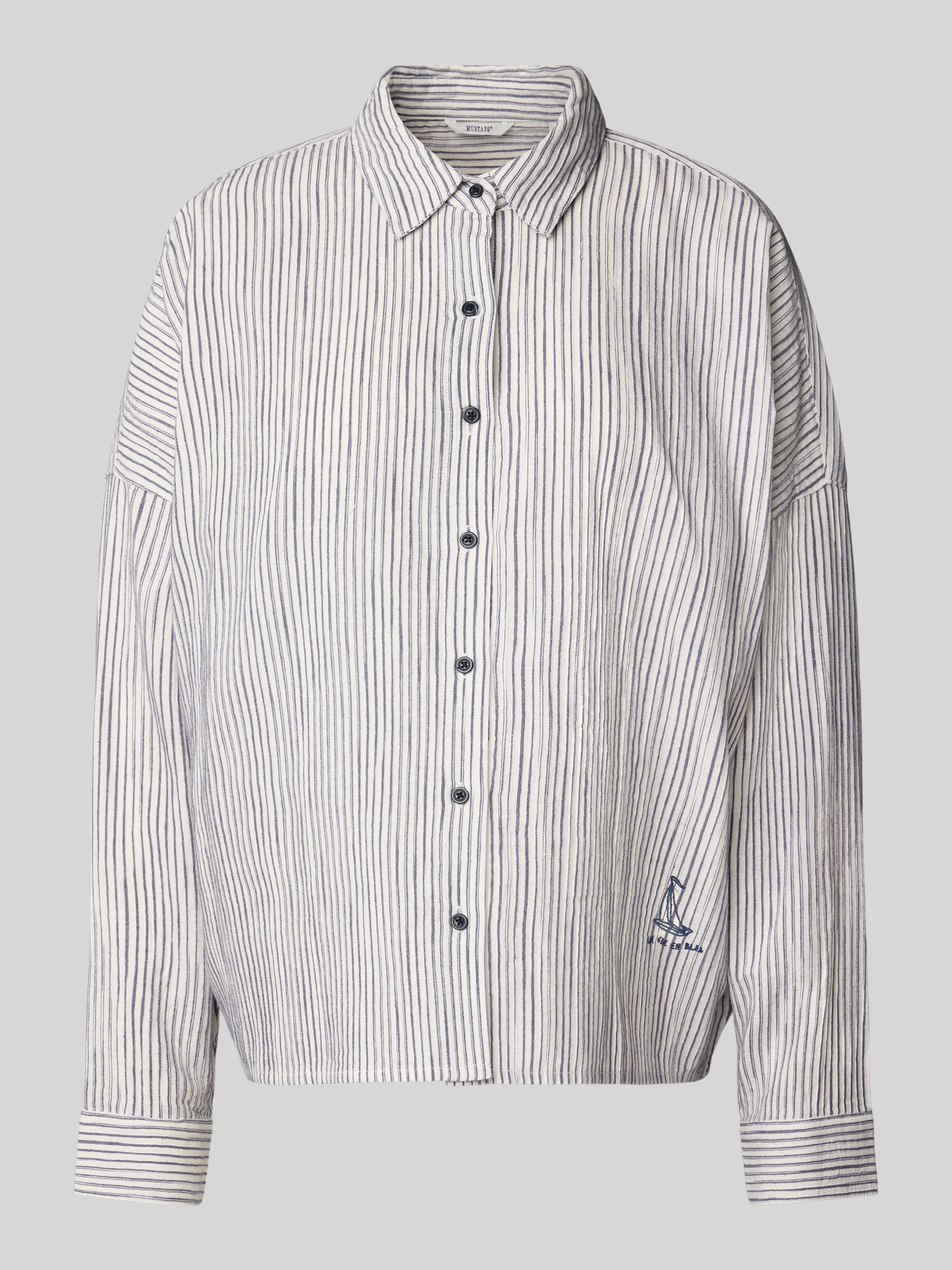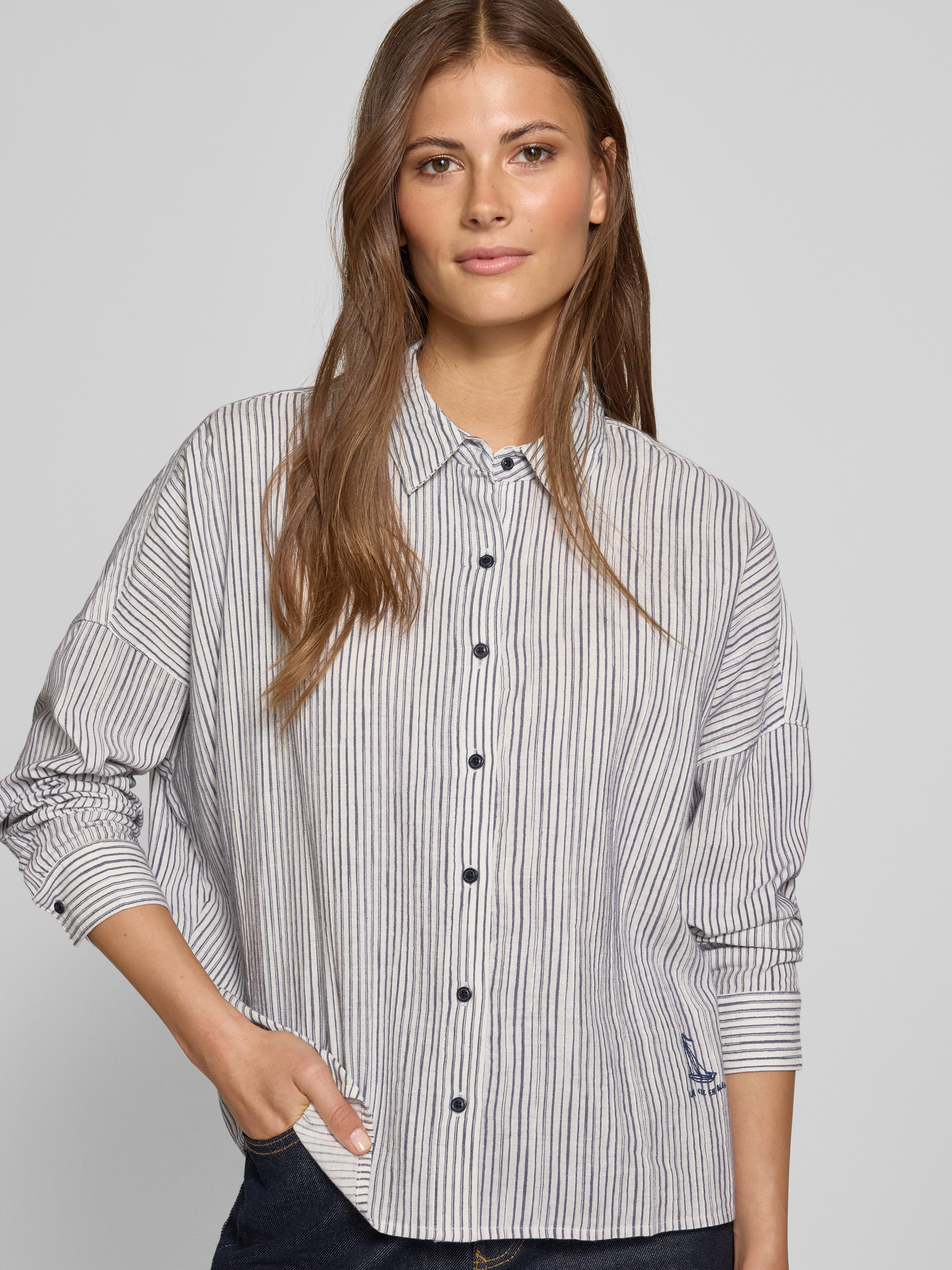 Oversized overhemdblouse met motiefstitching, model 'Ruby' in lichtblauw