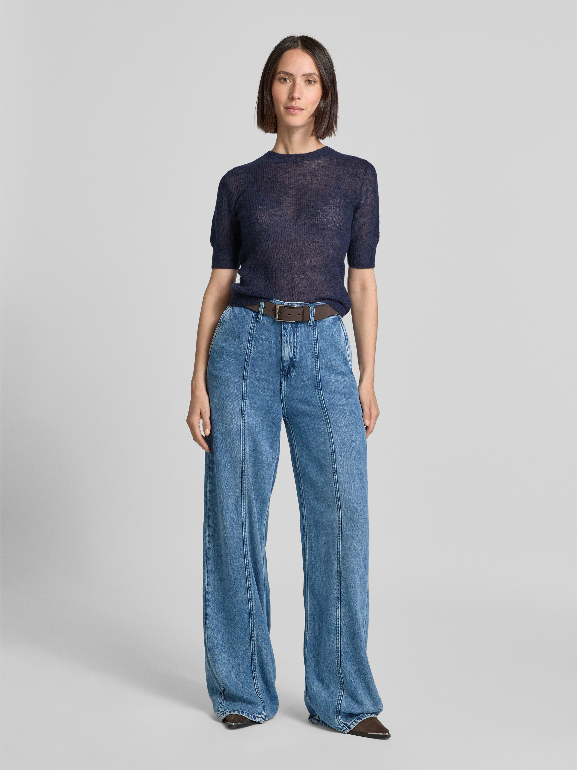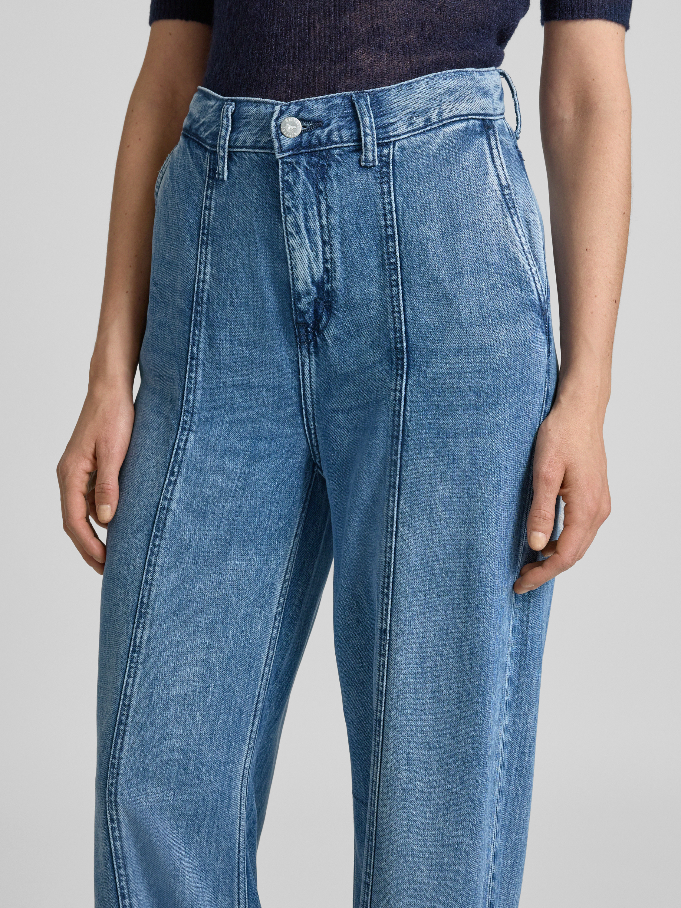 Wide leg jeans met siernaden, model 'Style Luise' in jeansblauw
