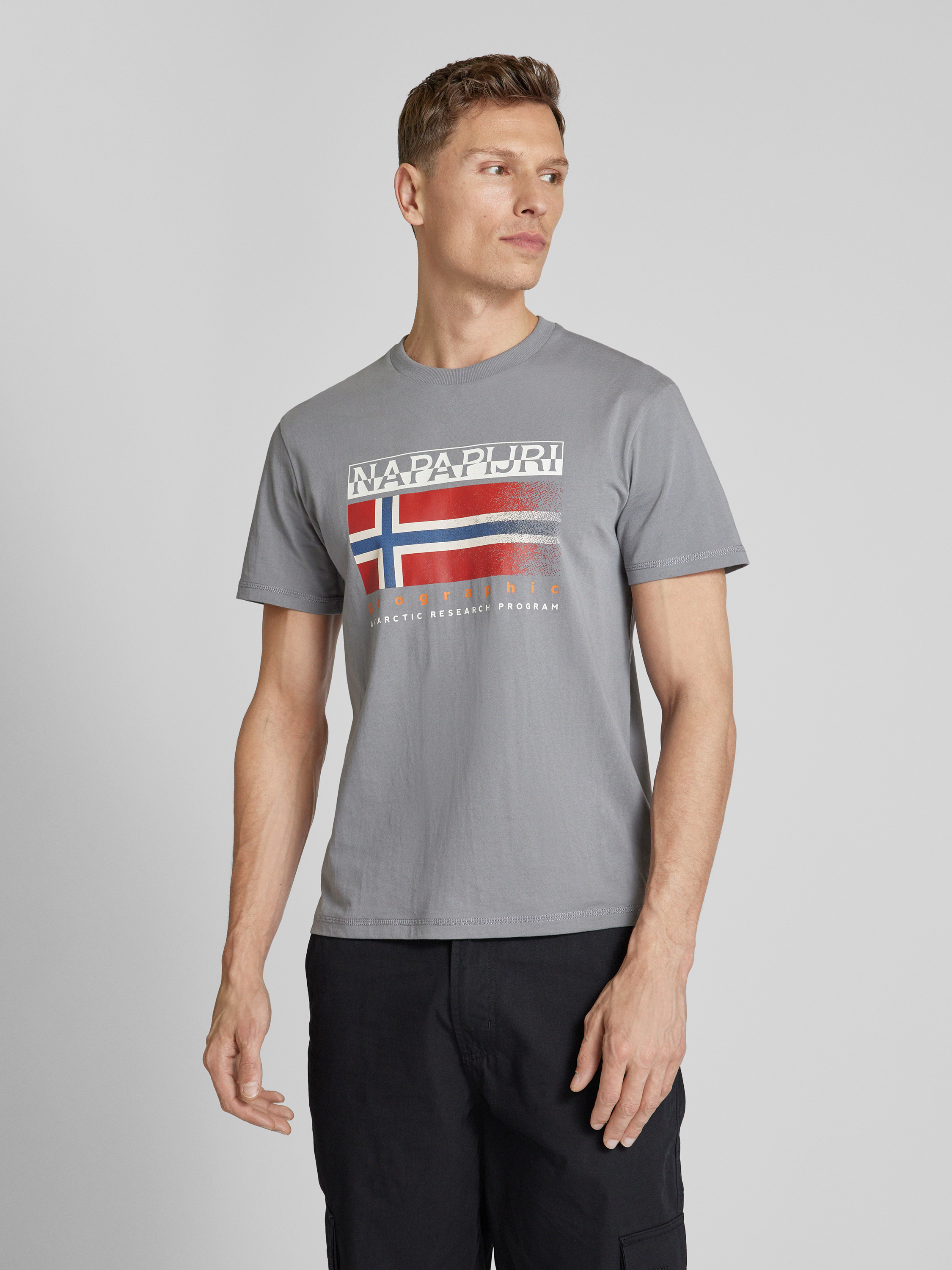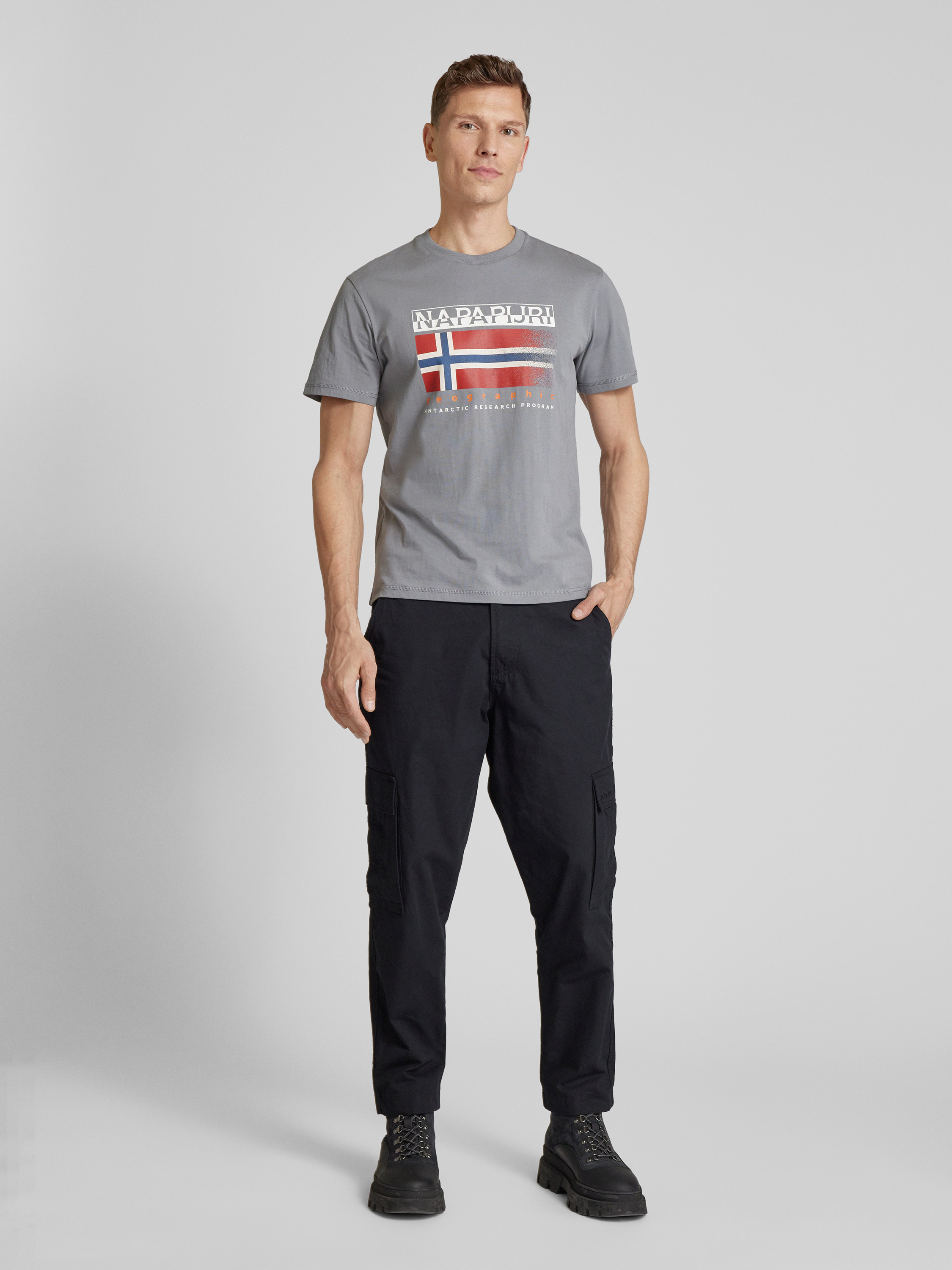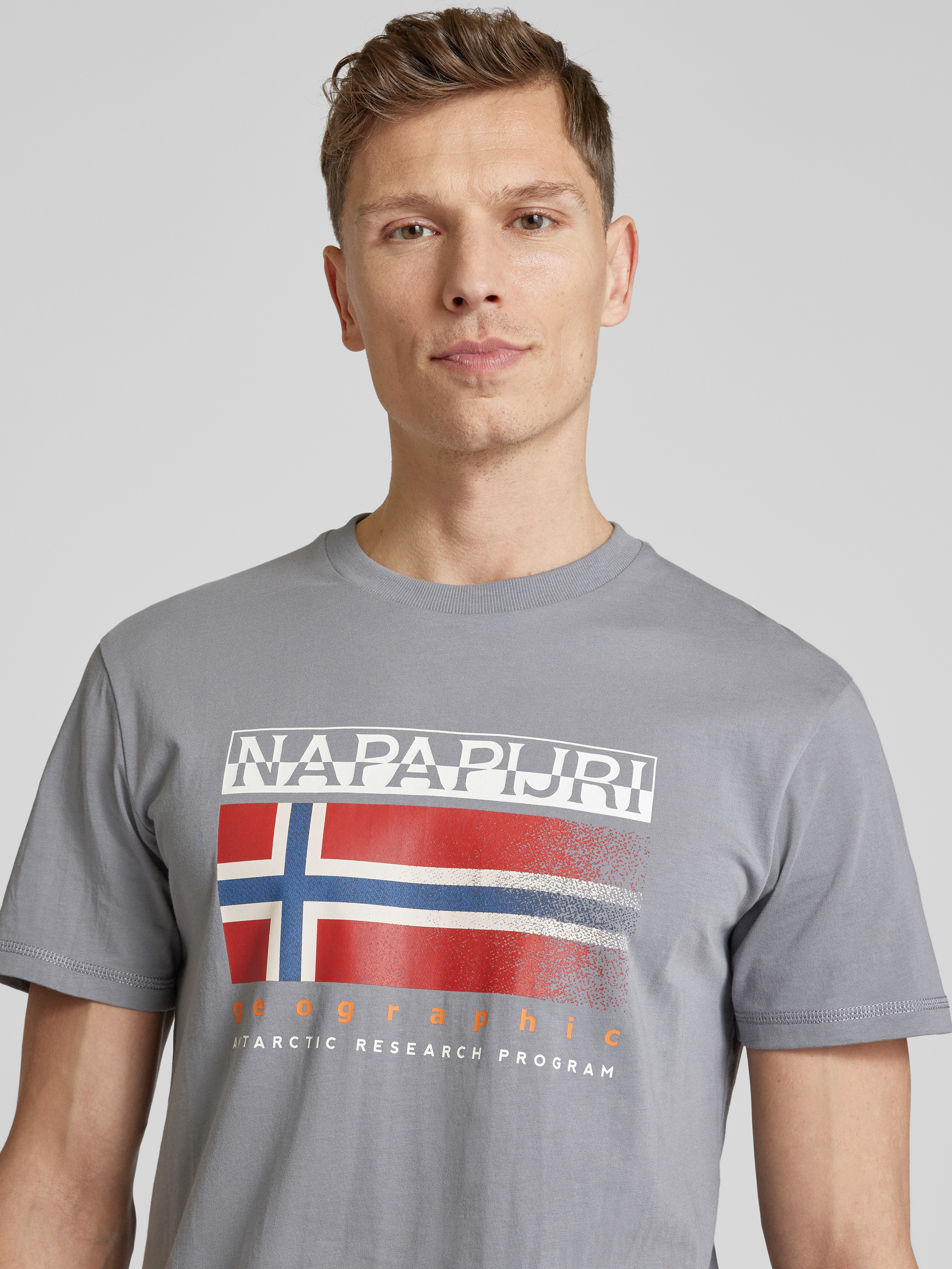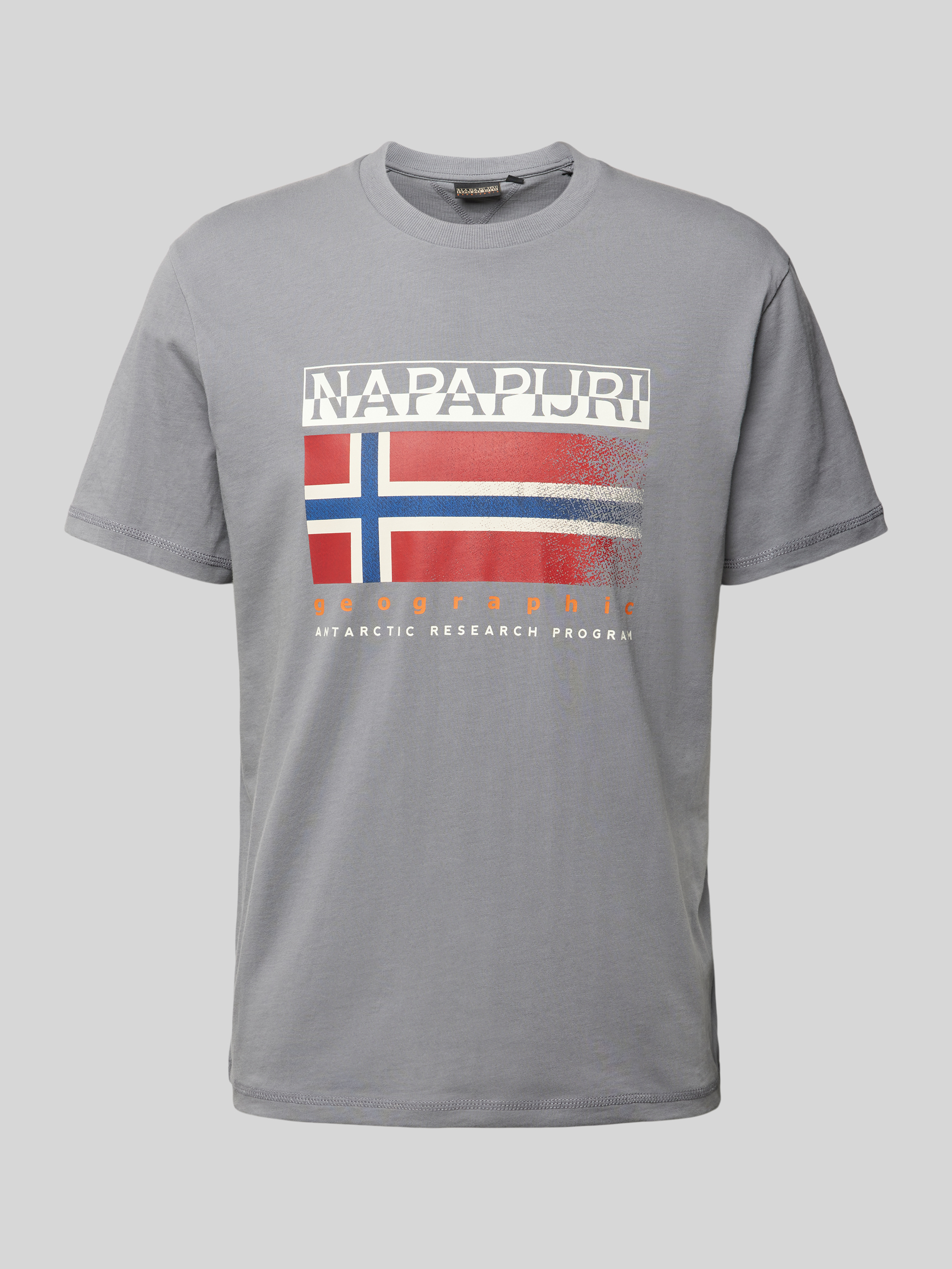 T-shirt met label- en statementprint, model 'S-KREIS' in middengrijs
