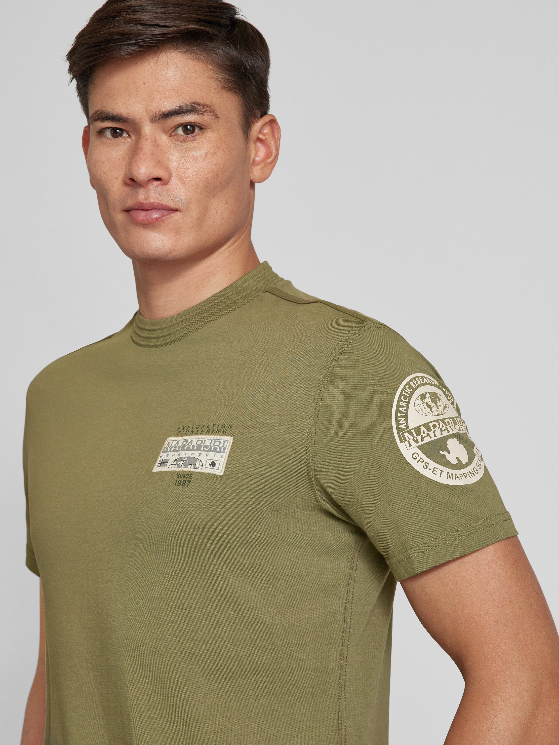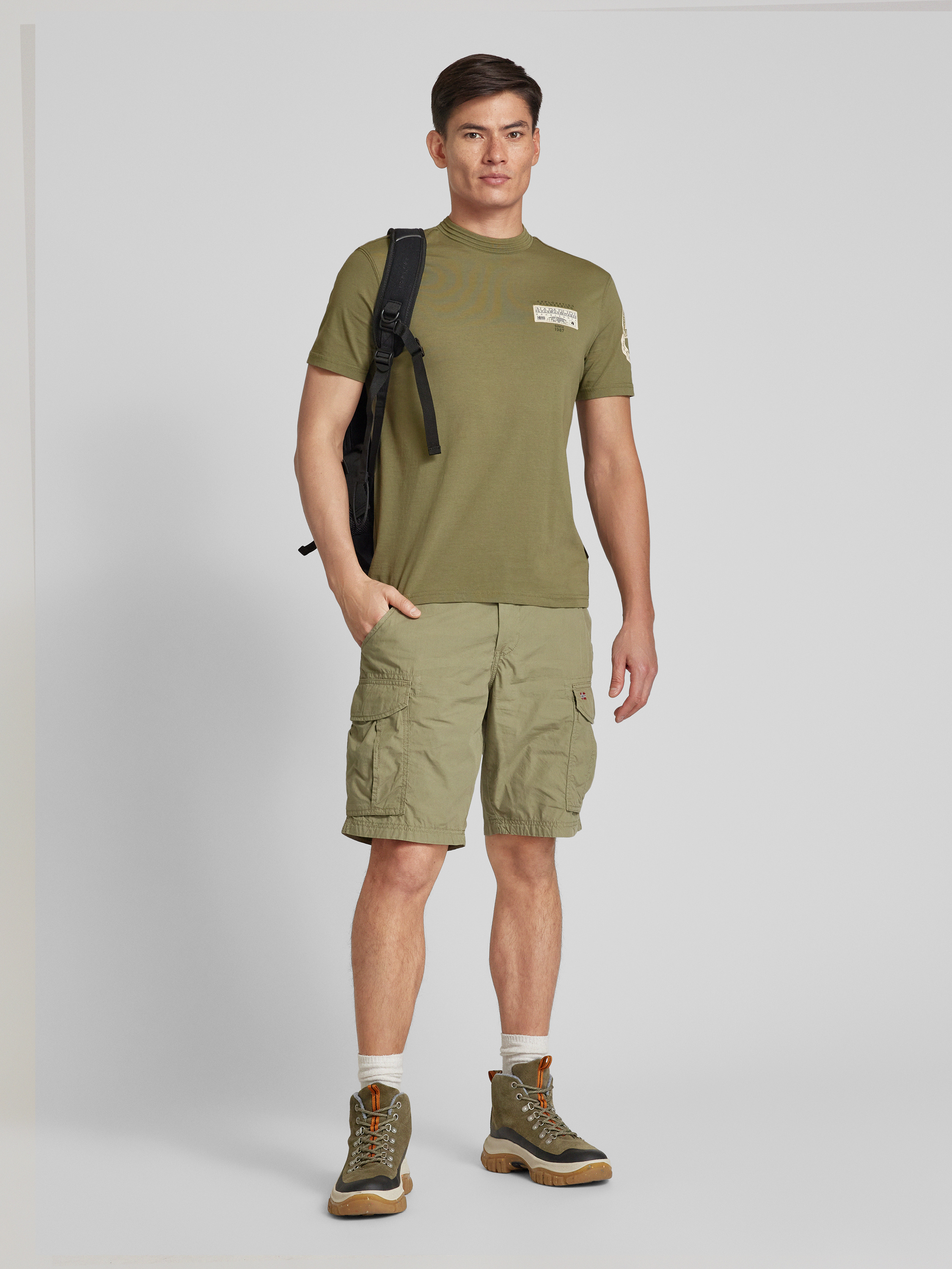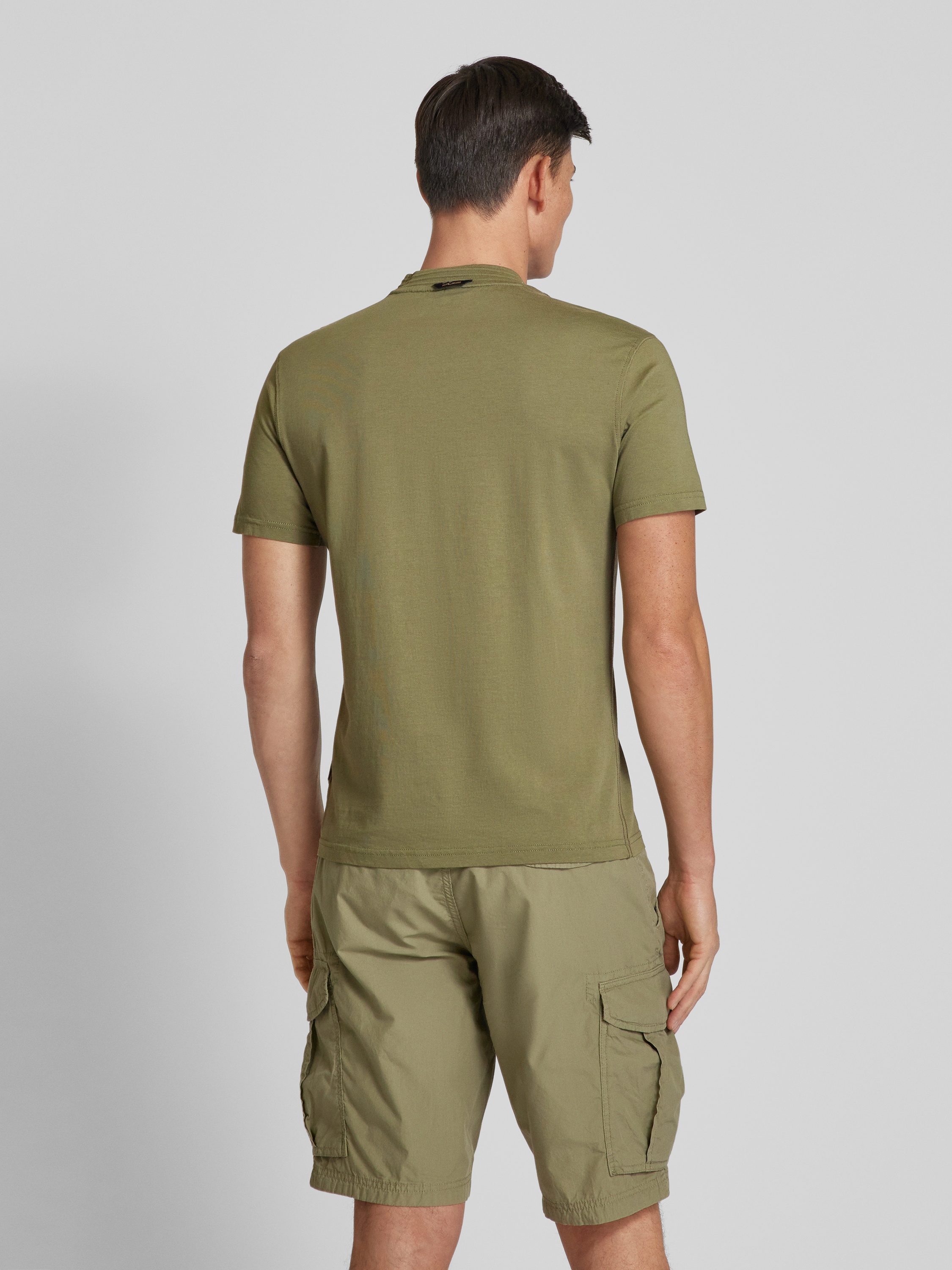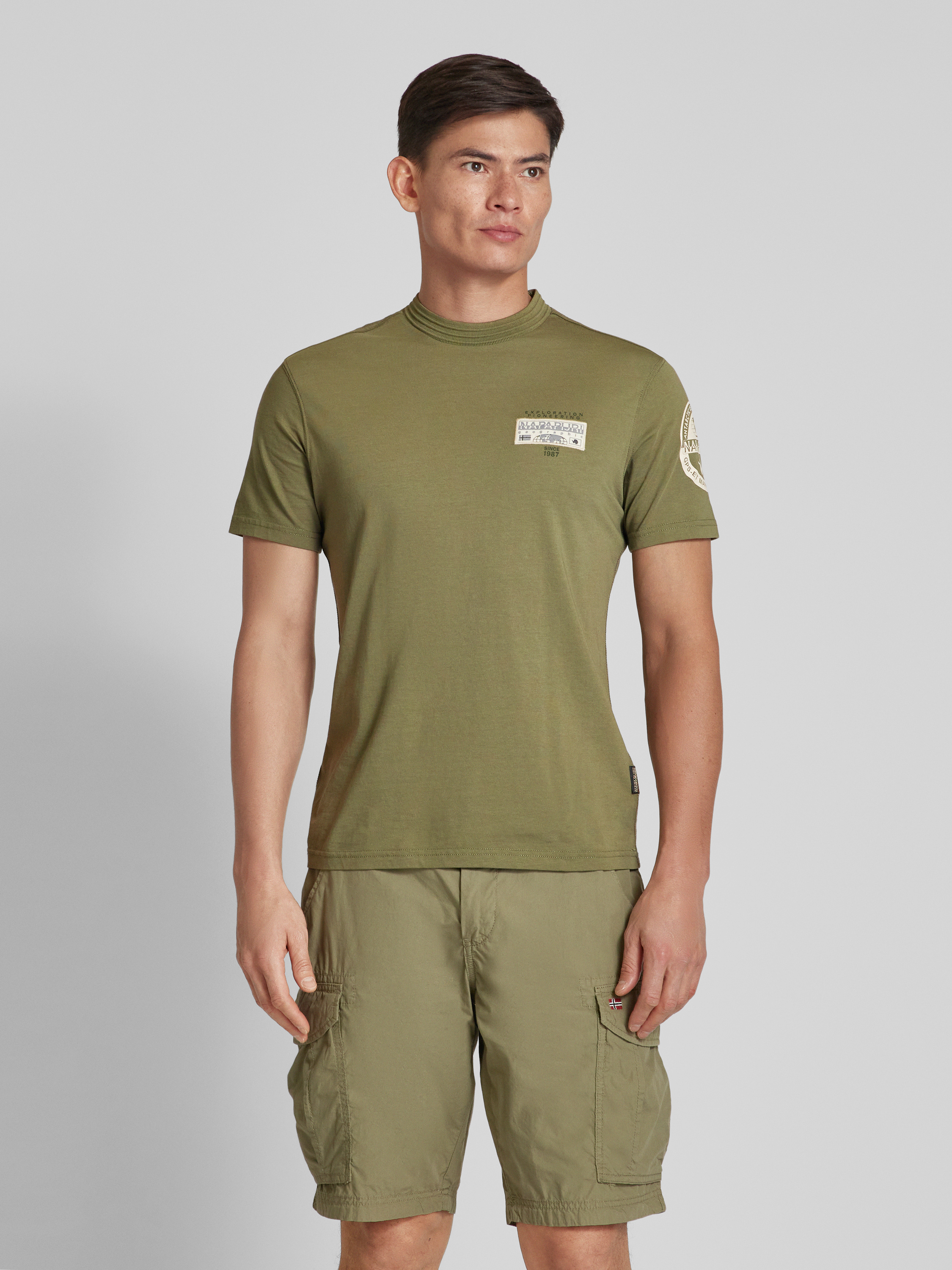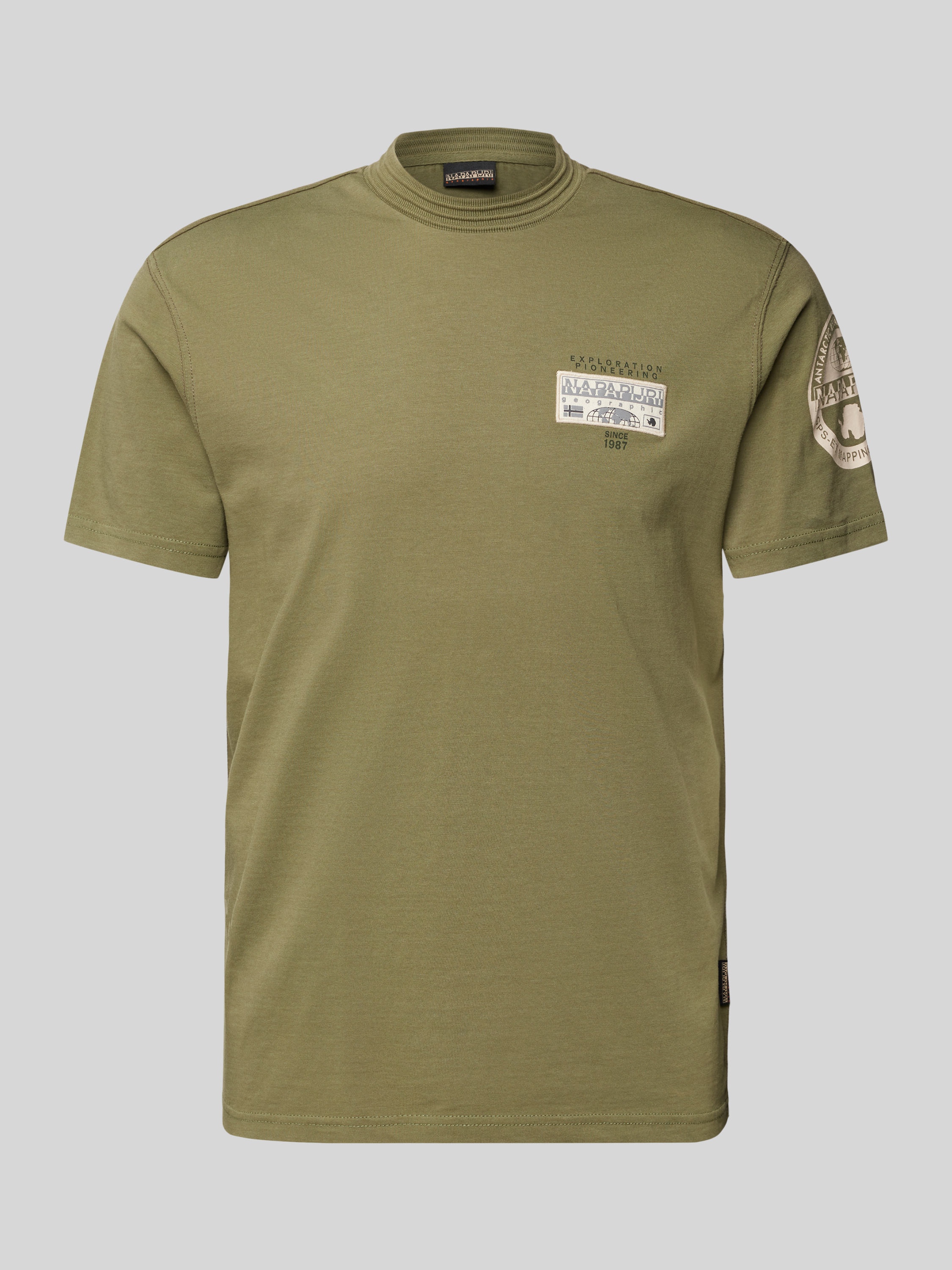 T-shirt met labelpatch, model 'AMUNDSEN' in olijfgroen