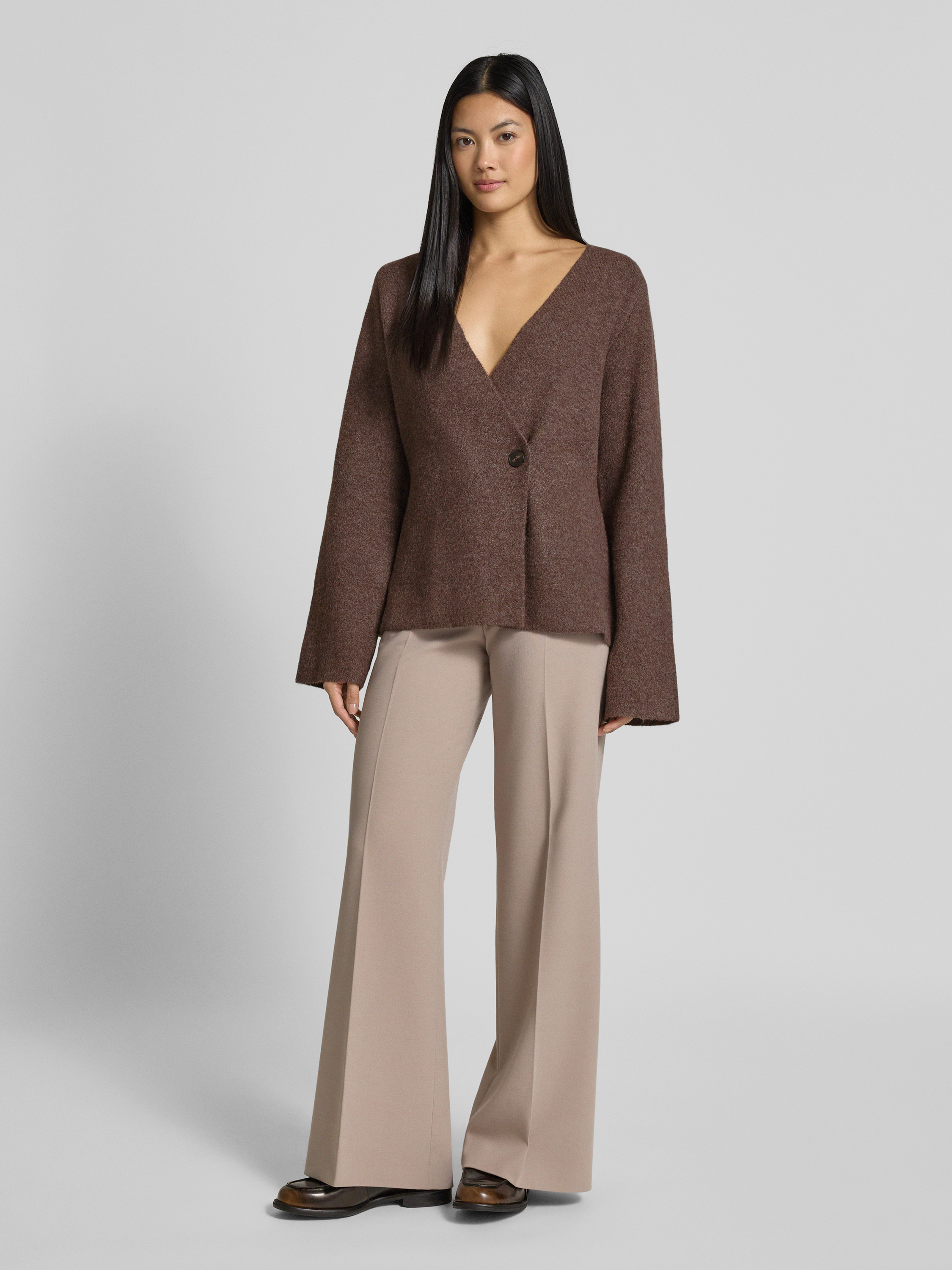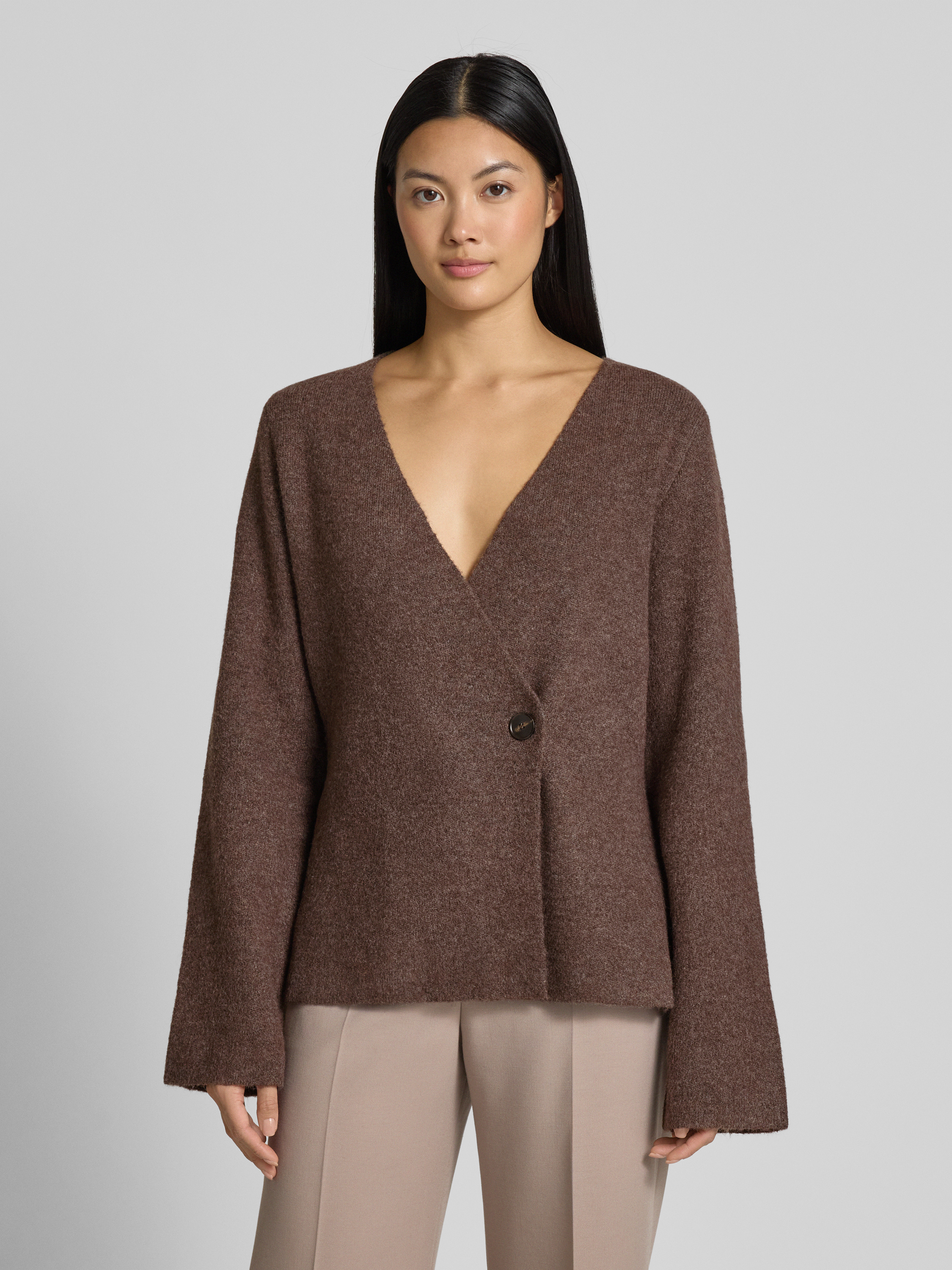 Gebreid jack met knoopsluiting, model 'Marie' in middenbruin
