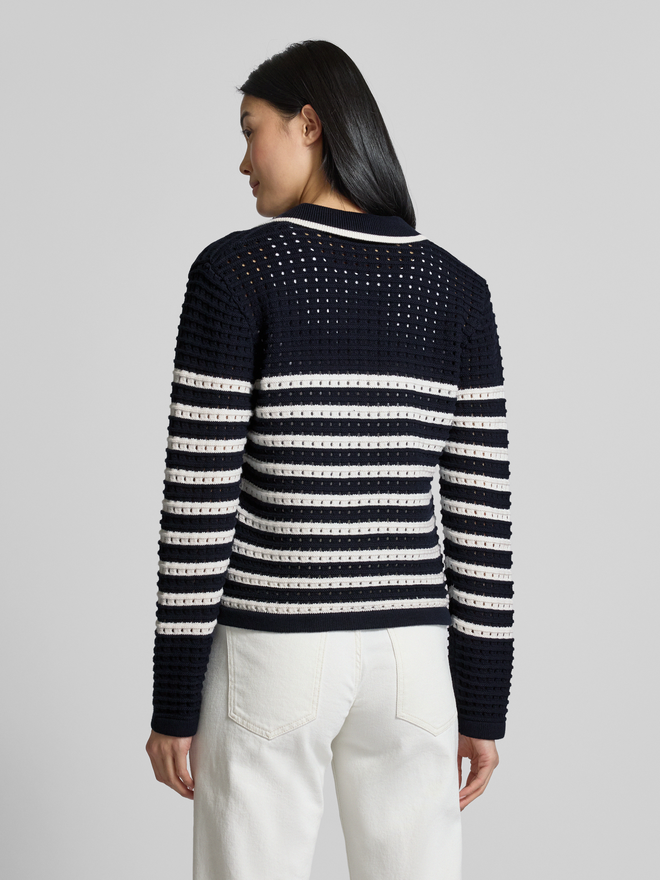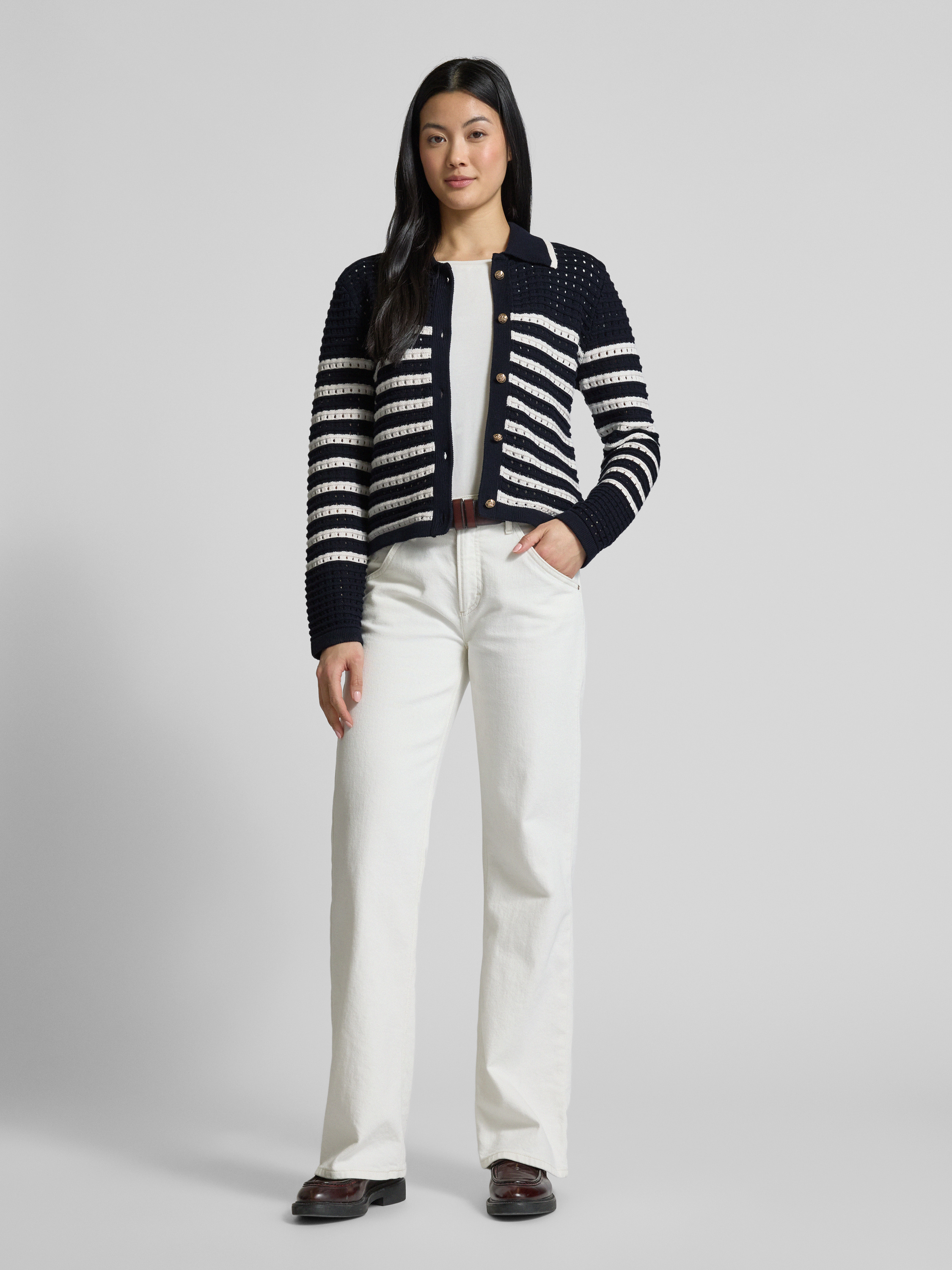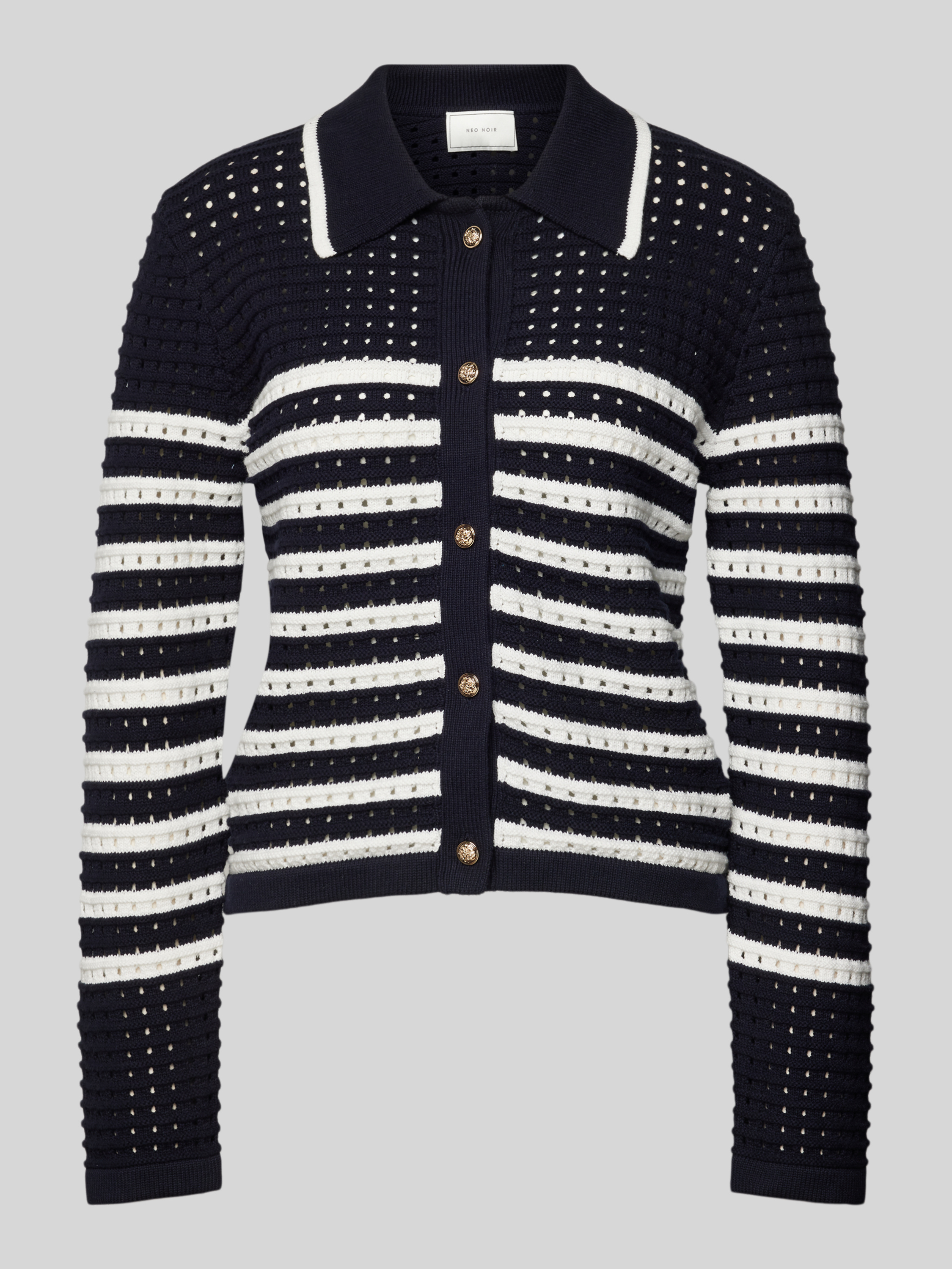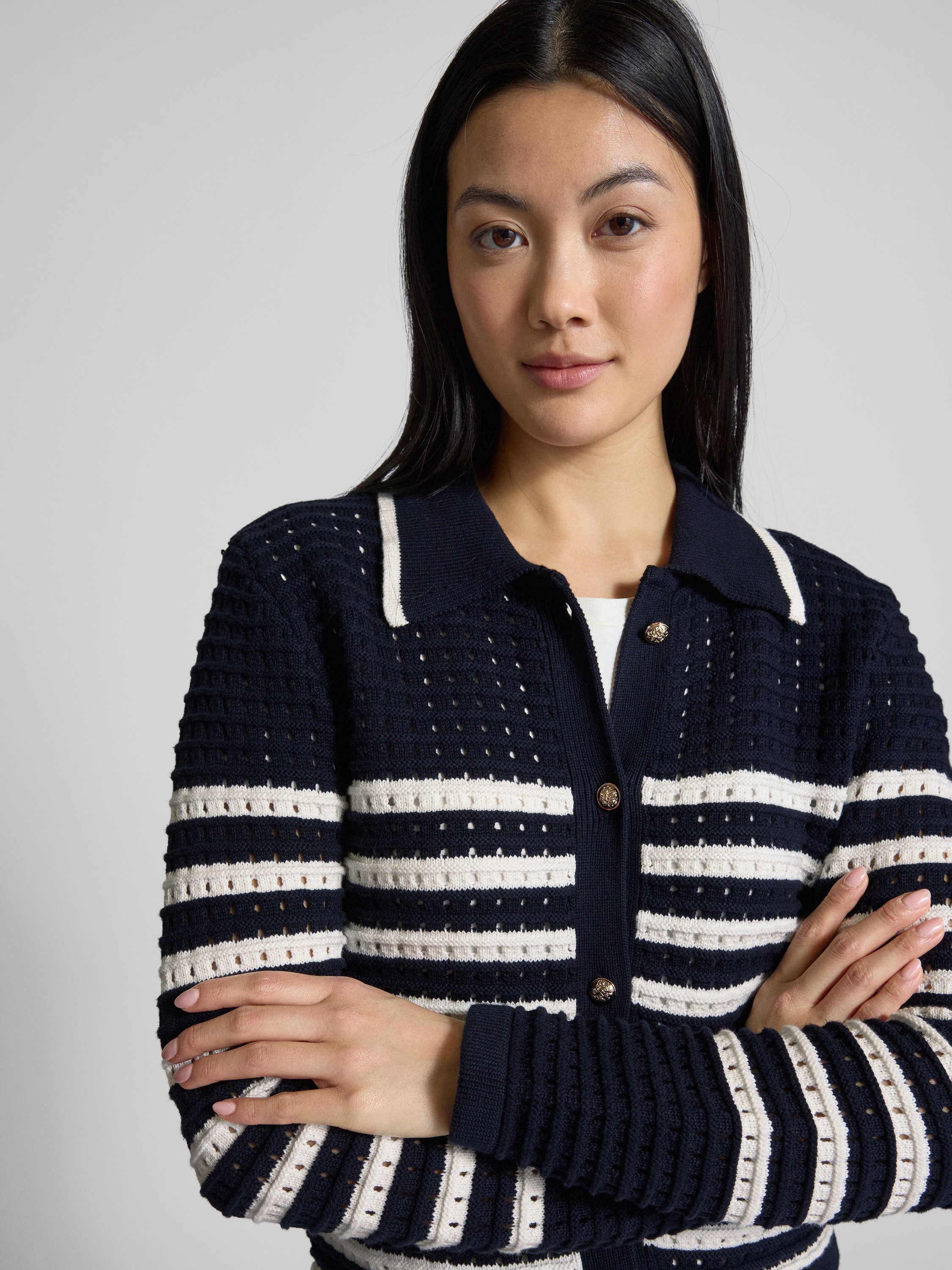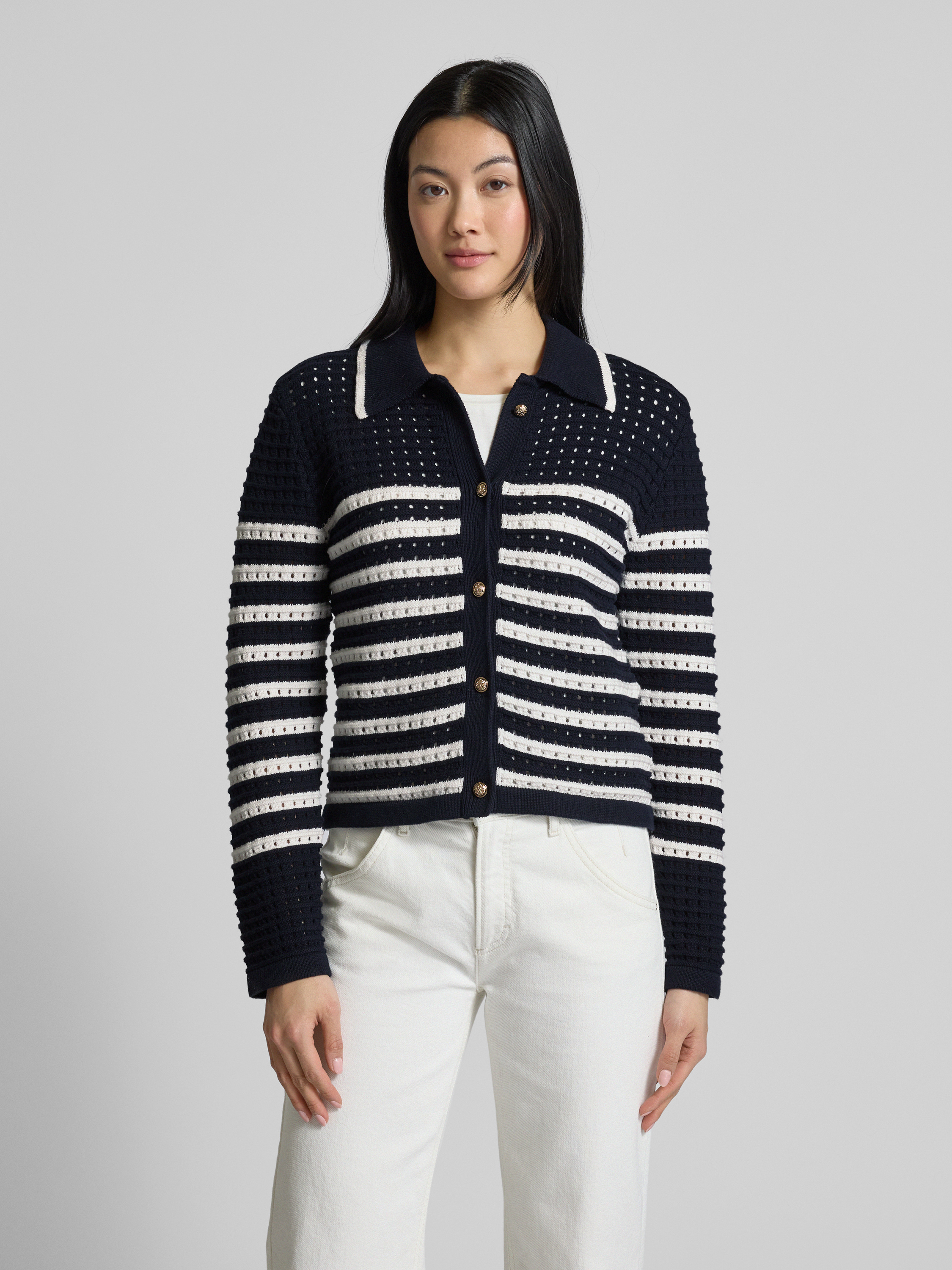 Gebreid jack met platte kraag, model 'Effie' in marineblauw