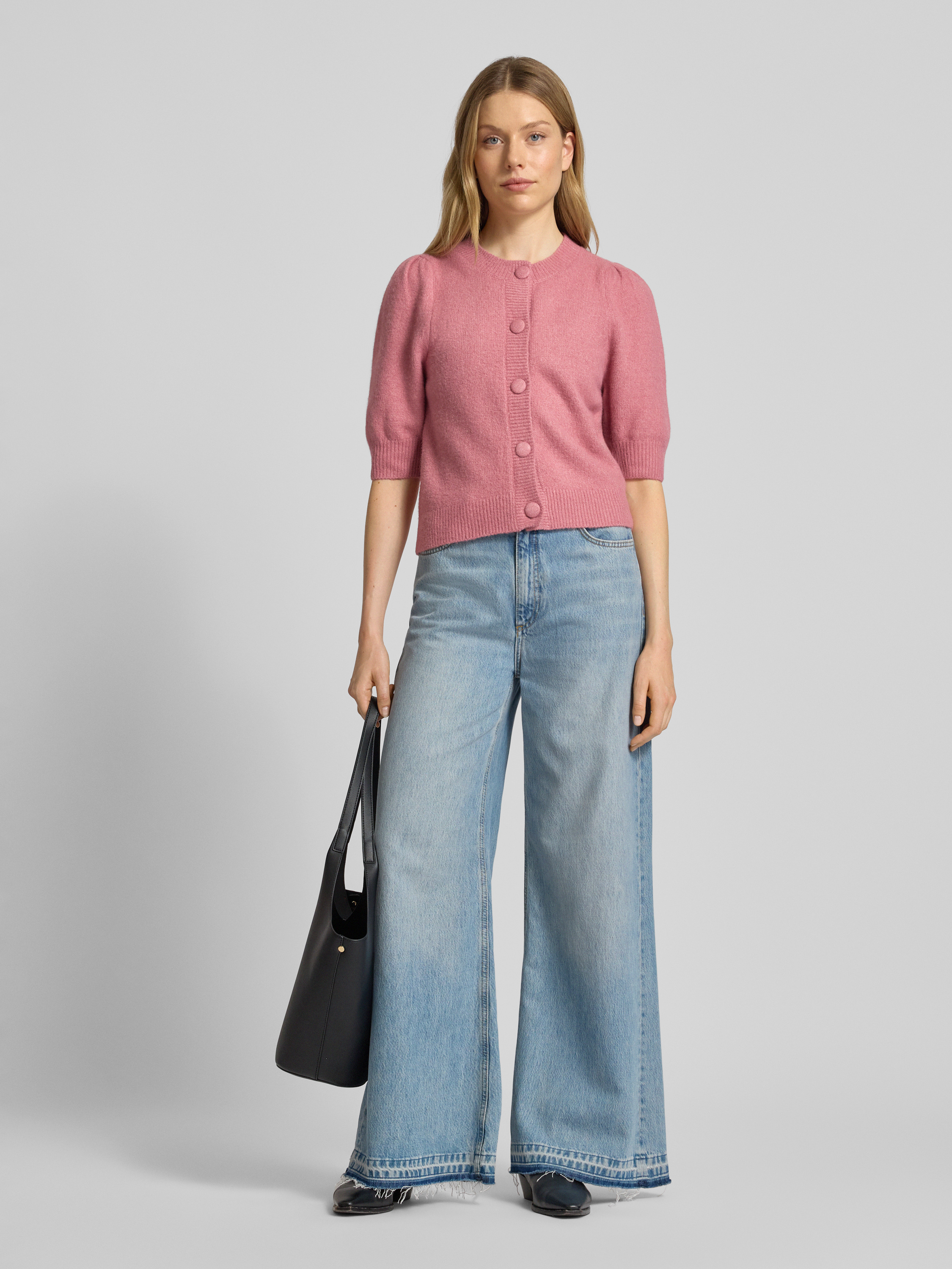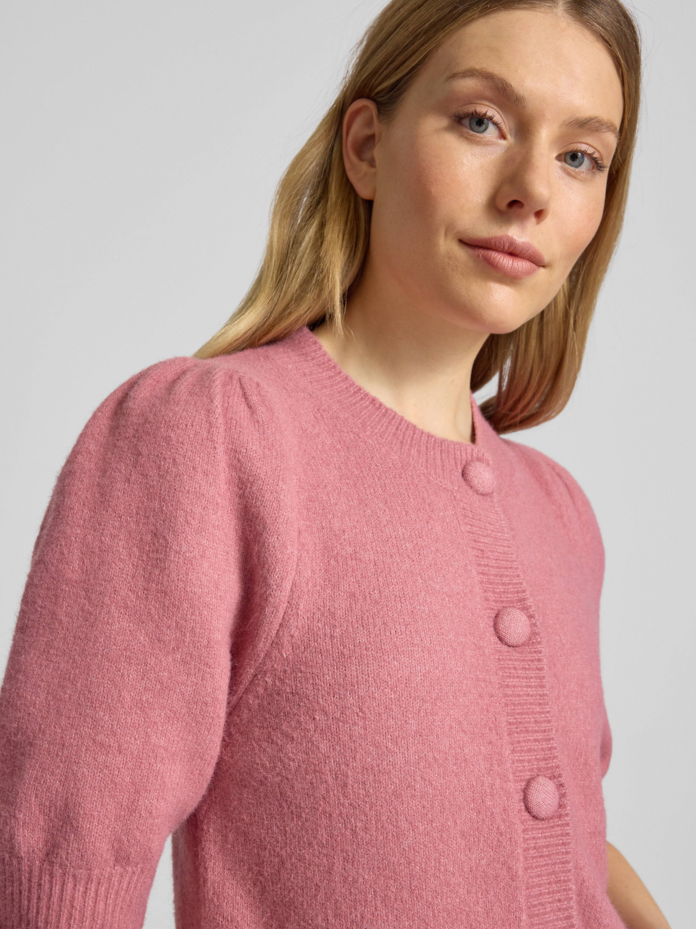 Gebreide cardigan met 1/2-mouwen, model 'Trudy' in roze