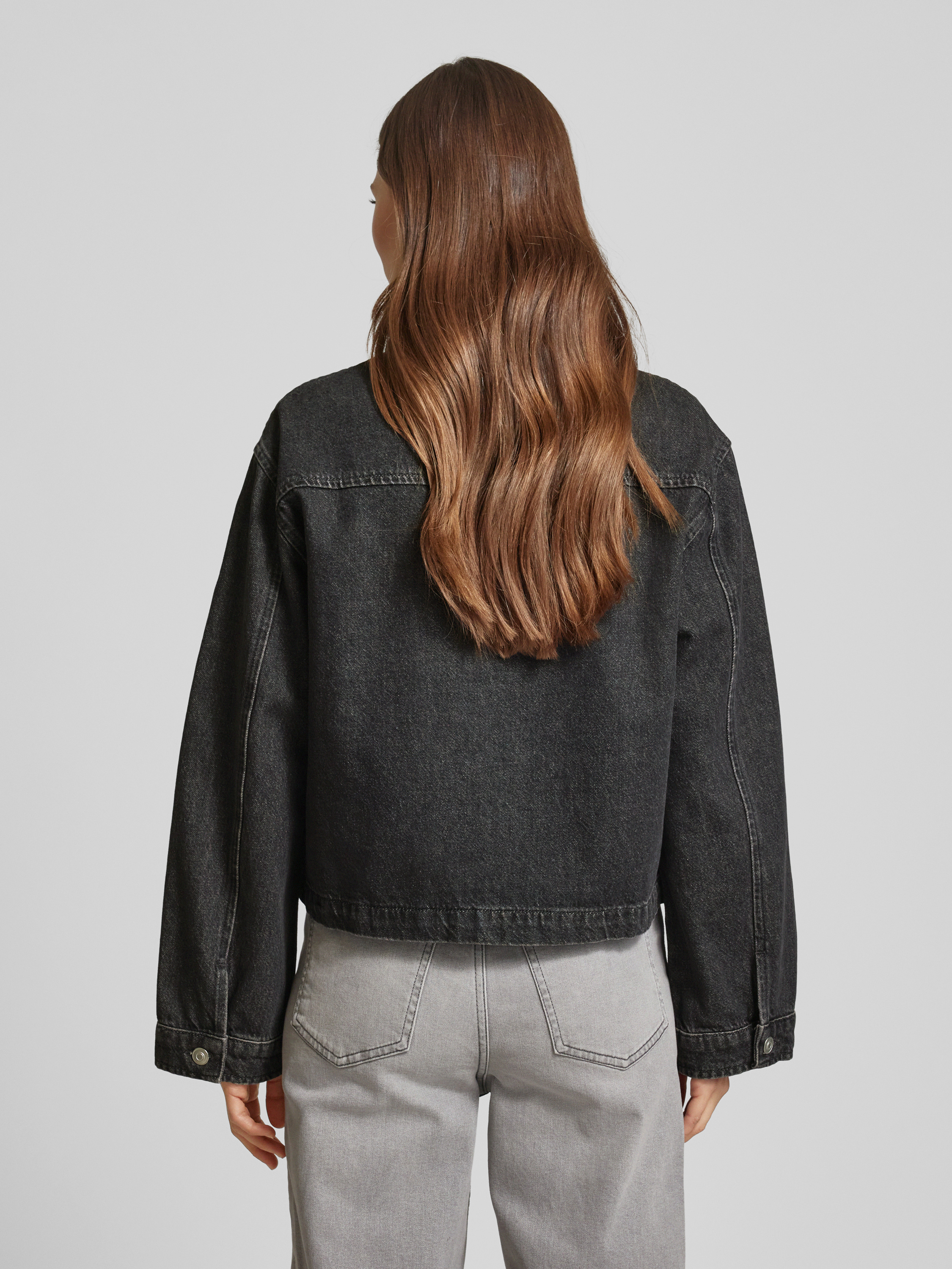 Jeansjack met opgestikte borstzakken, model 'Emilia' in antraciet