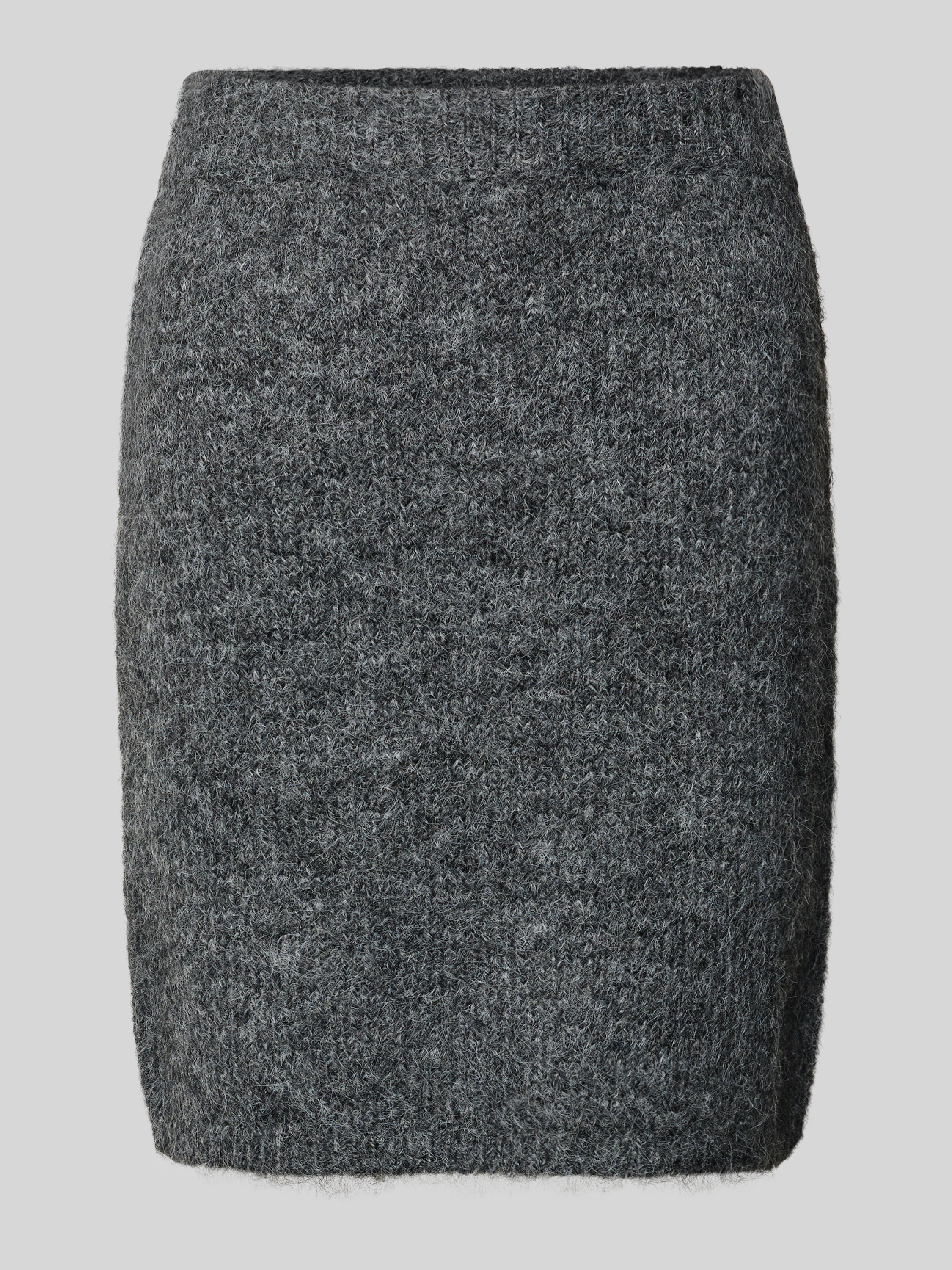 Knielange rok met elastische band, model 'Naria' in antraciet