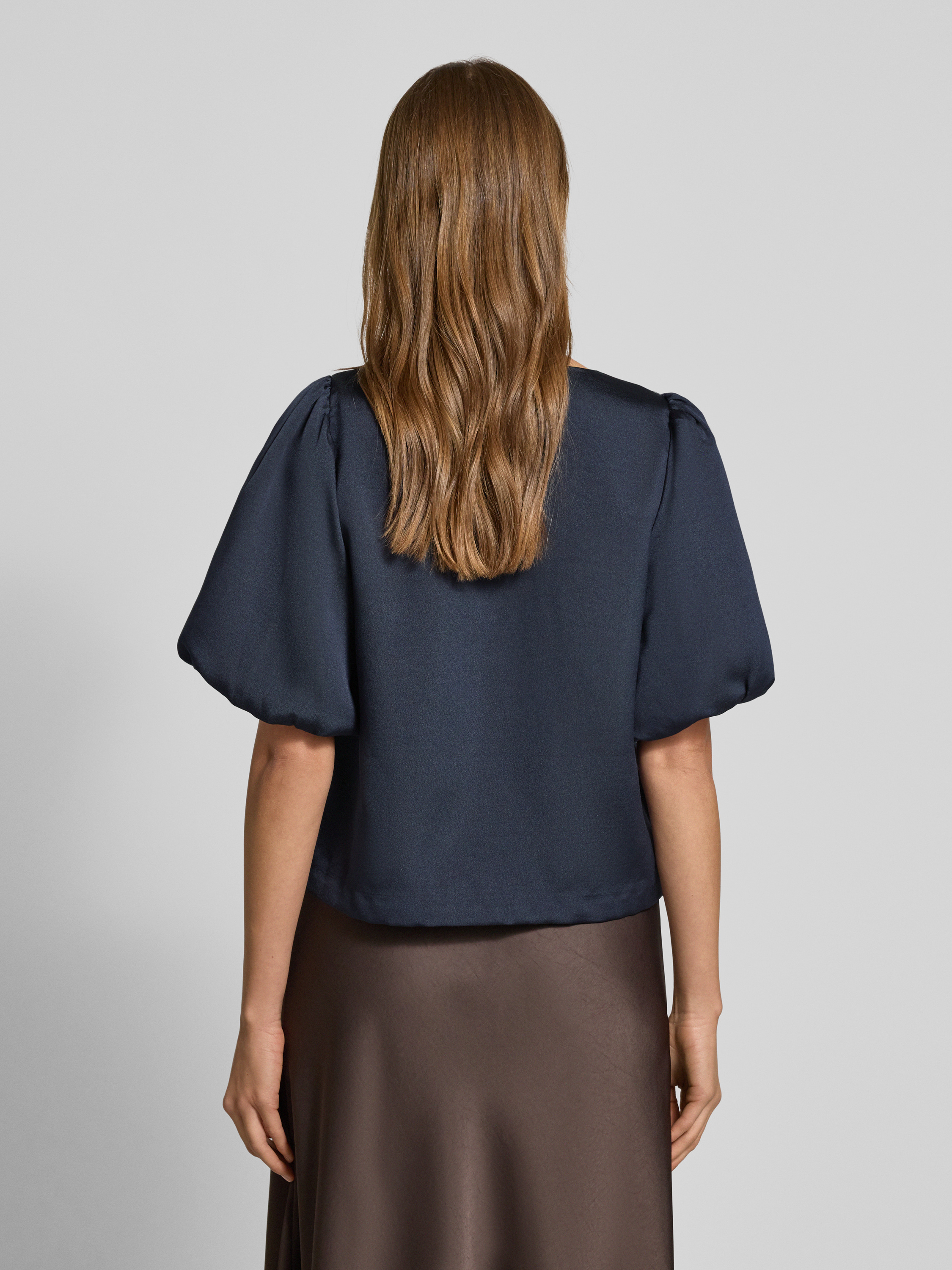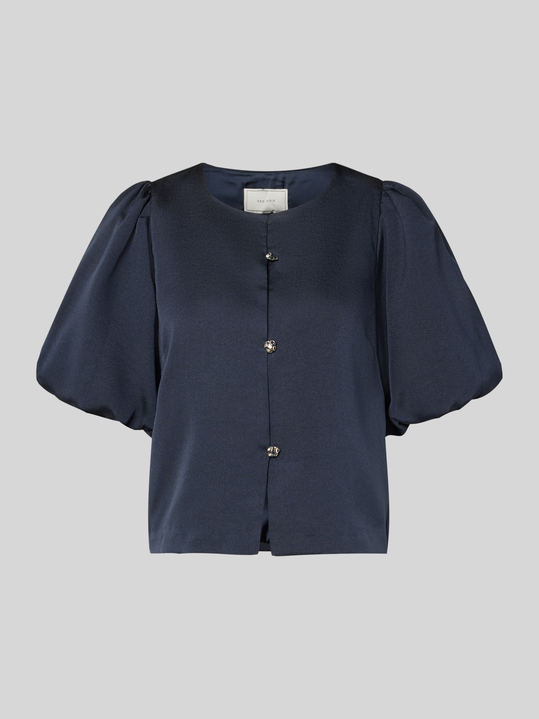 Korte overhemdblouse met knoopsluiting, model 'Aisa' in donkerblauw