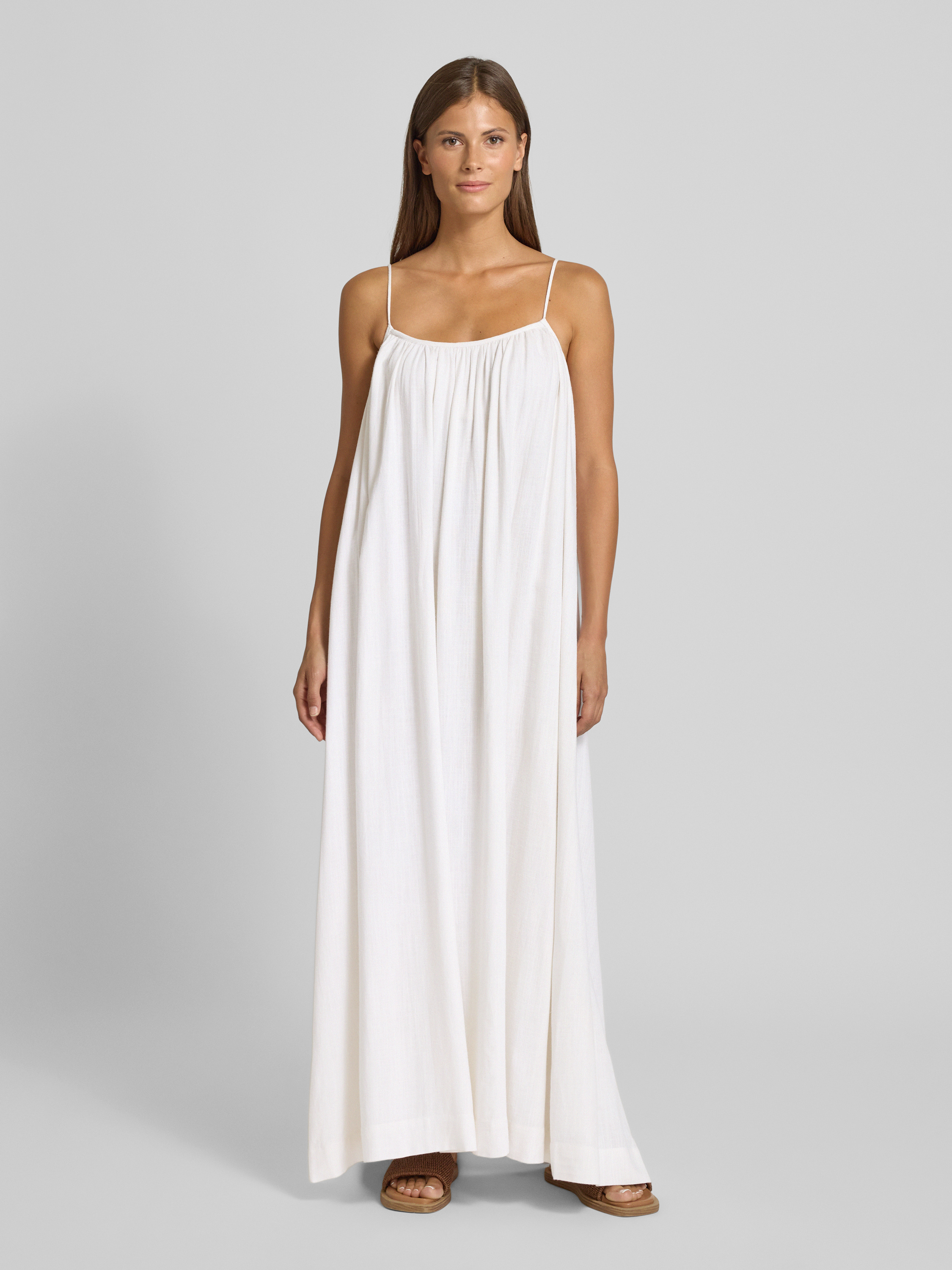 Midi-jurk van een mix van viscose en linnen, model 'Allie' in wit