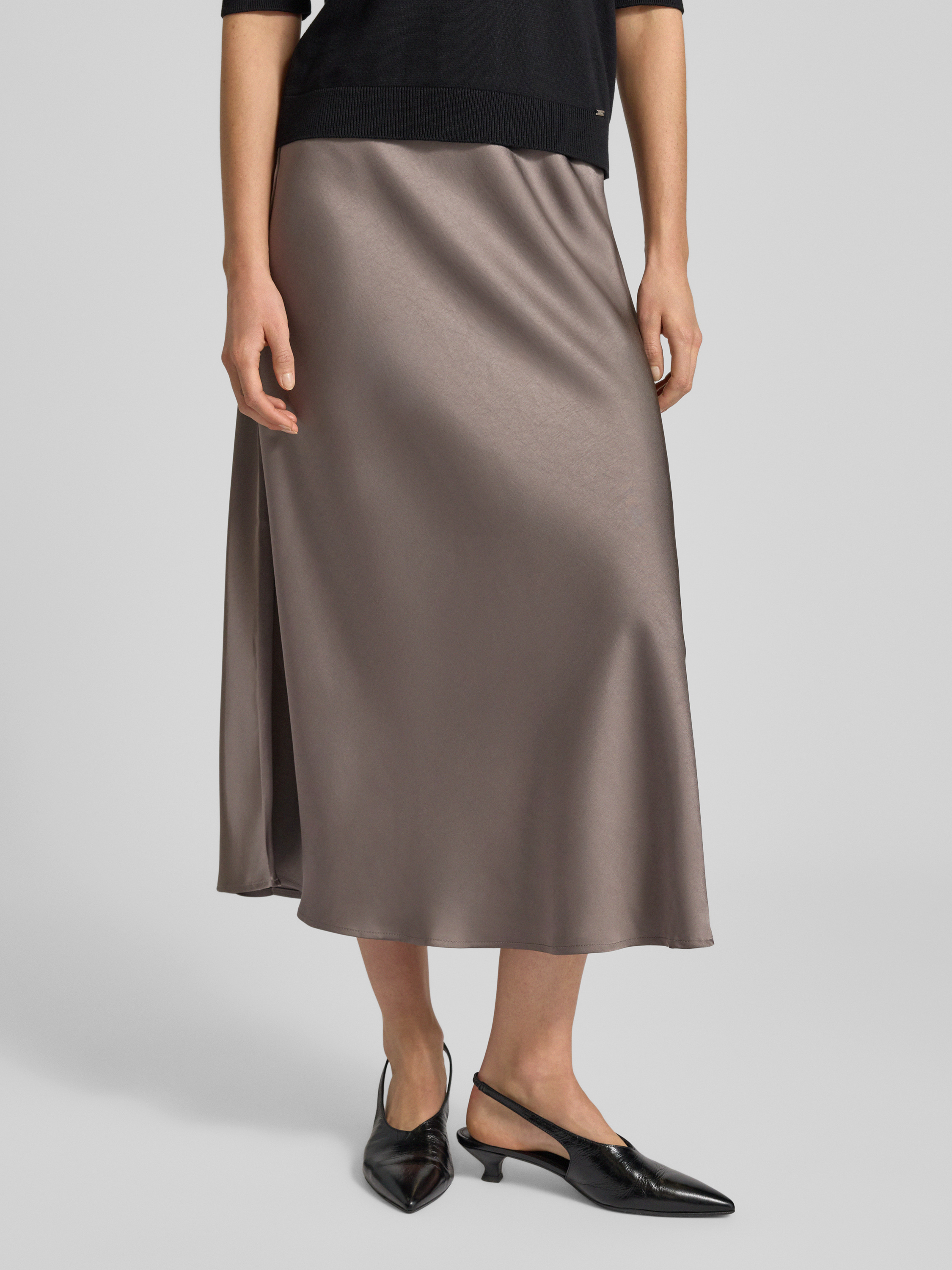 Midirok van satijn met elastische band, model 'Bovary' in donkergrijs