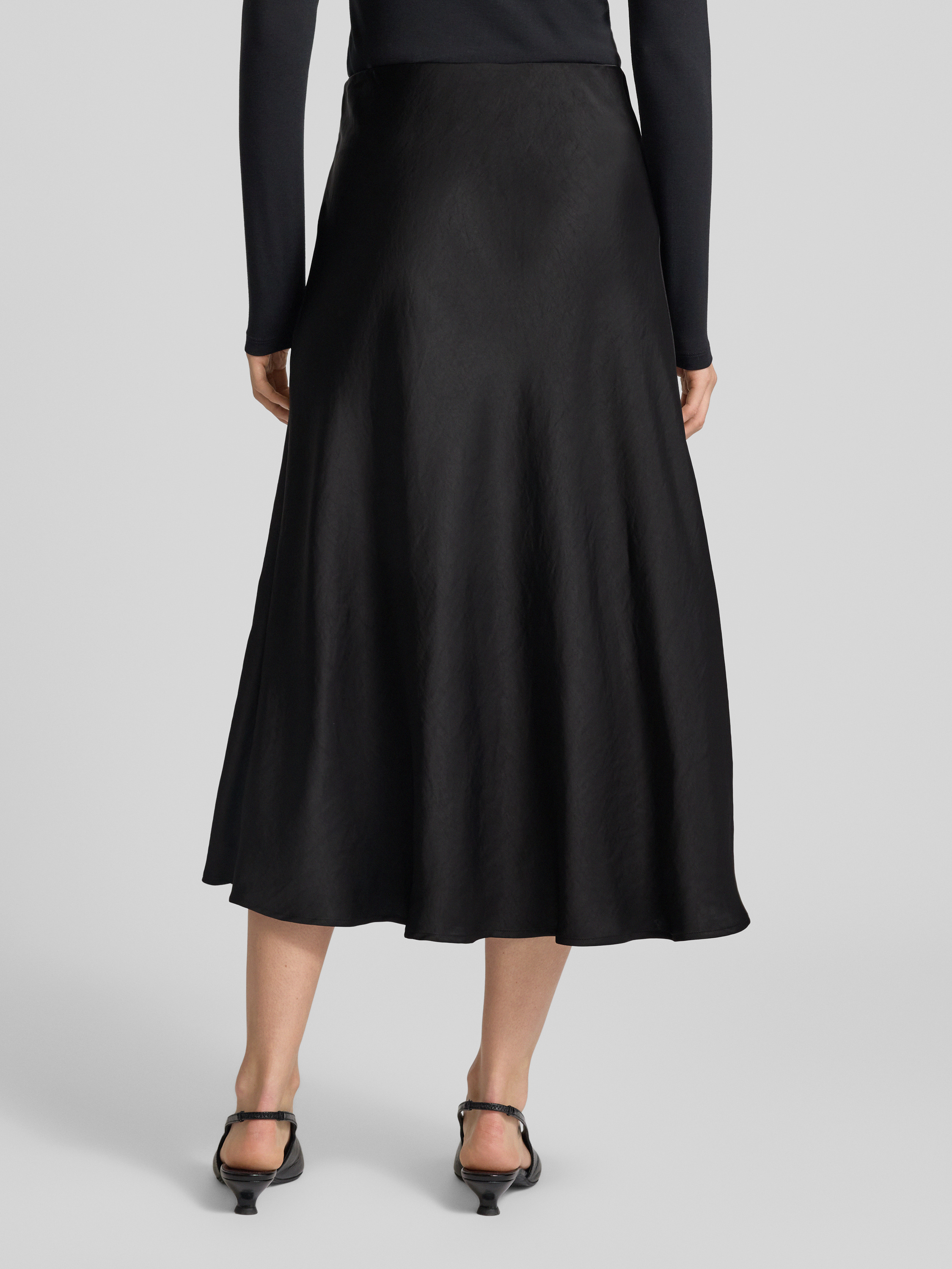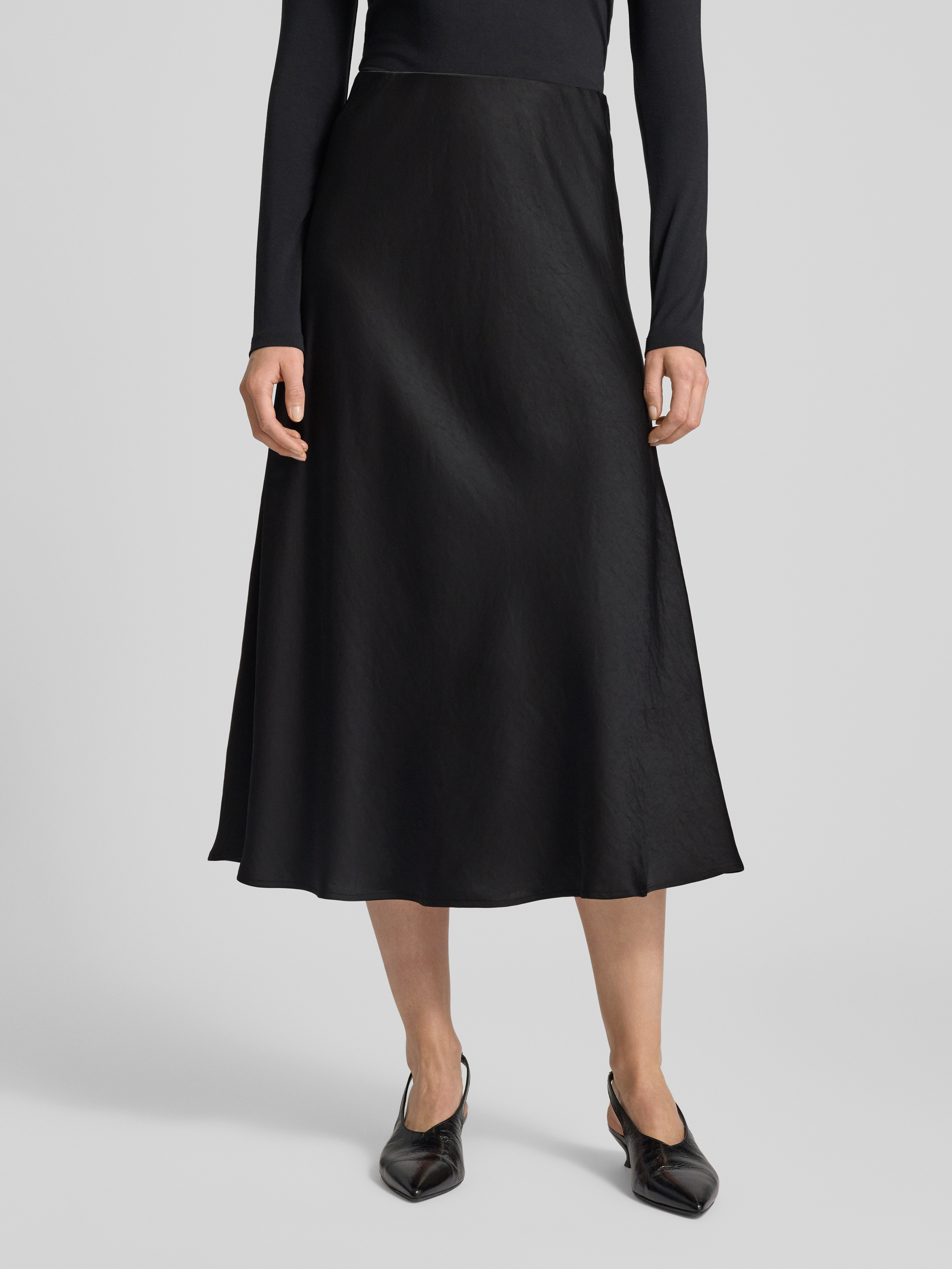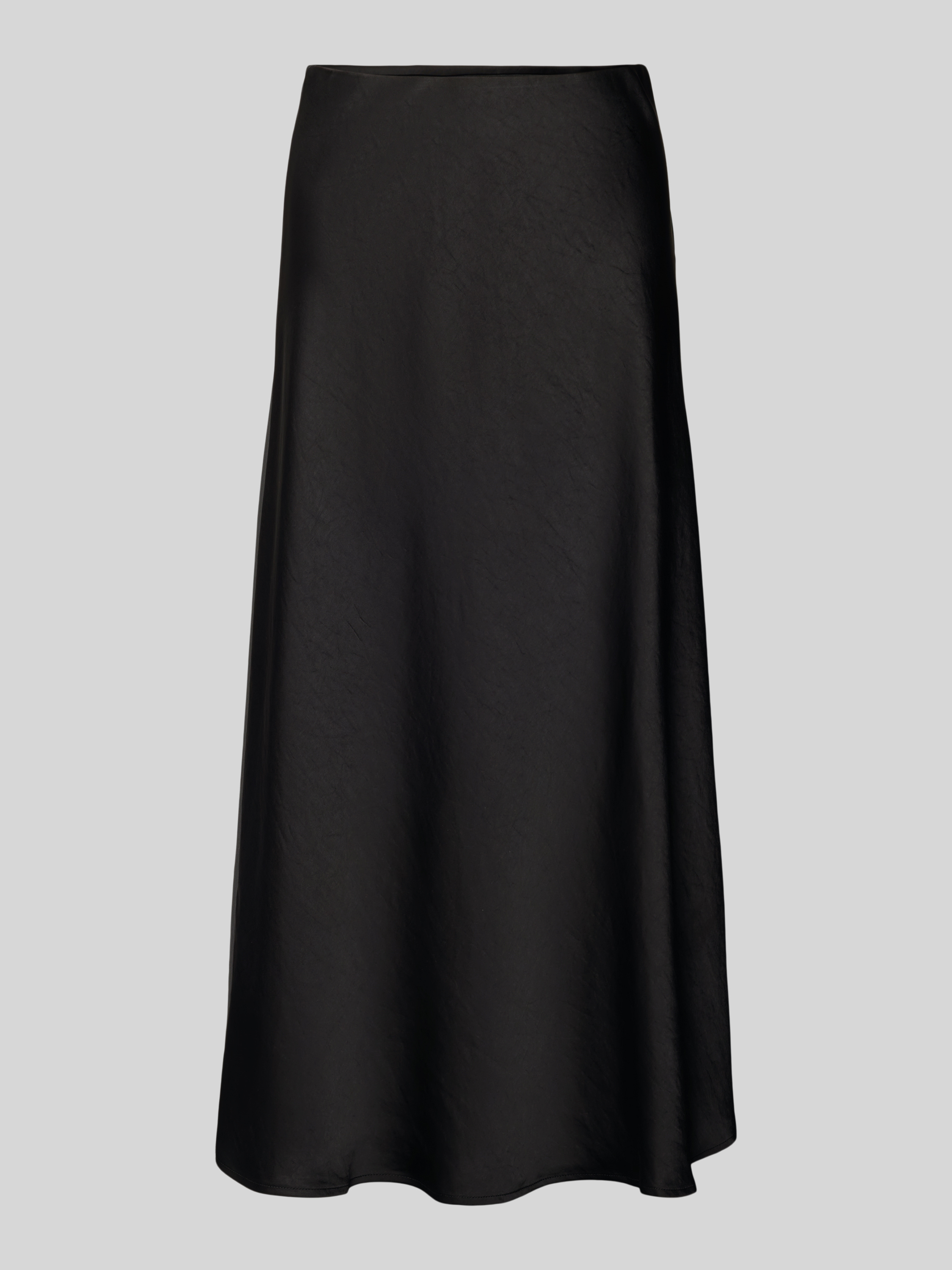 Midirok van satijn met elastische band, model 'Bovary' in zwart