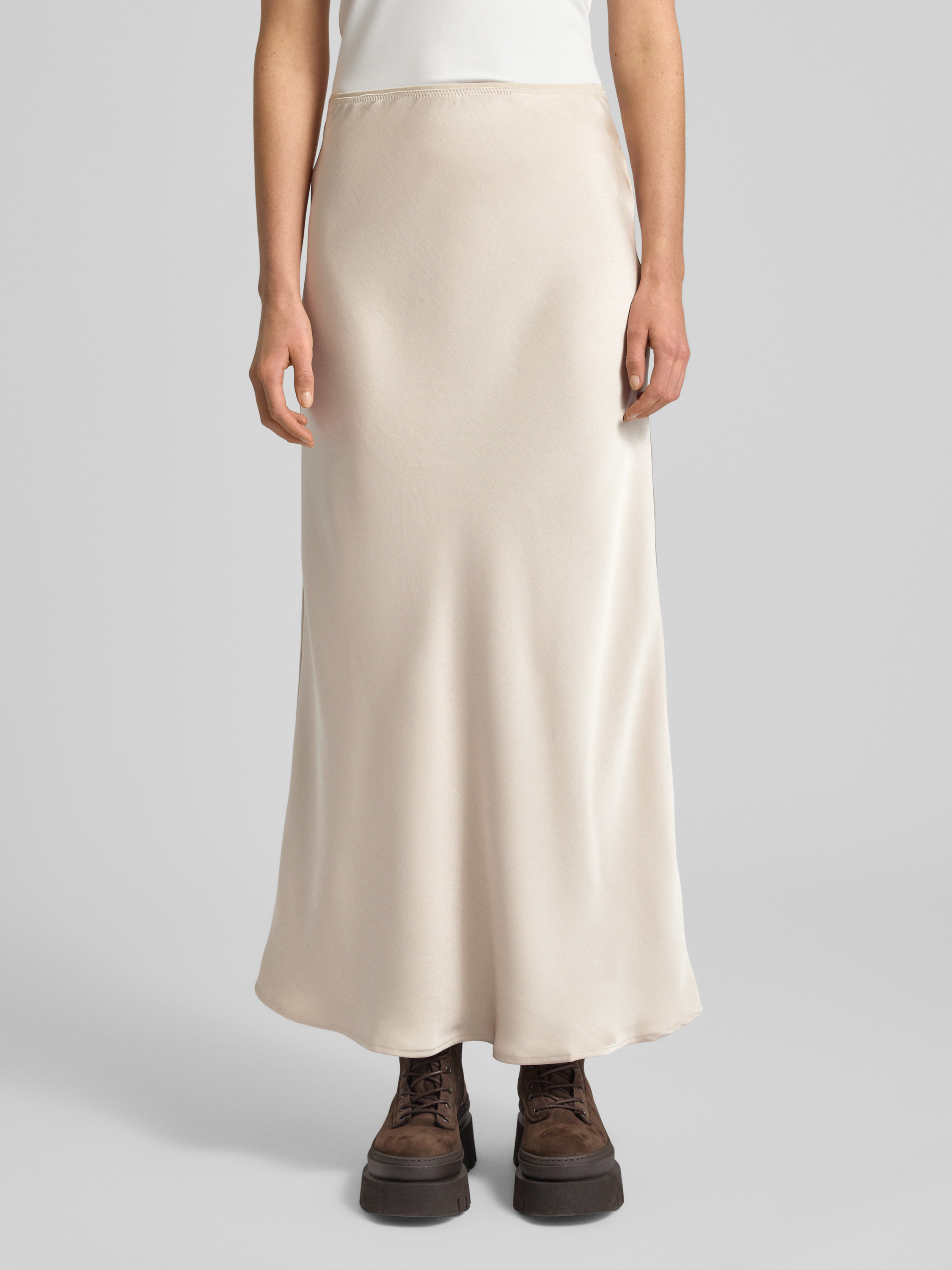 Midirok van satijn met elastische band, model 'URA' in ecru