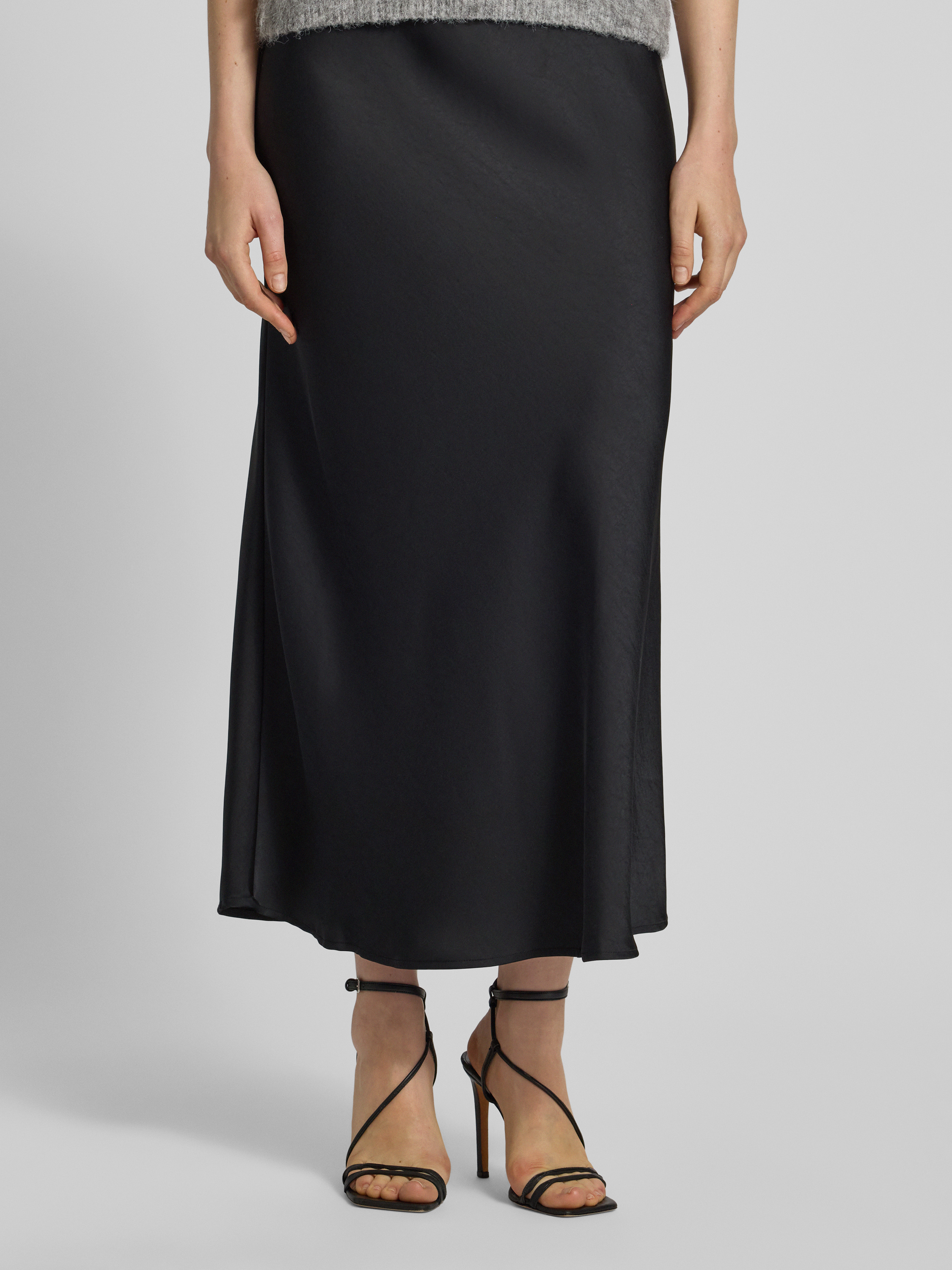 Midirok van satijn met elastische band, model 'URA' in zwart