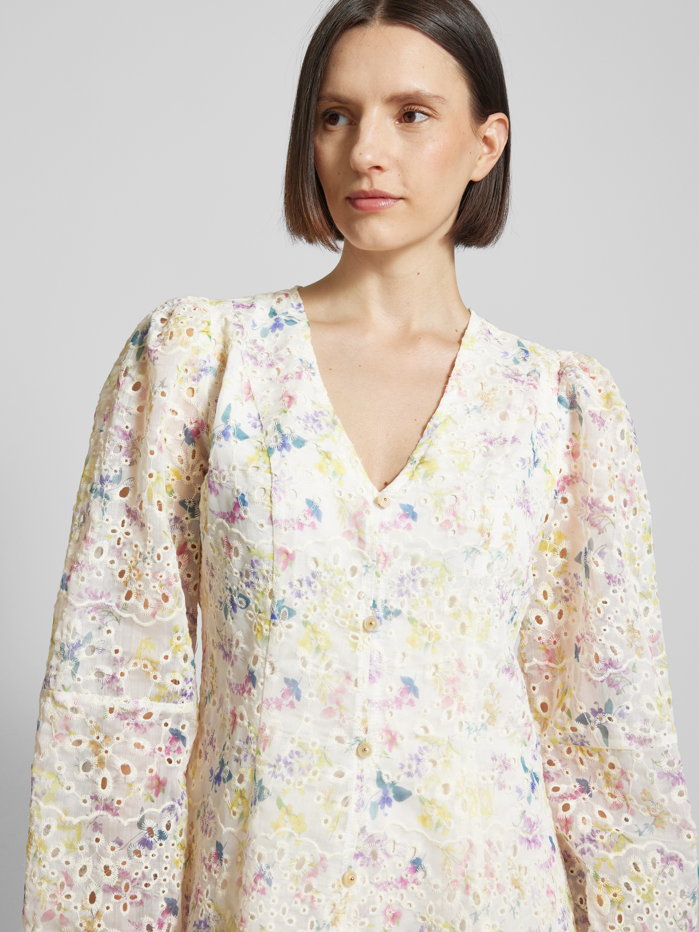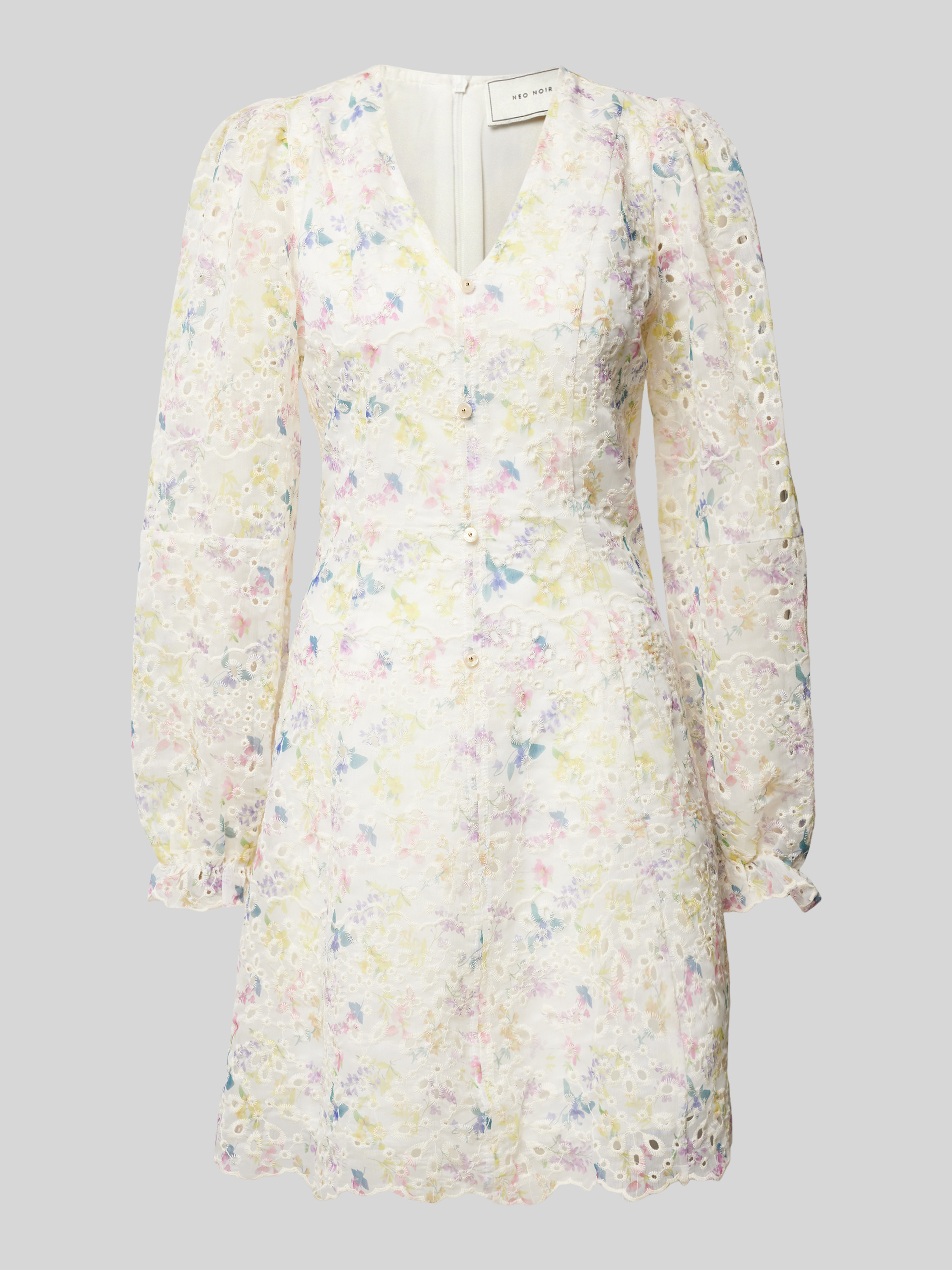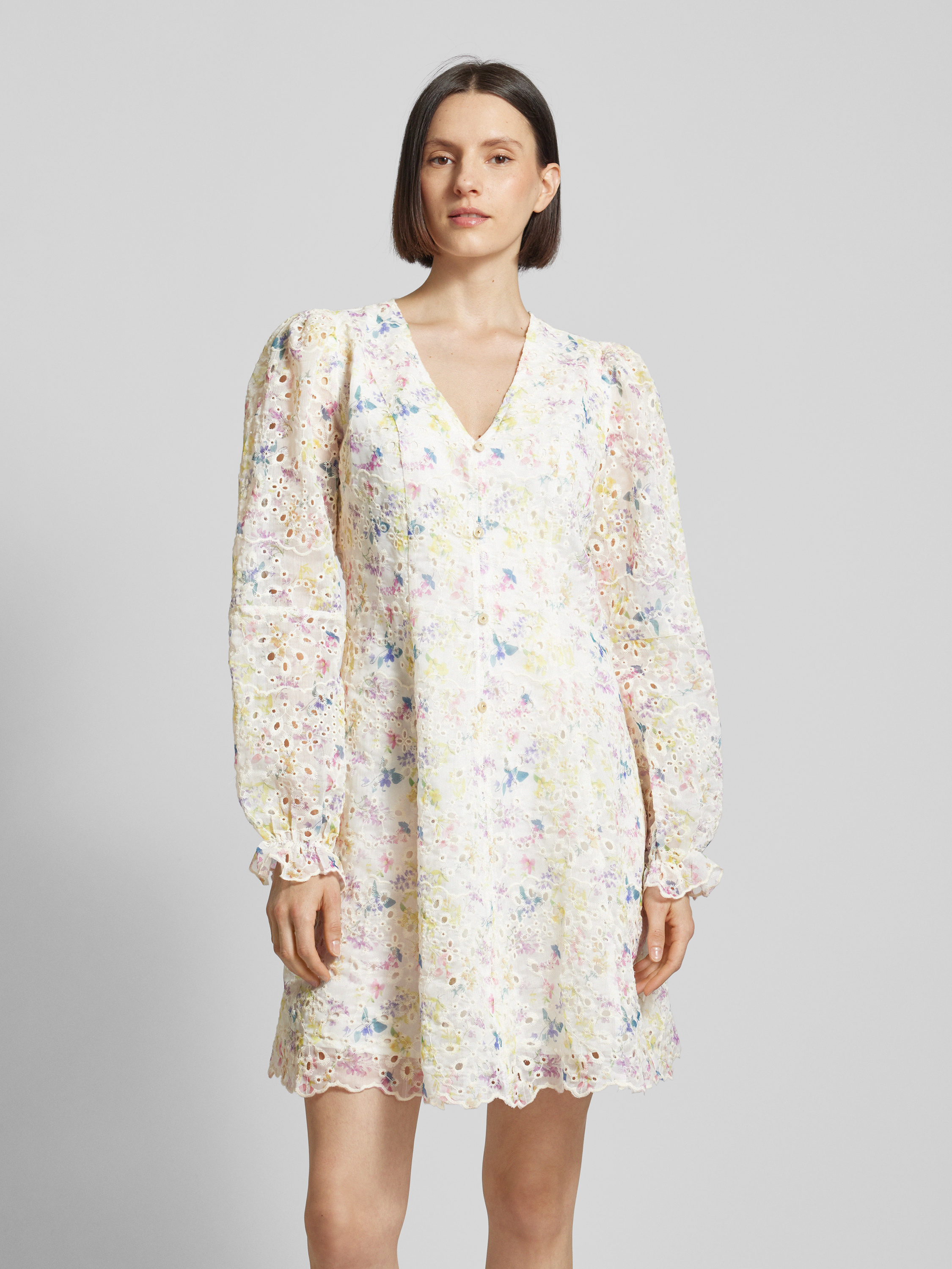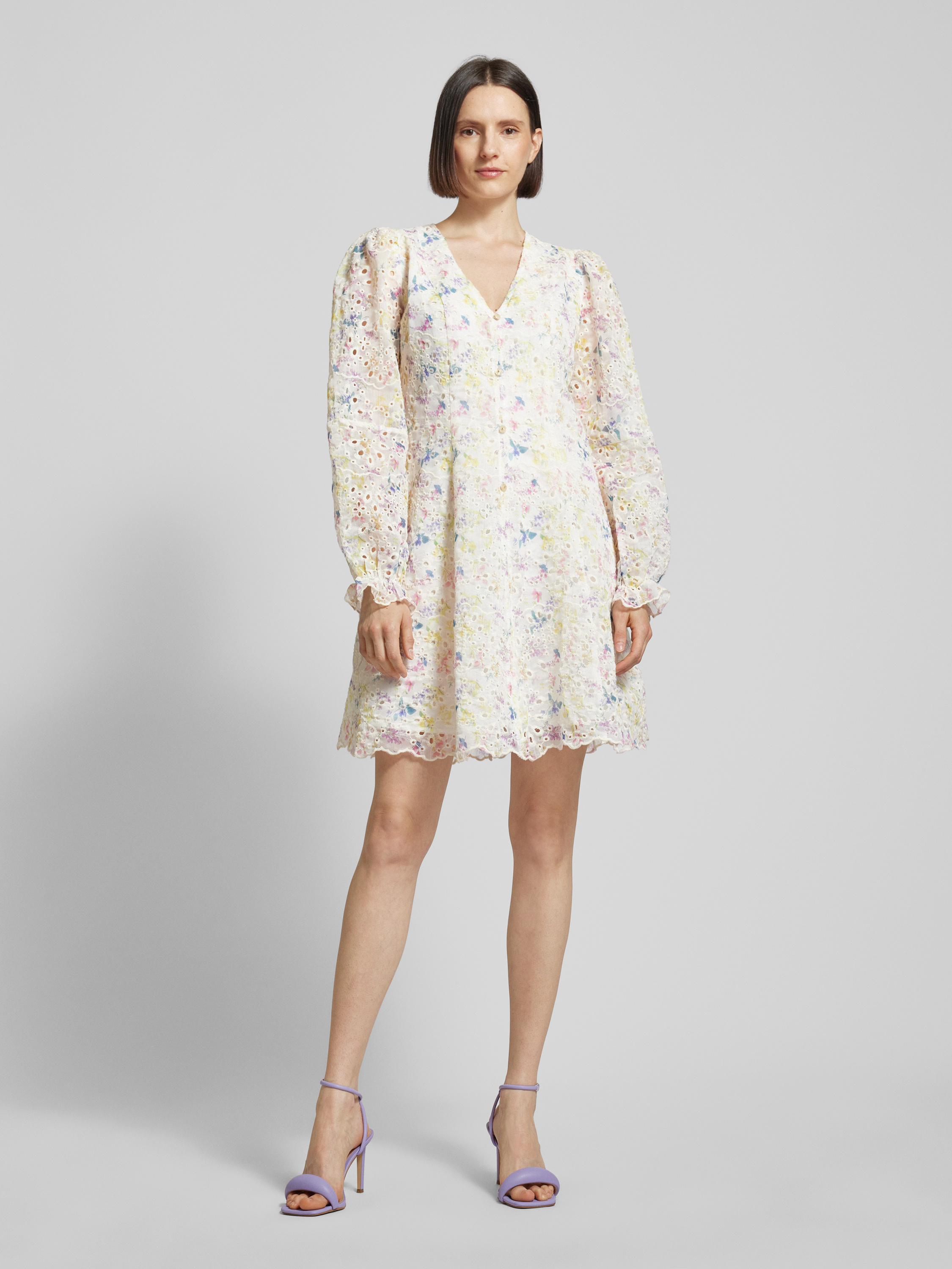 Mini-jurk met broderie anglaise, model 'Cabana' in beige
