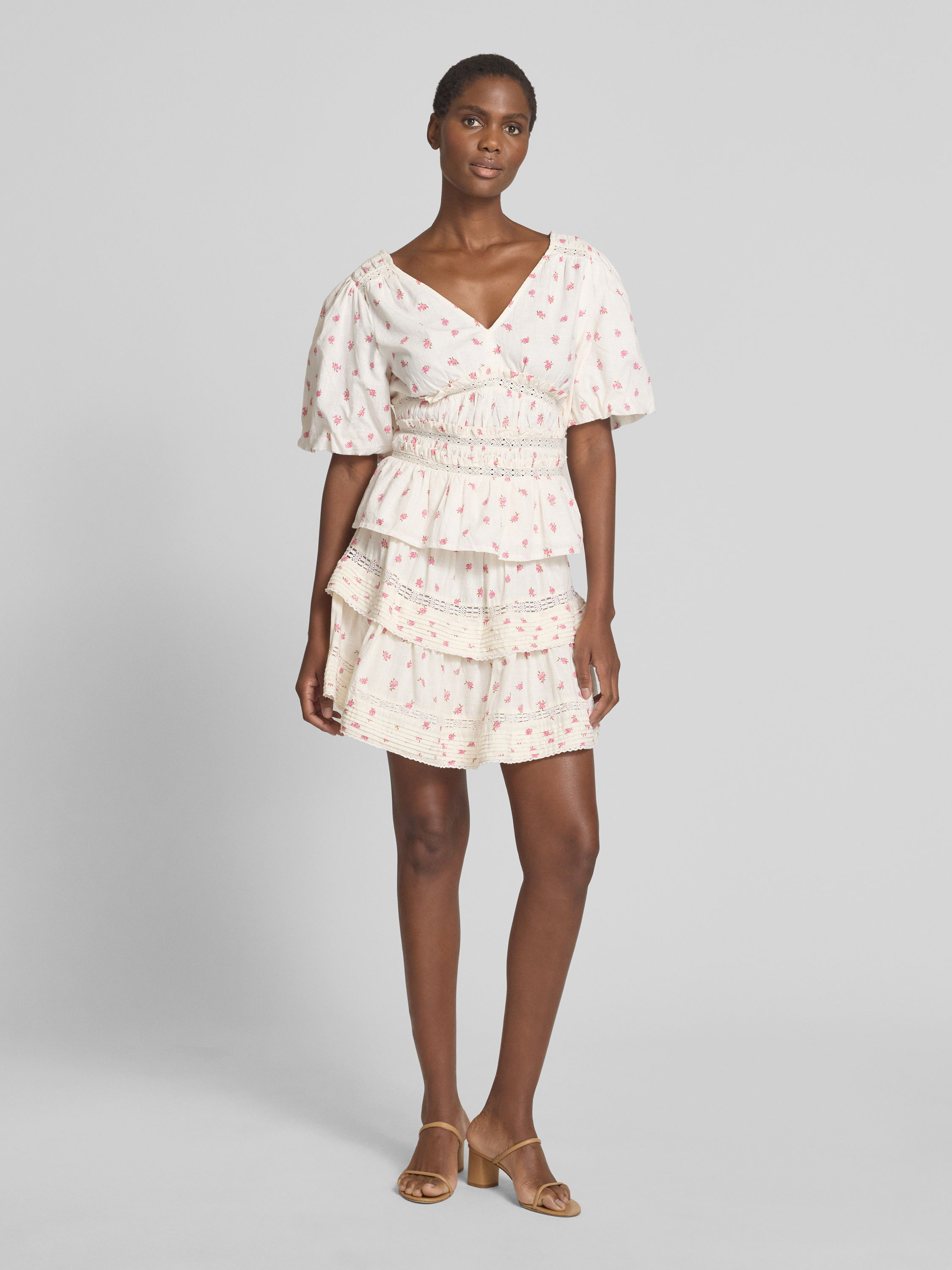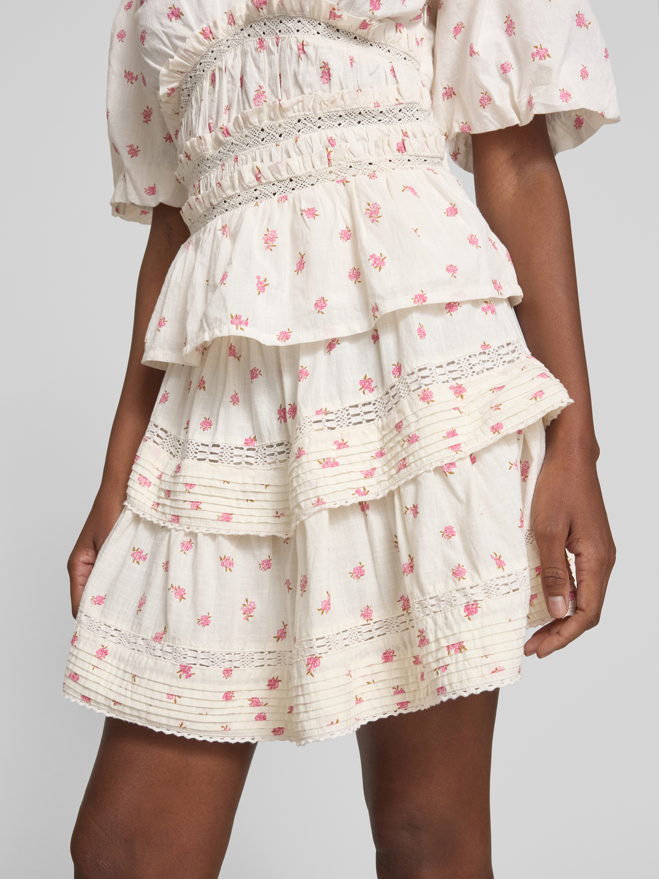 Minirok met smokdetails, model 'Kenia Fleurie' in wit