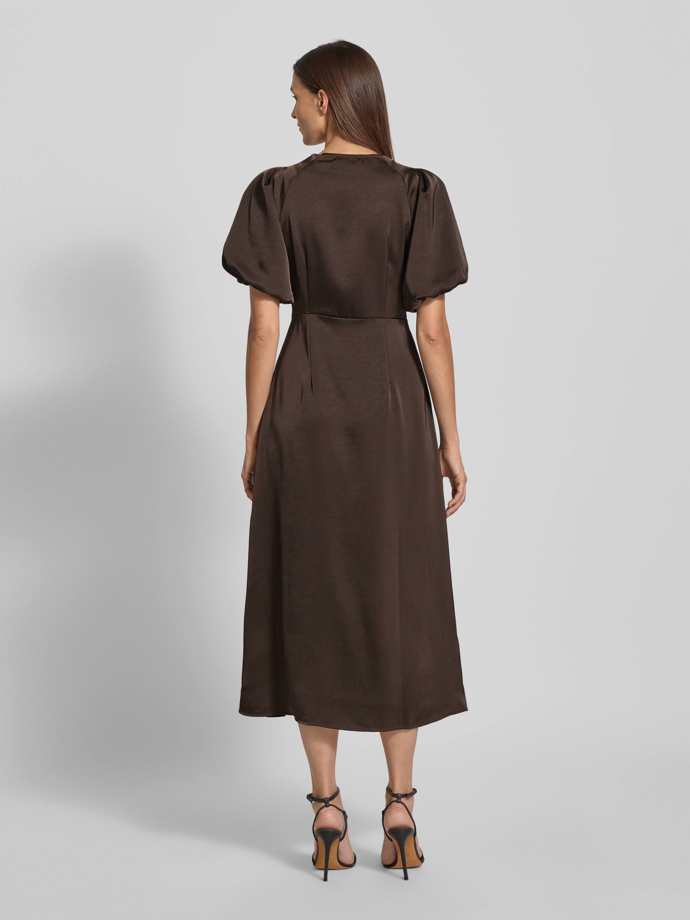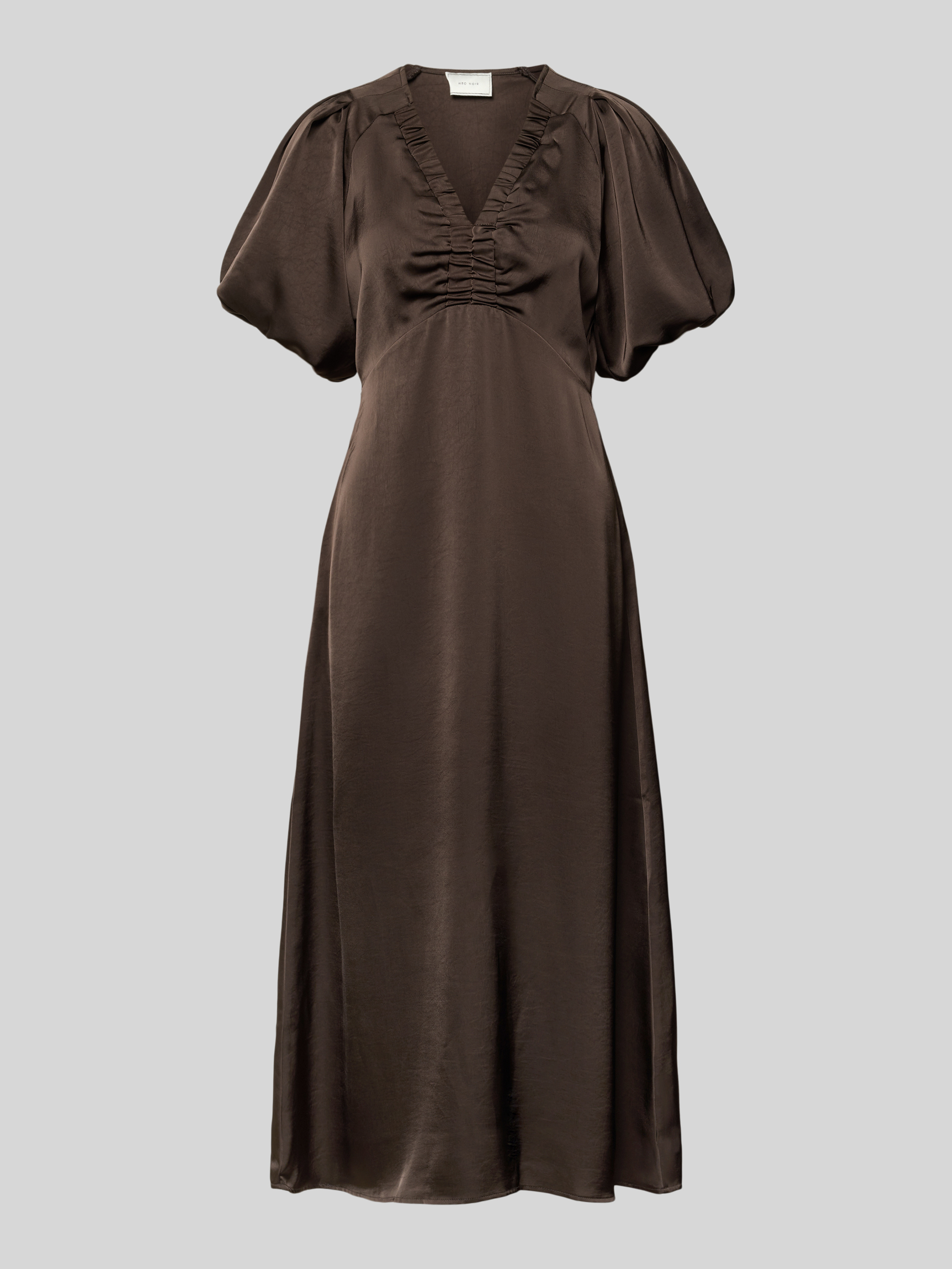 Regular fit midi-jurk met V-hals, model 'Illana' in donkerbruin